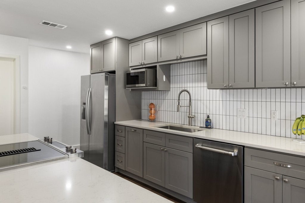 - Built-In Electric Range, Dishwasher, Microwave