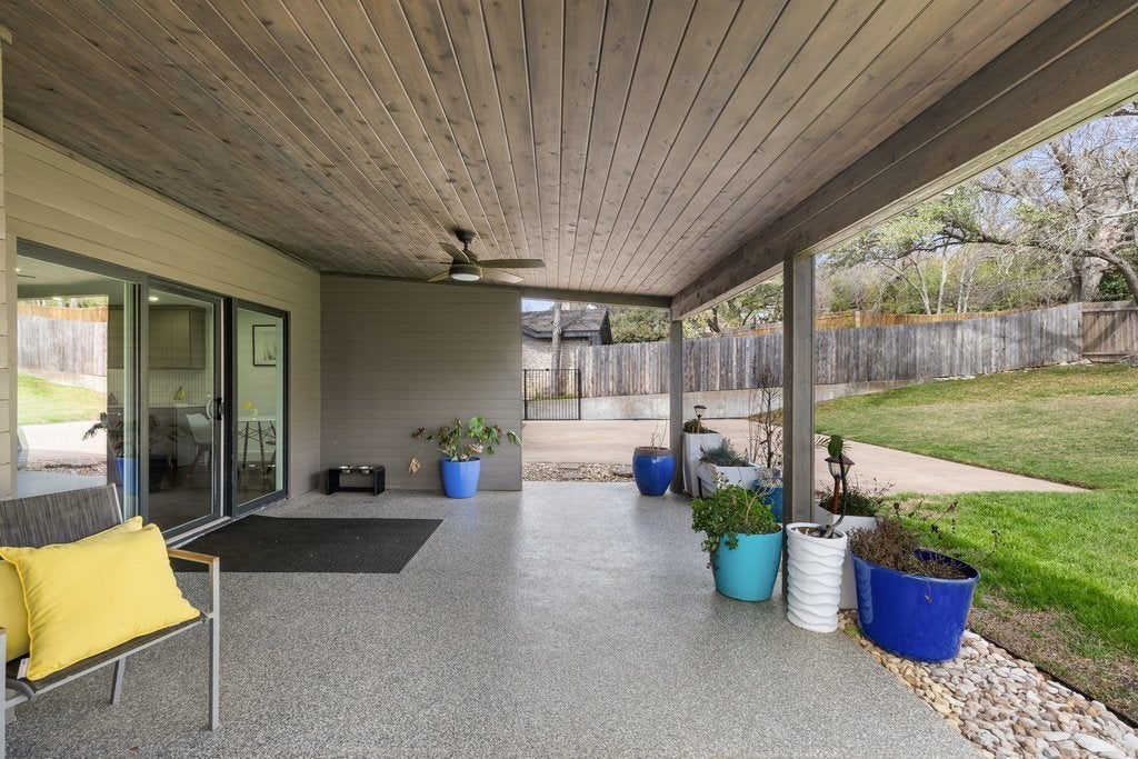 Beautifully updated 5-bedroom, 3-bath home on a large, private lot in the heart of Balcones Village—one of Northwest Austin’s most established and desirable neighborhoods. No mandatory HOA, giving you flexibility without sacrificing community appeal. This is a rare single-story floorplan that truly stands out: a private guest suite positioned separately from the primary bedroom, yet all thoughtfully laid out on one level. Ideal for multigenerational living, extended guests, or a true home office with privacy built in. Inside, vaulted ceilings and an open-concept layout create an effortless flow between the living, dining, and updated kitchen—designed for both daily living and entertaining. The renovated primary bath delivers a spa-like retreat, elevating the entire owner’s suite experience. Step outside to a covered patio overlooking the expansive backyard. Whether you envision a future pool, play space, garden, or simply quiet evenings under the Texas sky, the lot offers flexibility and privacy that’s increasingly hard to find. Major updates include full plumbing replacement (2020) and a new HVAC system (2023), providing meaningful infrastructure improvements—not just cosmetic updates. Located minutes from Balcones Country Club with optional golf, tennis, dining, and pool access in a golf cart-friendly community. Just 10 minutes to The Domain for premier shopping, dining, and entertainment. Zoned to highly rated Round Rock ISD: Spicewood Elementary, Canyon Vista Middle, and Westwood High. Large lot. Rare layout. No mandatory HOA. Prime location. Smart updates. Homes with this combination don’t come around often.