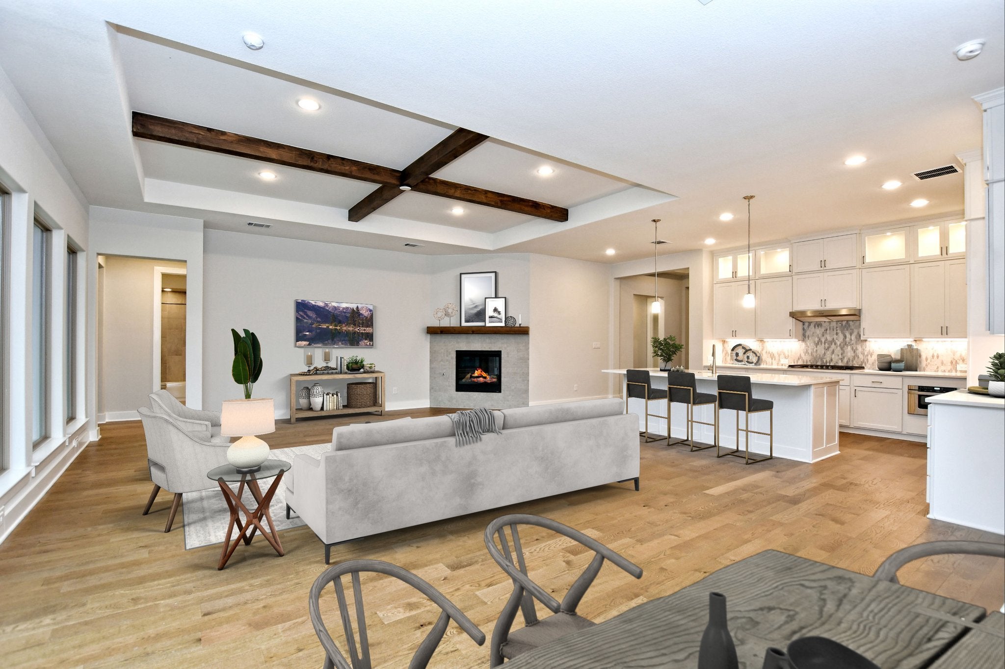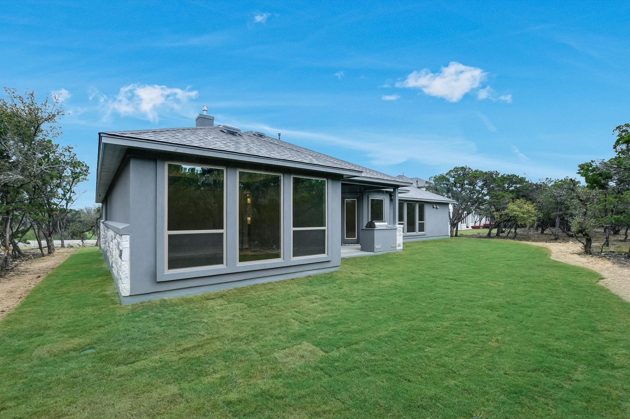 New construction home in The Hollows on Lake Travis. NEW 5% flex incentive to be used towards 3-2-1 buy down, 2-1 buy down, closing costs and price reduction. Call agent for details. 3,456 SF, 1-story home with 4 beds, 4 baths, study, game room and 3-car garage. 4' wide iron front door. Wood flooring in main living areas. Kitchen with center island, quartz countertops, double ovens, propane cooktop and lots of storage with upper cabinets to 10' with glass fronts and puck lighting for display. Large walk-in pantry and drop zone immediately off kitchen and garage. Kitchen open to great room with wood-beamed ceiling and large dining space. Primary bedroom with en-suite, double vanity, separate shower with rainhead faucet and two walk-in closets - one extra large. Game room at rear of home with wood-beamed ceiling. Covered patio with built-in outdoor kitchen/grill.