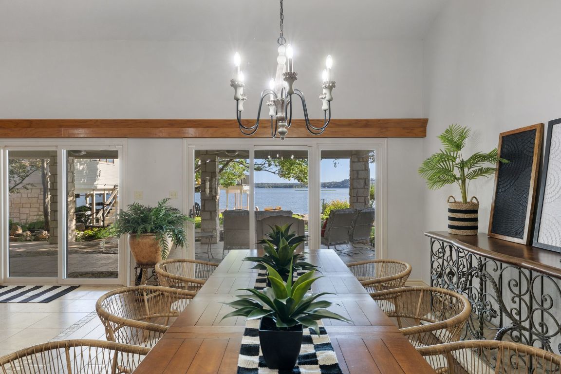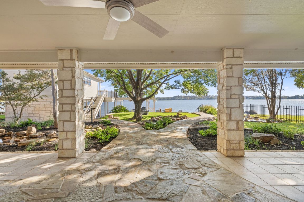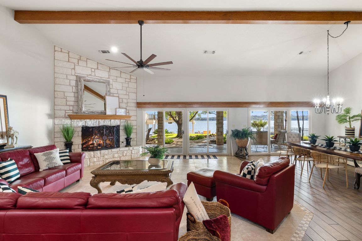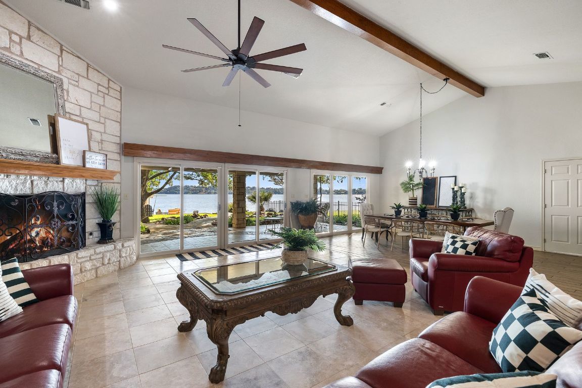 14 Beaver Island on Lake LBJ is a stunning 5-bedroom, 4-bath lakefront retreat, embodying the ultimate resort and second-home lifestyle, while also being ideal for full time living with easy access to all the amenities needed for a wonderful life! Featuring 80’ of breathtakingopen waterfront, this property is a lake lover’s paradise. Spend your days boating, jet-skiing, or paddleboarding on the sparkling watersof Lake LBJ, renowned for its calm, clear conditions ideal for watersports. The private boathouse, complete with guest quarters above,offers convenience and charm, while the expansive deck provides panoramic lake views—perfect for sunset gatherings or morning coffee. A serene water feature runs through the property, cascading into Lake LBJ, creating a tranquil ambiance. Inside, the spacious,open-concept home blends luxury and comfort, with ample room for family and guests. The vibrant Lake LBJ lifestyle extends beyond the water—tee off at nearby championship golf courses, just minutes away, or indulge in world-class dining and spa experiences at local resorts. Whether you’re seeking thrilling water adventures or leisurely days on the green, this home delivers an unmatched blend of relaxation and recreation. Embrace the Lake LBJ lifestyle at 14 Beaver Island—your perfect lake house awaits!