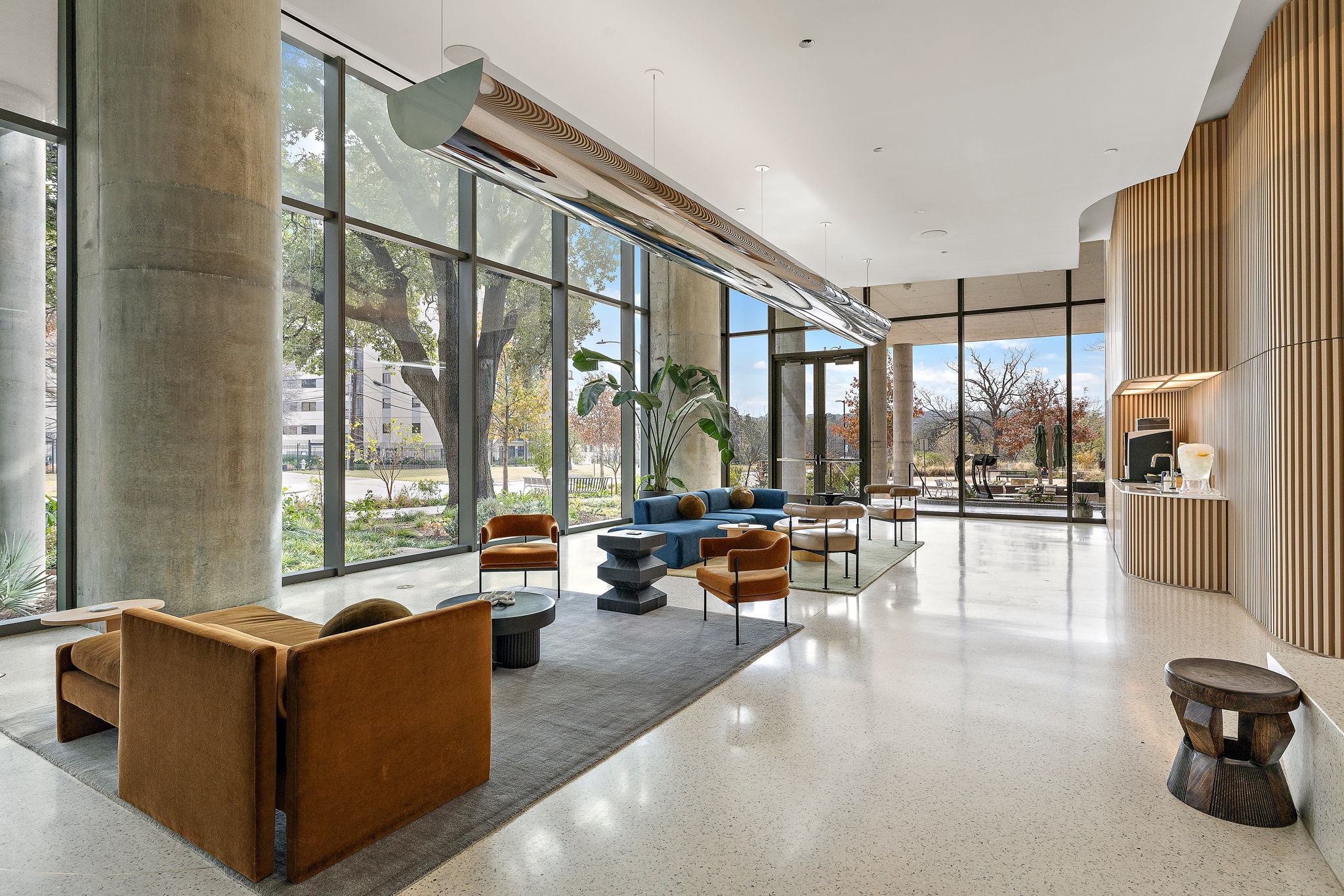 Experience elevated downtown living at 44 East Ave, one of Austin’s most sought-after high-rise communities. This meticulously upgraded 2-bedroom, 2-bath corner residence features floor-to-ceiling windows and lofty ceilings that flood the open-concept living space with natural light, showcasing panoramic views of Lady Bird Lake. A private balcony offers breathtaking 180-degree city and lake views. The sleek, chef-inspired kitchen is appointed with quartz countertops, custom cabinetry, and high-end appliances—perfect for both everyday living and entertaining. The primary suite enjoys stunning Lady Bird Lake views, a spa-caliber bath, and a generous walk-in closet. A washer and dryer convey with the sale, and the property also includes two side-by-side reserved garage spaces. Residents enjoy over 13,000 square feet of resort-style amenities, including a cenote-style heated pool, state-of-the-art fitness center, yoga studio, sky lounge, executive and conference rooms, a great room with catering kitchen, family and game rooms, guest suites, outdoor lounges with BBQ grills, and 24-hour concierge service. Pet-friendly amenities include a dog lounge, spa, and outdoor dog park. Located just steps from the Lady Bird Lake Trail and Rainey Street, with quick access to I-35, this residence offers sophisticated urban living in the heart of downtown Austin.