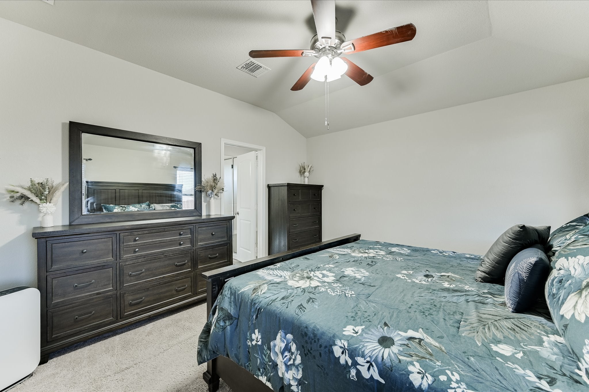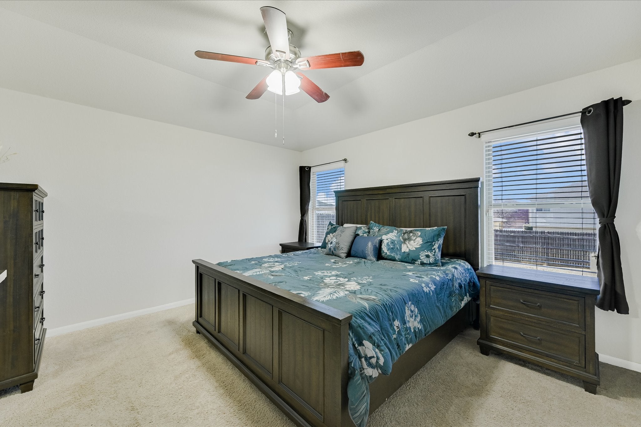 This charming 3-bedroom, 2-bath home offers a perfect blend of comfort and modern living. Step inside to discover a bright and open-concept layout, where natural light fills the spacious living and dining areas, creating an inviting atmosphere for both relaxation and entertaining. The well-appointed kitchen, complete with modern appliances and ample counter space, is perfect for culinary enthusiasts and family gatherings. Retreat to the cozy primary suite, featuring an en-suite bathroom for your convenience, while the additional bedrooms provide plenty of space for family, guests, a dedicated home office, or playroom. Outside, you’ll find a nicely sized yard, ideal for gardening, play, or simply enjoying the outdoors. The covered patio invites you to unwind with a morning coffee or host evening barbecues, all while enjoying the serenity of your private outdoor space. Located in a friendly neighborhood with convenient access to a community pool and amenities, parks, walking trails, and schools. Schedule a showing today!