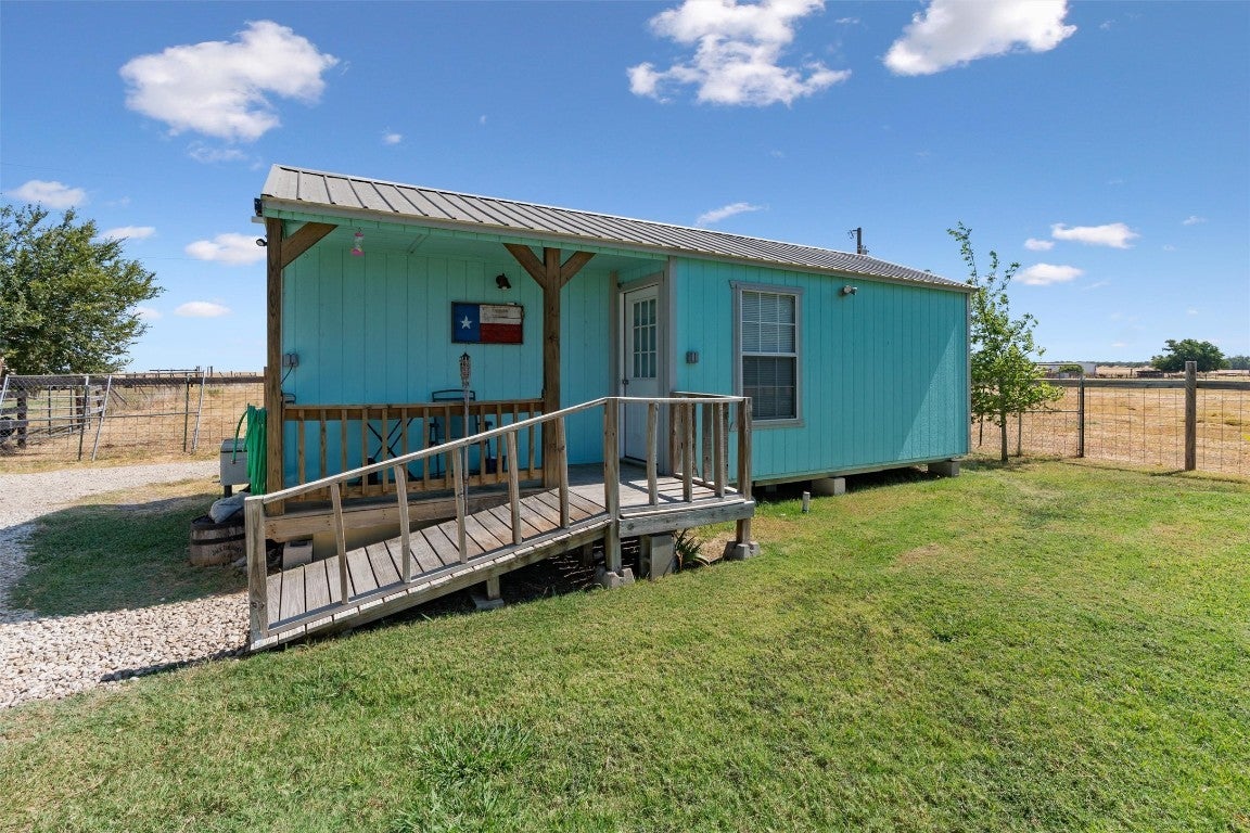 Approx. 25 miles to new Samsung Plant, within 45 minutes to Round Rock, and 55 minutes to Austin. There are 2 homes on the property. The tiny house is approx. 384 sq. ft. living area per owner built in 2020. It is on pier/beam foundation, 1 bedroom, 1 bath, with a 2 car metal carport with small metal storage building with overhead door and regular door with loft, built 2021, on skids. Bigger house is a 2 bedroom, 1 bath home, originally built in 1930 and was moved to the property in later years. In 2003 it was added on to and in 2020 new siding was put on and windows were replaced along with some insulation added. Storage building built 2020. 2 decks were added in 2003. Large pond, native pasture. Will convey any owned minerals. Adjacent property of house with 10 acres with horse facilities and large pond, MLS # 1300663, is also for sale, asking price of $585,000.