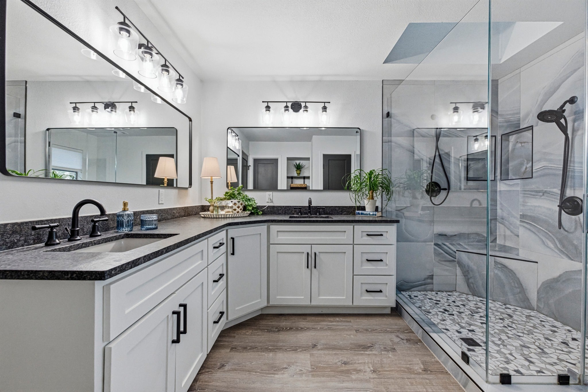 Discover the perfect blend of modern updates & serene living in this beautifully renovated home on 3 private acres minutes from downtown! A sweeping circle driveway beneath a canopy of impressive Oaks greets you upon arrival, providing an unforgettable first impression along with ample guest parking! The large front porch exudes classic charm, ideal for rocking chairs & slow evenings spent watching the world go by. Step inside to vaulted ceilings & wall-to-wall windows that frame the surrounding natural beauty, creating a bright, airy atmosphere. The newly remodeled kitchen is the heart of the home, featuring an oversized island ideal for casual gathering, family meals, or after-school homework sessions. This well-thought-out floorplan features French doors leading to 2 spacious guest bedrooms. The primary suite is generously sized & features a newly remodeled ensuite with double vanities, leathered granite countertops, & a walk-in shower. Step through the swanky bar area to find the dedicated laundry room outfitted with a pet washing station & half bath off of the two-car garage. Within the garage you’ll find an added bonus of a completely finished out space ready for a home gym, steam room, sauna, wine cellar... the possibilities are endless! A expansive limestone back porch offers sweeping views & an ideal setting for quiet mornings, evening sunsets, & everything in between. Let your imagination run wild exploring the fully enclosed barn. With utilities already run to this bonus structure, there are endless opportunities to transform this space into anything the new owner could dream up! There’s also plenty of flat usable land space to build a pool, plant a garden, or simply enjoy the wide-open surroundings. The property is fully fenced with high perimeter fencing for added security and to keep wildlife out. Move-in ready with room to grow, this is a rare and versatile opportunity to own an impressive slice of heaven within minutes of all local conveniences!