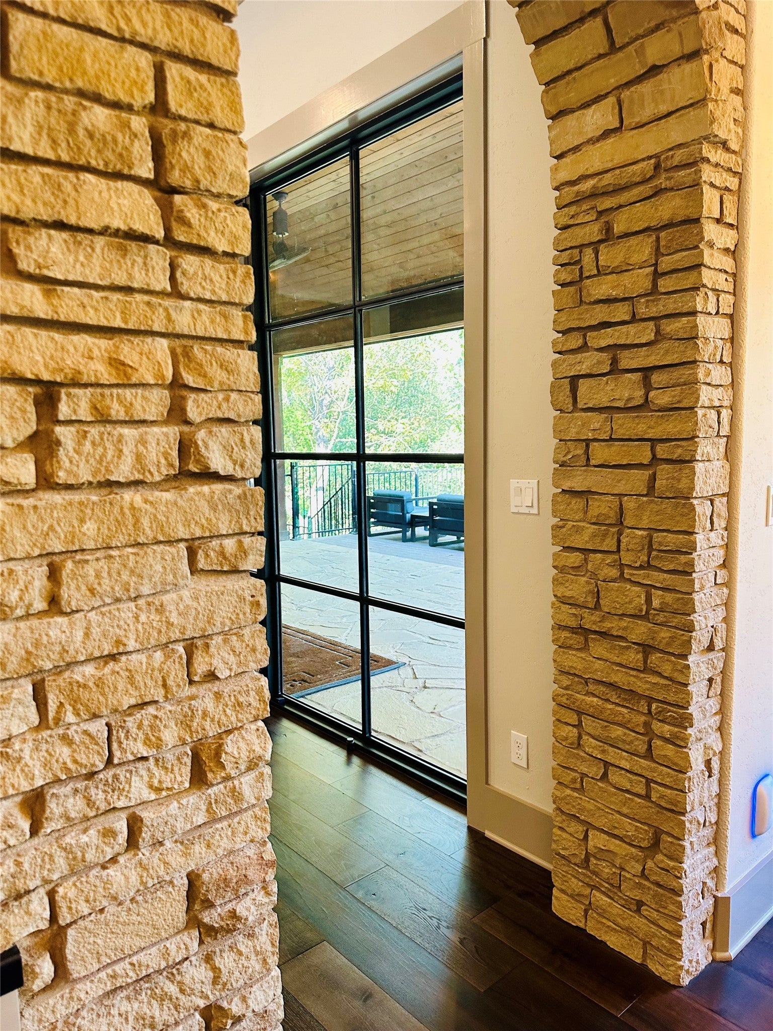 MUST-SEE CUSTOM HOME — PRICED WELL BELOW APPRAISAL. This is not your typical cookie-cutter build—this is a true custom home designed with intention, quality, and standout features throughout. Priced well below appraisal, it presents an incredible opportunity to own a one-of-a-kind property loaded with upgrades you simply won’t find elsewhere at this price. Thoughtfully built with tens of thousands in custom enhancements, this home offers both luxury and peace of mind. Highlights include a rare F5-rated storm shelter and secure vault, providing unmatched safety and storage. Energy efficiency meets modern convenience with solar panels, a dual tankless water heater system, and whole-home surge protection. TWO walk-in attics with over 1000 sq ft of storage and foam insulation. Separate garages enjoy a dedicated Tesla wall charger and the added flexibility of a private guest entry—perfect for visitors and/or multigenerational living. Once you pull into the circular drive on this treed lot, you are greeted by an Arched iron entry doorway, which is one of the FIVE Durango doors throughout the home. Inside you are immediately struck by the Stunning glass wall looking out over the deck and greenbelt. The kitchen is a Chef's dream, with 2 built-in ovens PLUS a steam oven, and a 6 burner Wolf cooktop! The Dual office area has a private entrance onto the screened porch with an outside fireplace. The Primary retreat reveals a walk-in shower that also boasts a relaxing steam shower, creating two showers in one! Overlooking the HOA hiking trail is a full length multi-level composite rear deck, outdoor kitchen and a private hot tub directly off the primary bathroom. A low maintenance backyard, along with a side yard for your fur babies. All of this is tucked away in an exclusive boutique community of just ~40 homes, offering a quiet, private feel while still being close to everything you need. Homes like this don’t come around often—schedule your showing today before it’s gone.