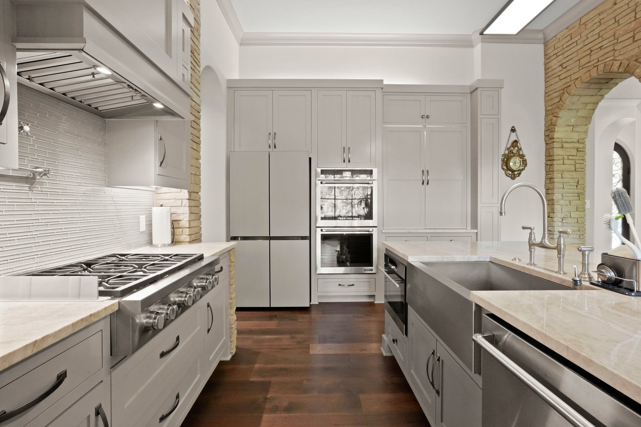 - Built-In Electric Oven, Built-In Oven, Cooktop, Double Oven, Dishwasher, Disposal, Microwave, Water Softener Owned, Stainless Steel Appliance(s), Tankless Water Heater, Propane Cooktop