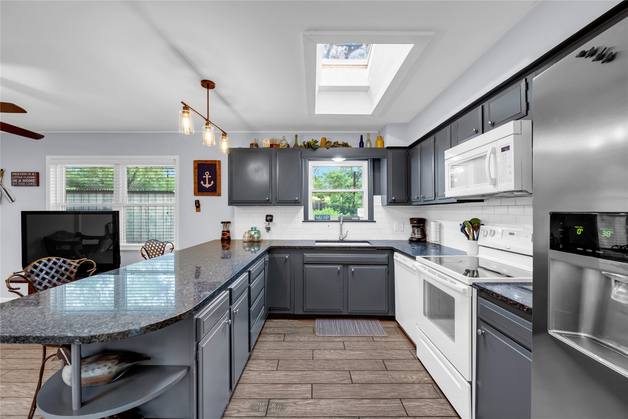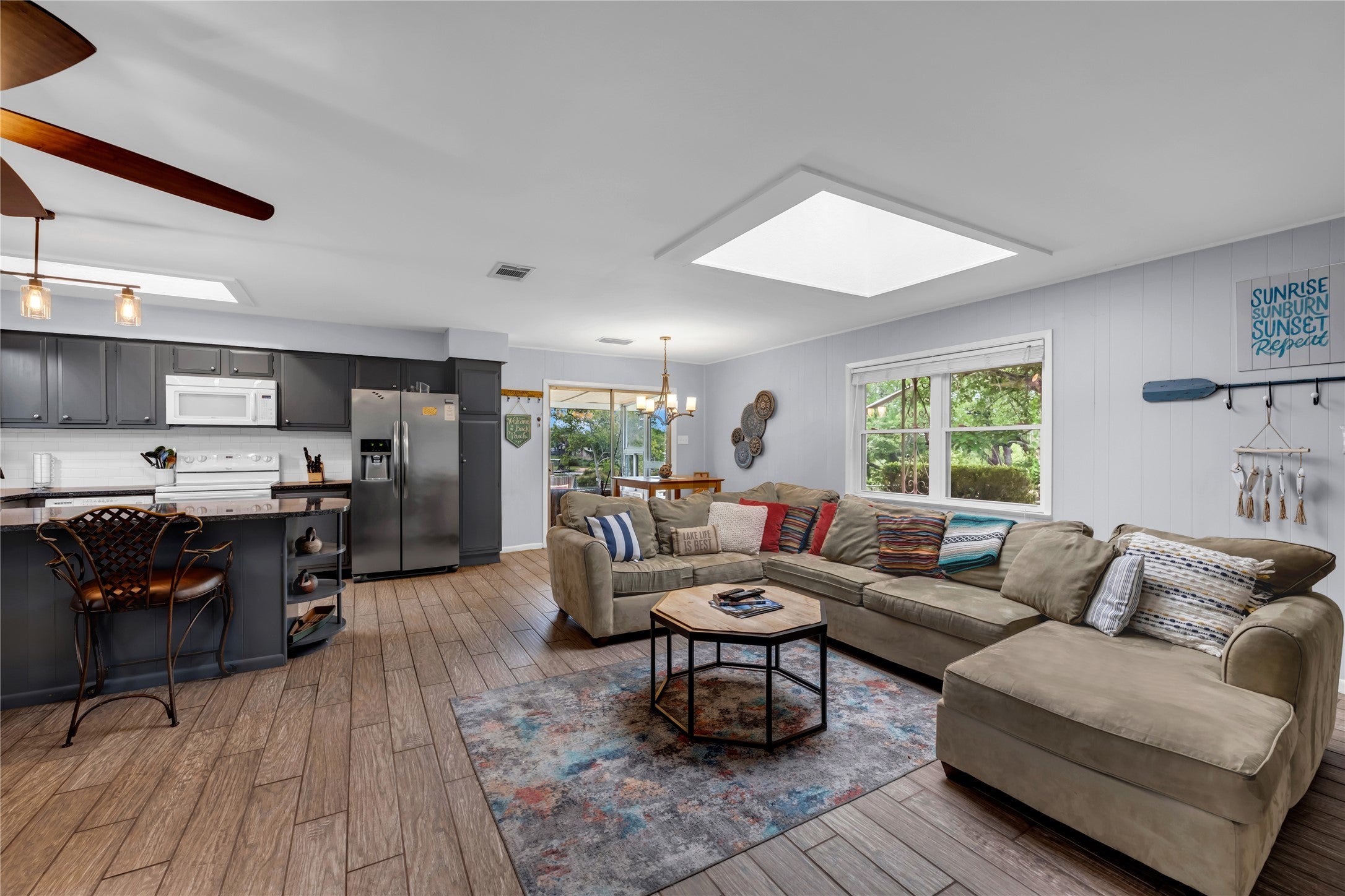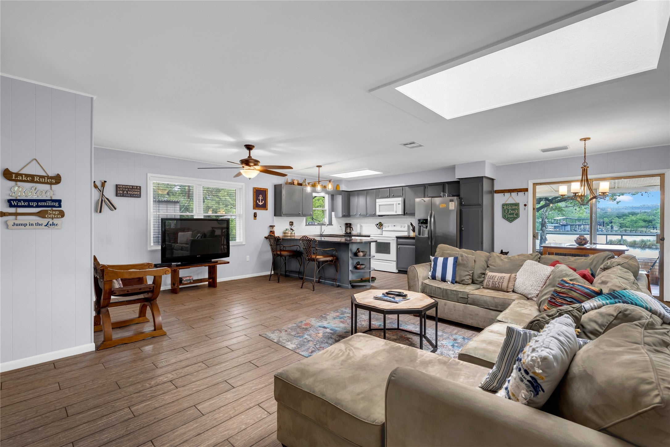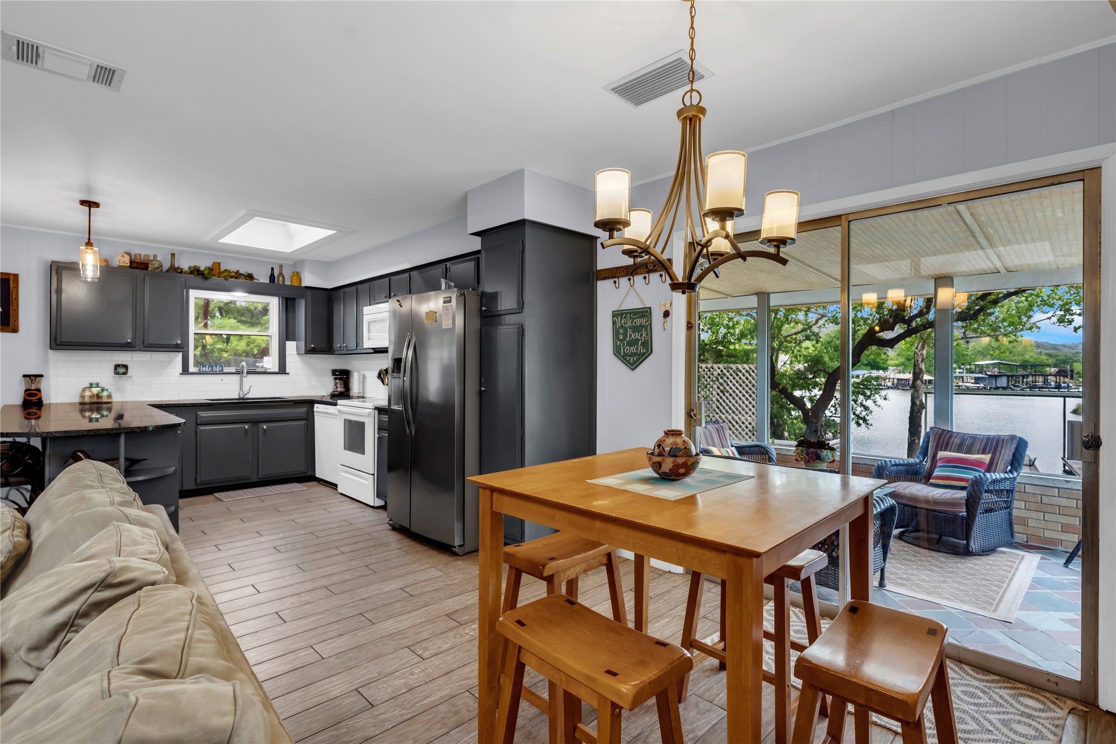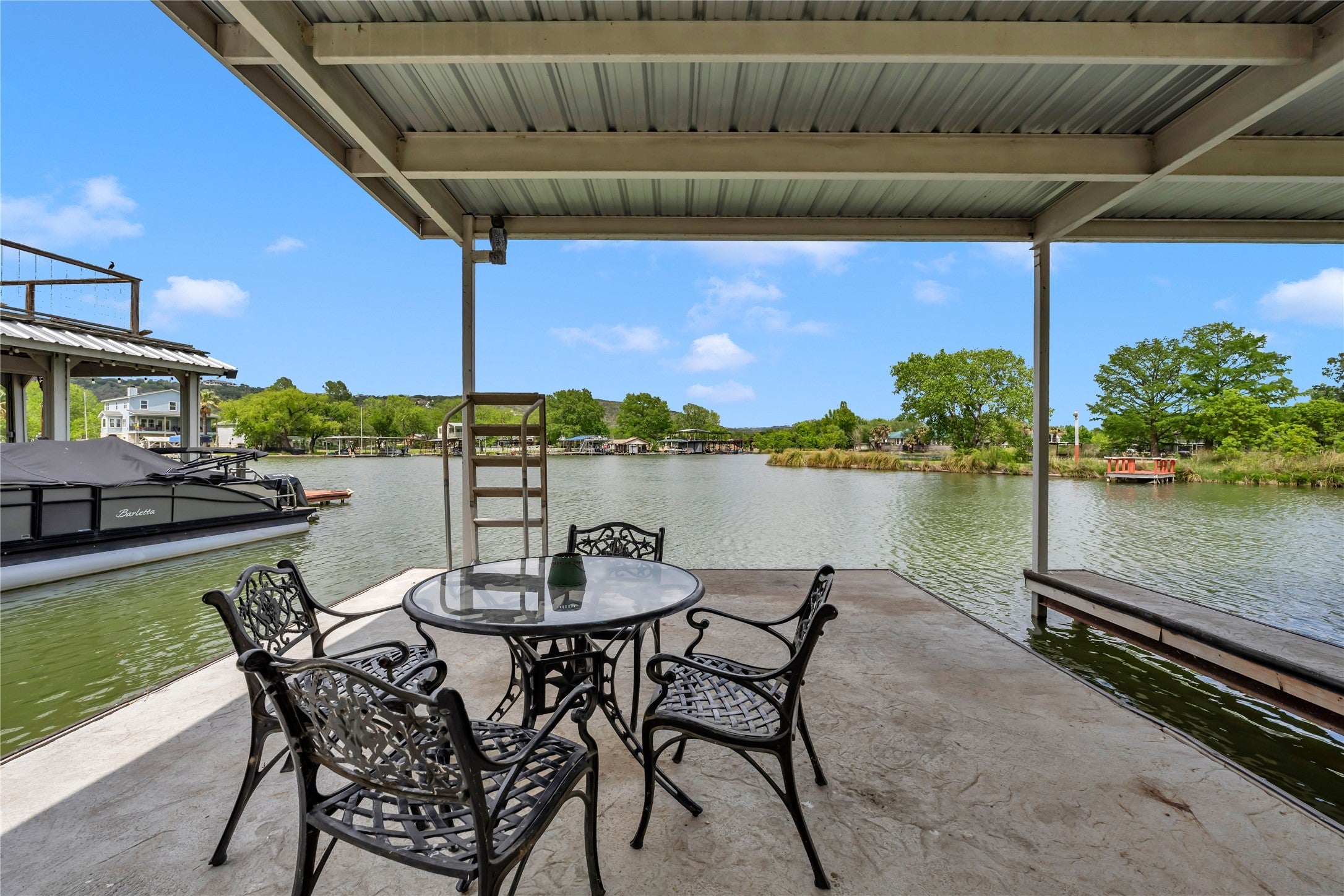 Motivated seller, bring all reasonable offers. Charming Lake LBJ Retreat in one of the most sought-after coves. Nestled on one of the largest and most desirable enclosed coves on constant level Lake LBJ, this beautifully remodeled all-brick lake house offers the perfect blend of charm, comfort, and convenience. Featuring 2 bedrooms and 1.5 baths, this gem is ideal as a weekend getaway, investment property, or full-time residence. Step inside to find stylish wood-look tile throughout, granite countertops, and a warm inviting interior finish that perfectly compliments lakeside living. The home boasts a durable standing seam metal roof, both on the house and the separate detached carport. Enjoy outdoor living at its best with a newer oversized boat dock, perfect for entertaining or just soak up the peaceful cove views. Lake irrigation keeps the yard lush year-round, while the calm waters of the cove provide a safe and scenic place to swim, paddleboard, or just relax. Located in one of the few areas on Lake LBJ where short-term rentals are still permitted, this home is currently managed by a highly rated rental agency, making it a turnkey opportunity for investors or those looking to offset costs. Whether you're boating, fishing, or simply relaxing by the water this is like life done right.