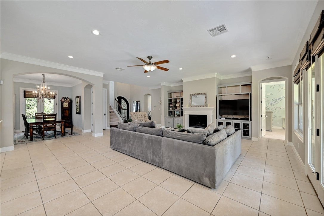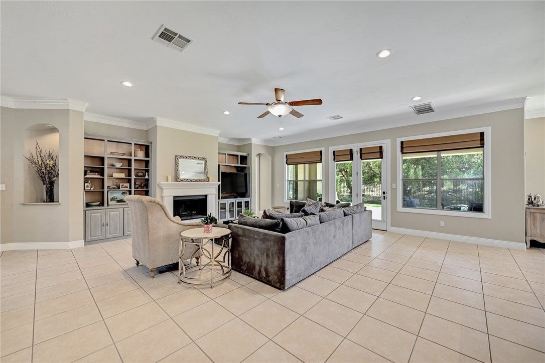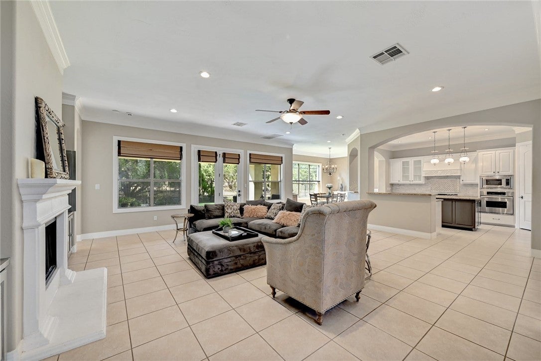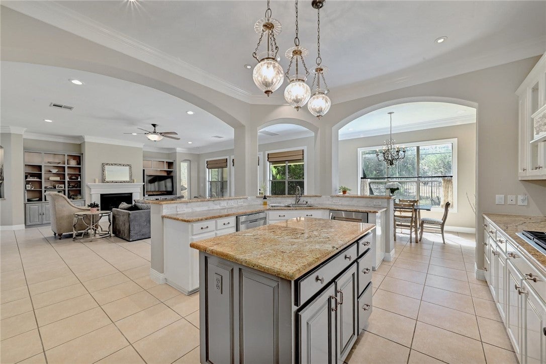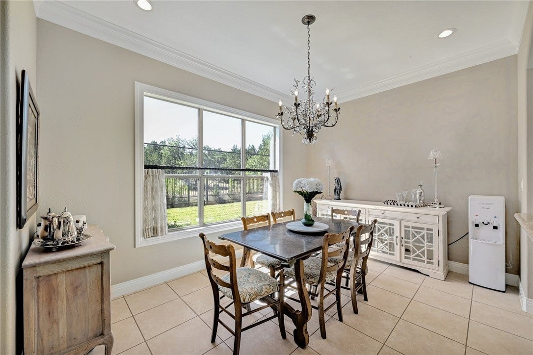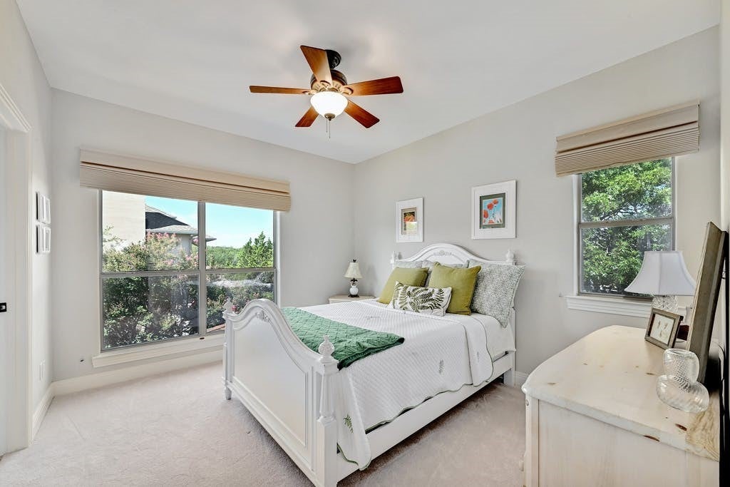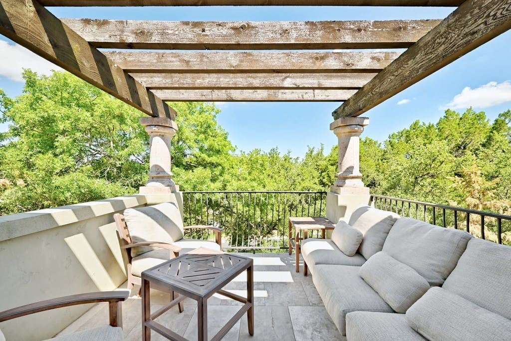 In the picturesque setting of the Bluffs off Bee Cave Rd in Westlake this gorgeous for lease home sits atop a beautifully landscaped oasis lined with mature crepe myrtles, large oak trees and Texas native plants. Large iron double doors at the main entry set the vibe of this elegant home. From the updated chandeliers to the whimsical murals by Christina Terry, this property has it all! Four bedrooms with a spacious owner's bedroom down that opens to one of 3 outdoor patios. Sophisticated office on the main level could also serve as a 5th bedroom. 3 bedrooms up the well lit, wide staircase with a large game/media room in the center of the space. Double doors open to the third outdoor patio off the upstairs flex space. Stunning sunsets await on this upper balcony during the cooler weather. Granite counters, updated lighting, gas fireplace in the high ceilings, open concept living room. This home backs to a large acreage private property. Lake access through the pedestrian gate on Edgewater. Cruise the neighborhood in a golf cart to the spring time Splasher swim team events or host a birthday party on the sandy shores of Lake Austin. Read a book on a blanket at the Lake Park in the spring or join the fun in the fall at Cuerny Jam! Convenient to DT (20 mins) and the Hill Country Galleria (10 mins) where one will find Whole Foods, Alive & Well and many more!