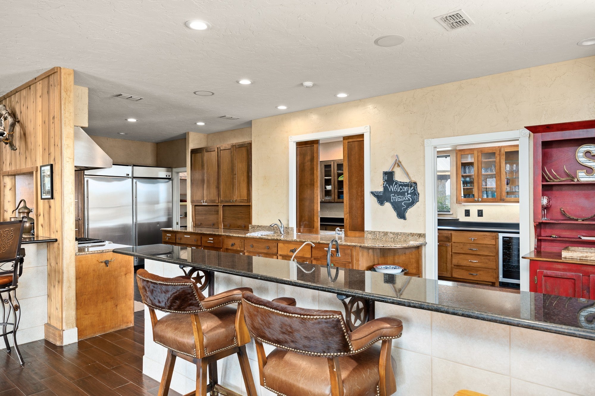 Discover one of the most exceptional live water ranches in the Texas Hill Country. This stunning 177-acre property on Upper Turtle Creek Road offers an unparalleled combination of natural beauty, premium amenities, and prime location just minutes from Kerrville. This property features 2,800 feet of pristine Turtle Creek headwaters flowing along both sides of the ranch. Crystal-clear, year-round water winds through dramatic limestone cliffs, creating breathtaking natural scenery. A covered limestone pavilion with a large stone fireplace sits creekside in the "party pasture," offering the ultimate gathering spot. Commanding panoramic views from its hilltop perch, the 5,569-square-foot mission-style lodge features four spacious bedrooms and three and a half bathrooms. The thoughtfully designed home maximizes both comfort and entertainment potential while showcasing the ranch's spectacular vistas. Additional Improvements include: • Two-bedroom bunkhouse with full bath for guests or staff • Barn and workshop with attached apartment • Paved internal road system Rolling pastures dotted with mature hardwoods create classic Hill Country scenery, while abundant wildlife provides excellent hunting opportunities. With 6,600 feet of paved road frontage and three gated entrances, the property offers both privacy and convenient access. Located just 10 minutes from Kerrville and within easy reach of San Antonio, Austin, Medina, Bandera, Comfort, and Center Point. This rare combination of seclusion and accessibility makes it ideal for a luxury retreat, family estate, event venue, or investment property. Whether you envision intimate family gatherings, grand celebrations, world-class hunting, or simply a peaceful Hill Country escape, this extraordinary ranch delivers an unmatched Texas Hill Country experience.