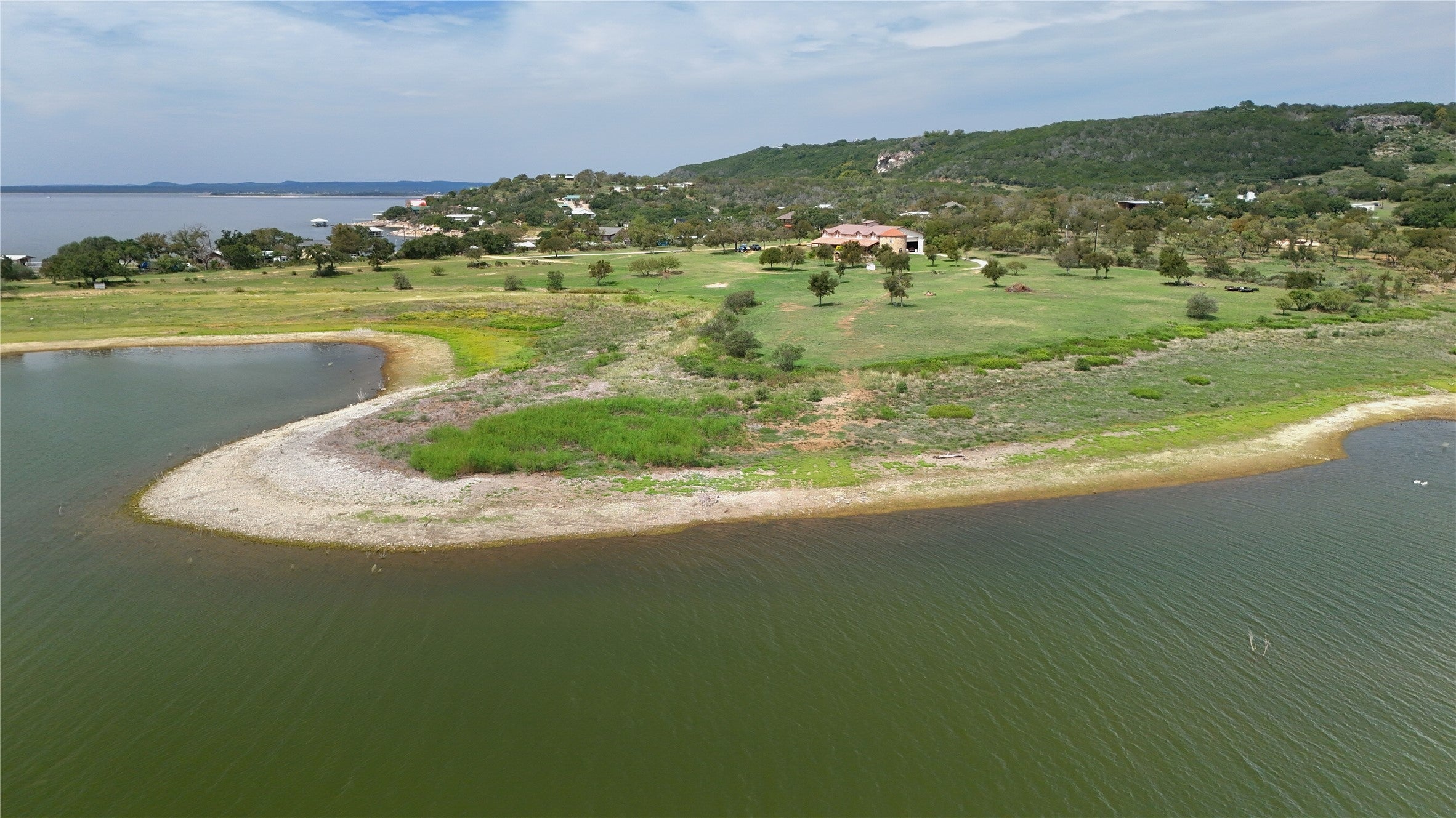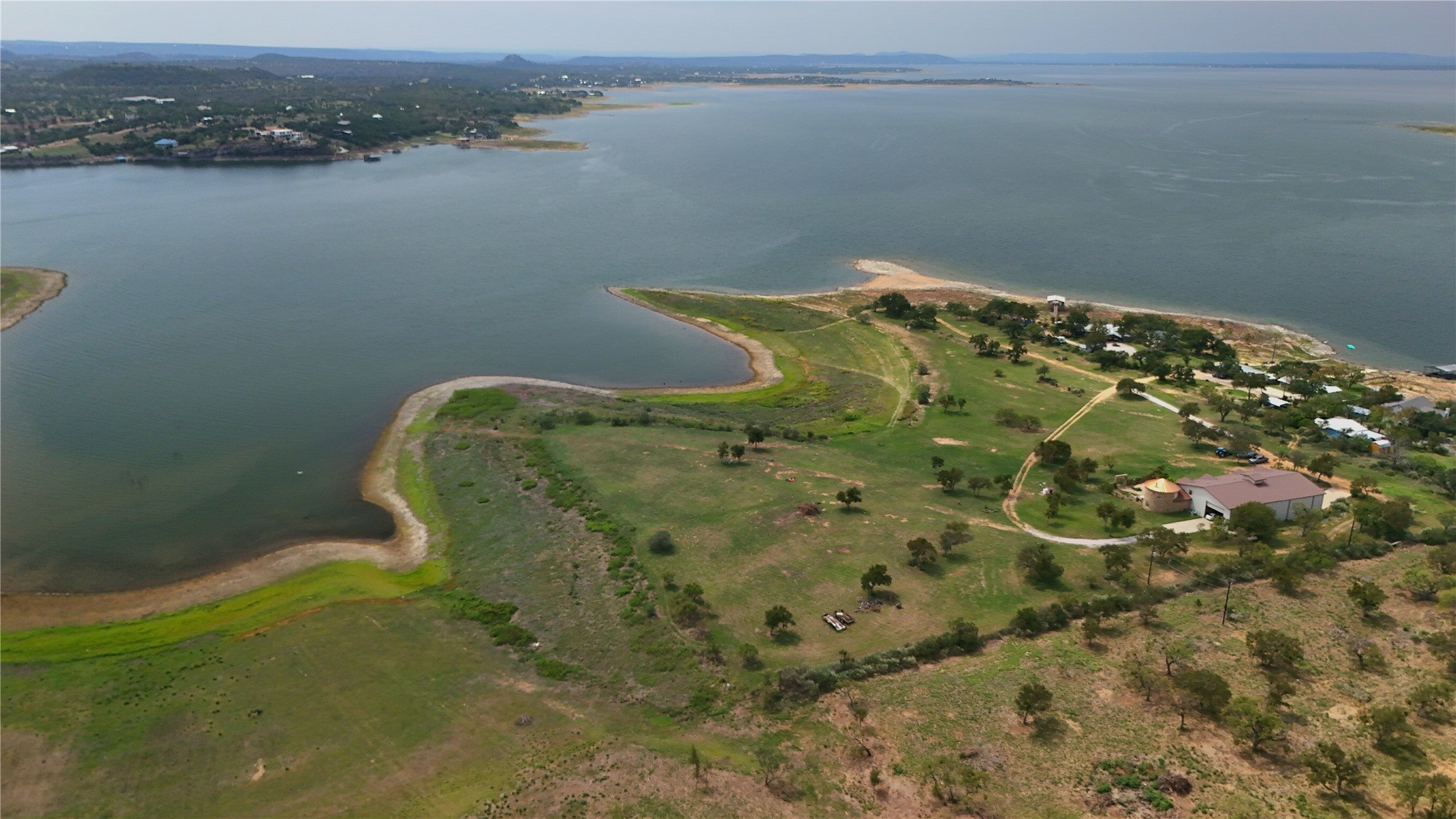 Lake Buchanan estate. Tranquility & serenity are your first impressions. The large expanse of water is your next impression.1800 lf waterfront with 2 points for your dream home & 2 coves for swimming & fishing. A gated entrance takes you to a large barndominium & the barn with storage. An abundance of wildlife with room for horses. A totally unique 8.92 AC SUBMERGED when lake is full. The owner needs 45-day lease back after closing.