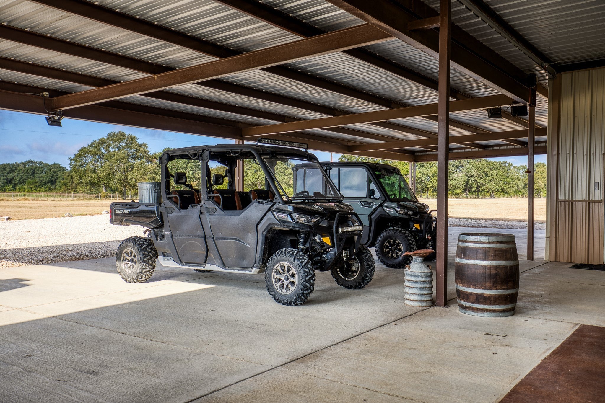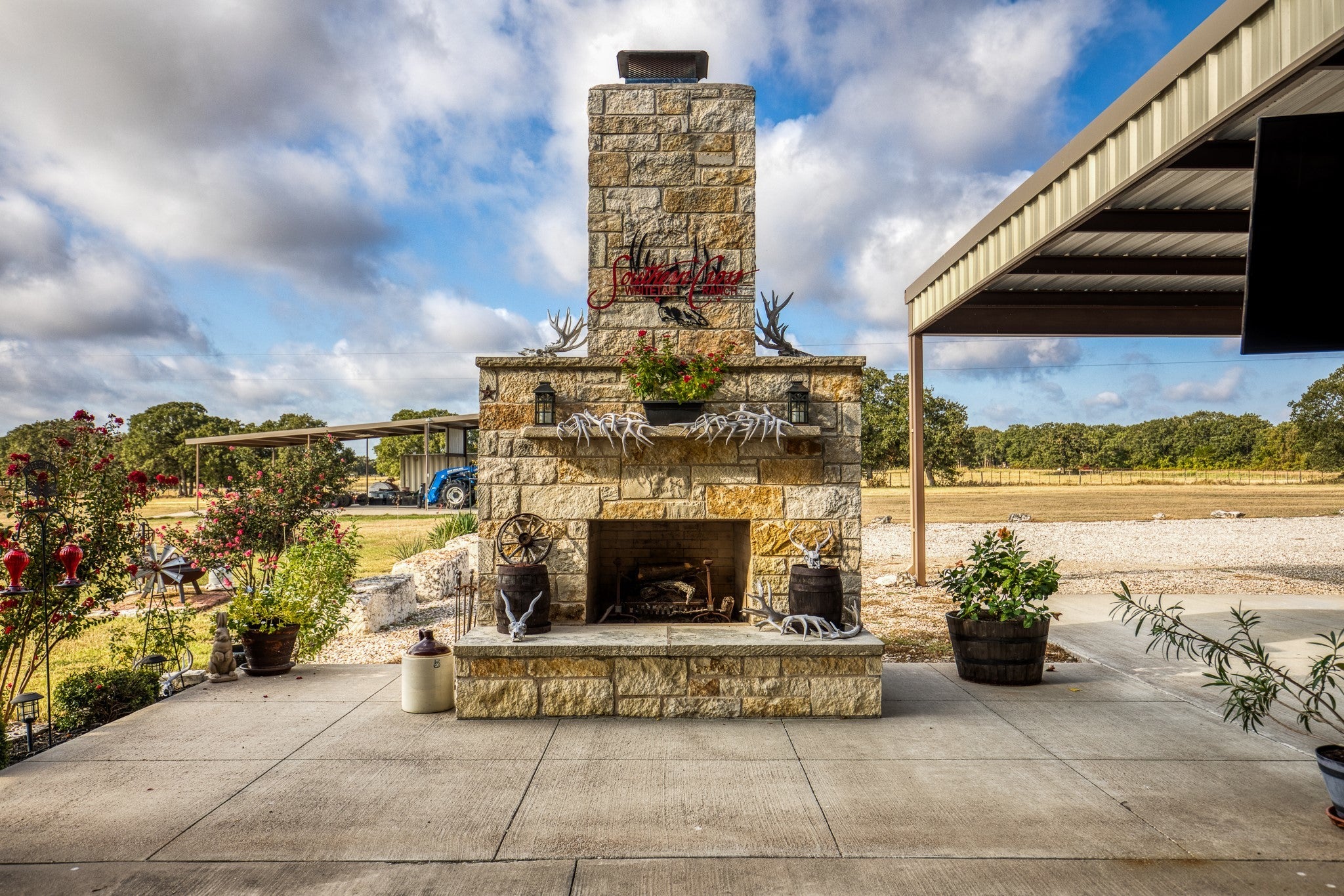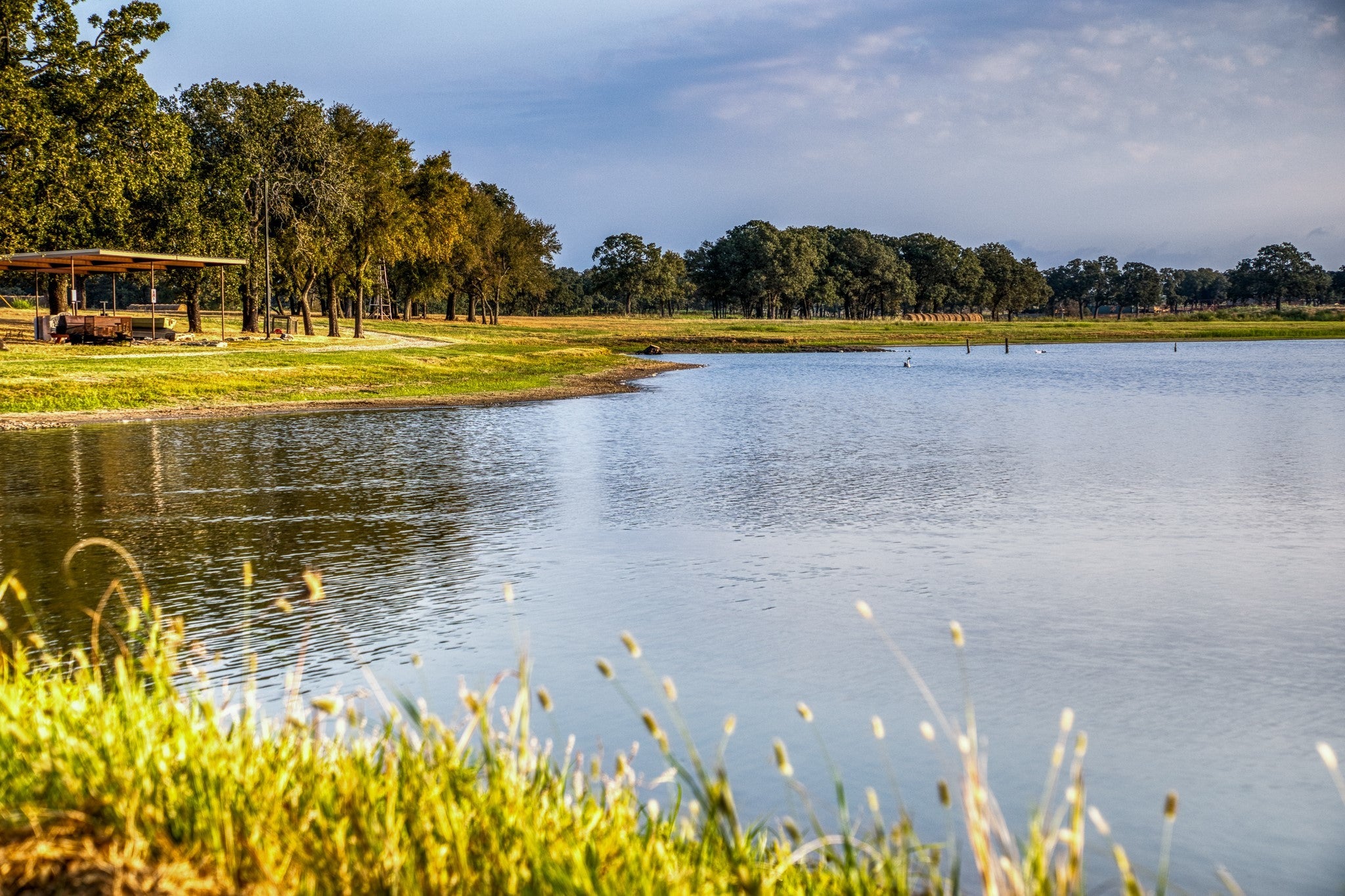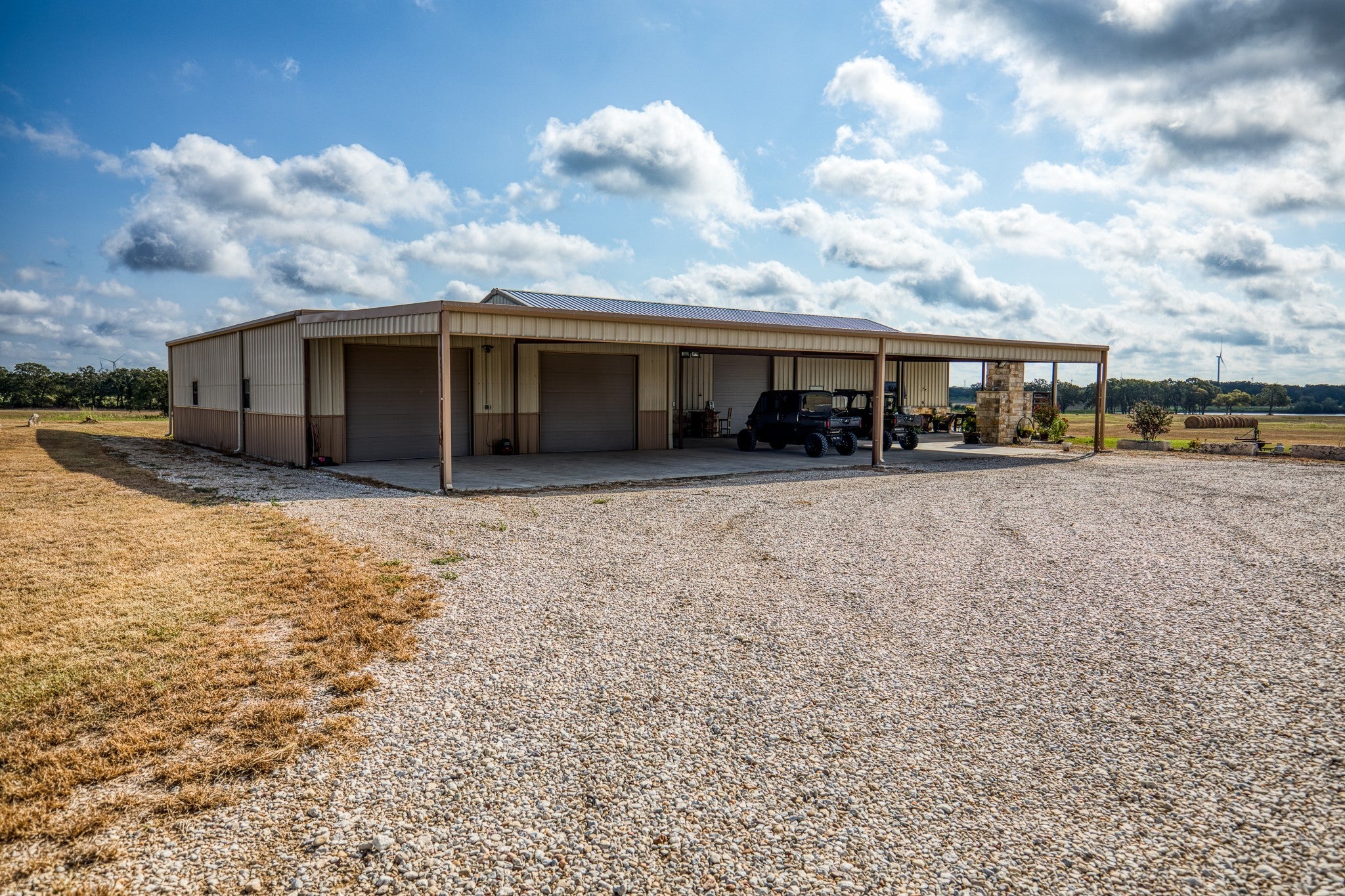 A pristine 148 Acre ranch just 25 minutes from Waco. This is a highly improved ranch where you can experience your own private 25 Acre lake stocked with trophy bass, custom barndominium, producing pastures, mature hardwoods, and excellent hunting. BRAND NEW insulated garage doors, additional 14' x 76' concrete slab for parking or addible shop space, and freshly planted trees with landscaping. Newer immaculate 40’ x 80’ heated and cooled barndominium holds private living quarters of around 1,600sqft of living space and includes 1-bedroom, full kitchen with propane range, 1-bathroom, walk-in pantry, and cozy living room. The rest of the barndominium is fantastic for endless toys and the perfect setup for entertaining guests, featuring a stone outdoor fireplace and exceptional views of the lake. The large overhangs spanning 40’x 70’ offer excellent cover along with 4 large 12’ tall bay doors. Attached to the barndominium is a 40’ x 60’ shop that is also heated and cooled. In the shop comes an Atlas car lift, and ample outlets for various machines and equipment. Both the barndominium and shop have been professionally spray foamed and the concrete floors stained. Land-Topography: Currently used for hay production, the pastures are routinely sprayed for weeds and supplemented with fertilizer. Multiple mature oaks and pecan trees dot the landscape throughout with large groups towards the rear of the ranch where a wet weather creek meanders through. Additional tank in place that is stocked. Utilities: Two water meters and electricity is in place and partially underground. The septic system is a large capacity unit, designed for any additional housing along with a newly installed propane tank. Other Improvements: On the property is a metal pavilion right by the lake that is another great spot for cleaning the days catch or entertaining guests. Another 25’x 50’ metal pavilion is in place for equipment storage with electricity and water supplied to it.
