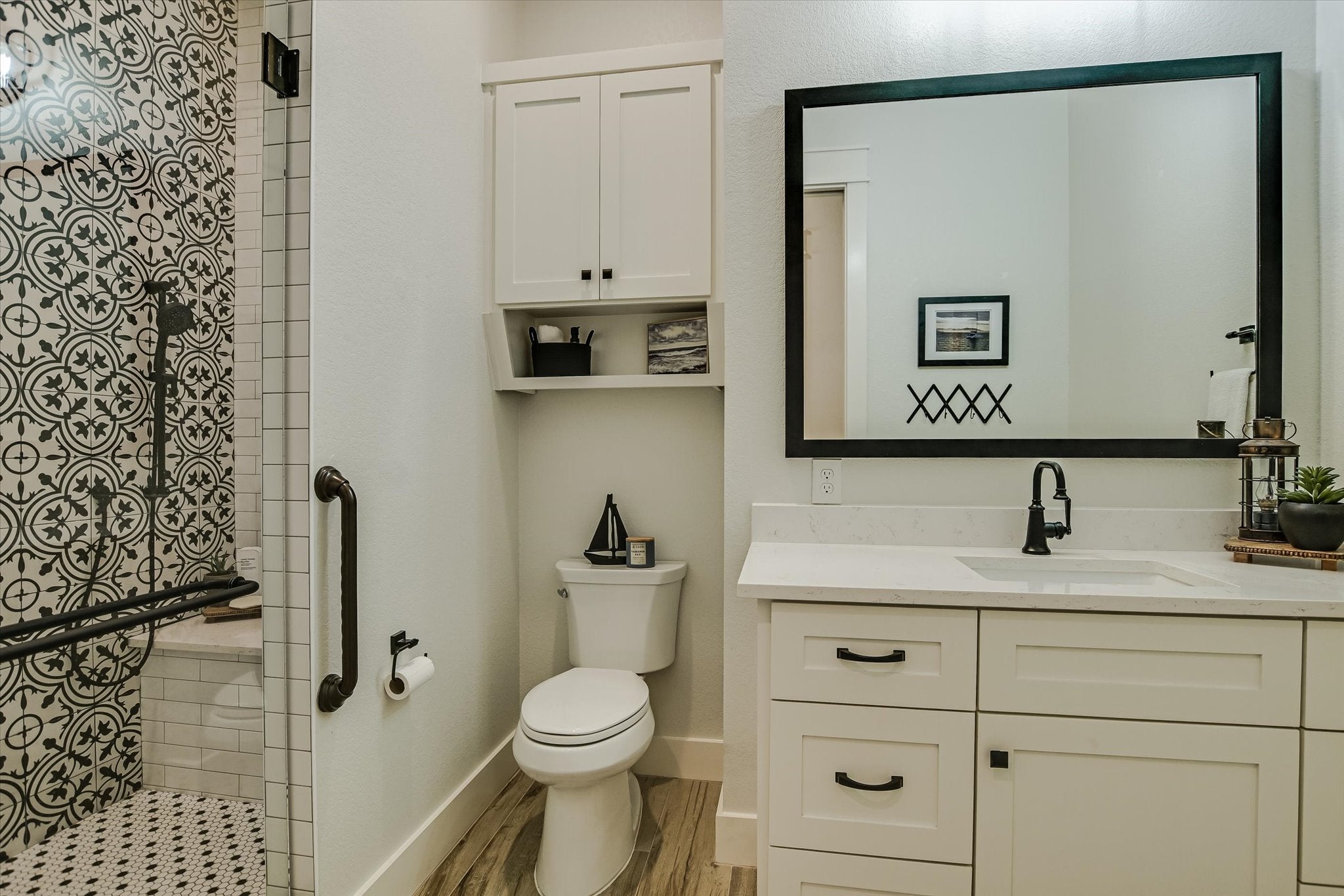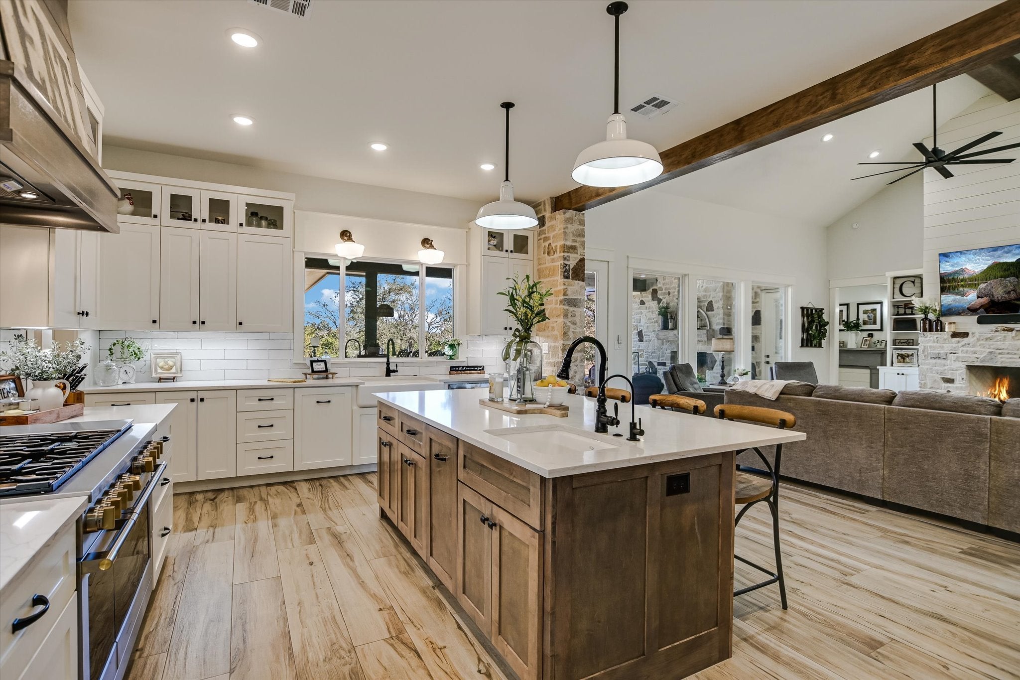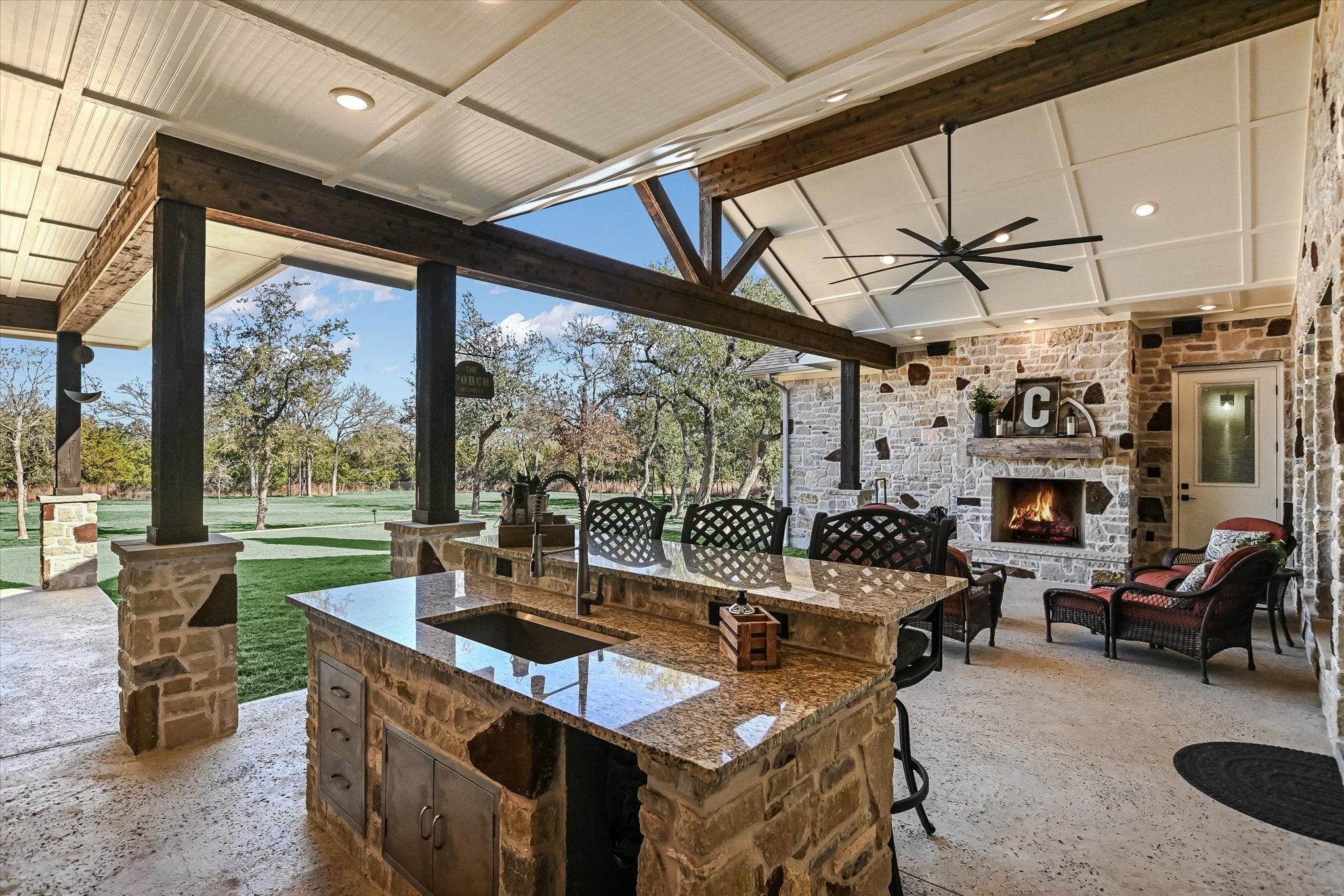 Modern Acreage Living with Luxury Shop & Flex Space - Designed for both everyday comfort and long-term flexibility, this custom 4-bedroom, 4.5-bath home sits on 2.67 acres with no HOA—offering the freedom today’s buyers are searching for. The thoughtfully designed floor plan includes two private suites plus two additional bedrooms connected by a Jack-and-Jill bath, creating an ideal setup for multi-generational living, guests, or growing families. The primary suite is spacious and refined, featuring dual vanities, separate his-and-her closets, and an oversized walk-in shower. Natural light fills the open-concept living area, highlighting beautiful stone accents and seamless flow between kitchen, dining, and family room. The kitchen was designed for serious functionality and entertaining alike—complete with a large quartz island, walk-in pantry, butler’s pantry with ice maker, floor-to-ceiling cabinetry, and abundant prep space. A dedicated media/game room with full bath and walk-in closet offers flexibility as a fifth bedroom, private guest suite, or secondary living area. Step outside to a true year-round outdoor retreat featuring a propane fireplace, built-in griddle, sink, and bar seating—perfect for hosting or unwinding after a long day. What truly elevates this property is the 1,035 sq. ft. climate-controlled workshop with dual electric roll-up doors, sink, and heat & air. Attached is a 465 sq. ft. office with full bath and walk-in closet—ideal for a home-based business, studio apartment, fitness room, or private workspace. RV hookups, additional covered parking, and full utility connections add even more versatility. Located just minutes from the newly extended 183A Toll and Highway 29, with Target, Costco, and expanding retail nearby, this property offers the rare combination of space, function, and convenience within Liberty Hill ISD. A nearly-new custom home with this level of flexibility, acreage, and location is increasingly hard to find.