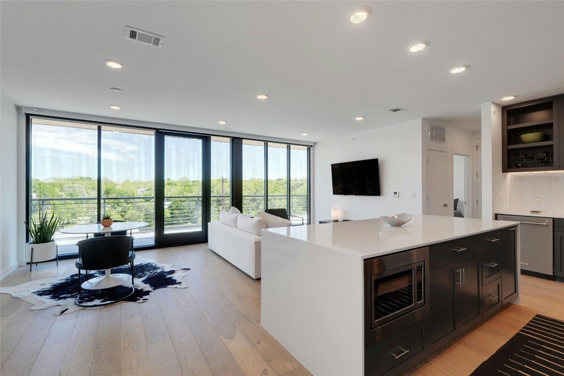 Experience urban luxury at The Willa in vibrant Bouldin Creek, where skyline views and unmatched outdoor living take center stage. Built in 2019 and barely lived in, this top-floor residence remains in pristine condition, showcasing floor-to-ceiling windows that flood the interiors with natural light and frame panoramic views of Downtown Austin. The showpiece is an extraordinary 700+ sq ft private terrace—your personal outdoor oasis for entertaining, relaxing, or enjoying Austin’s sparkling skyline at night. Inside, the chef-inspired kitchen features quartz waterfall countertops, premium appliances, and sleek cabinetry designed for both form and function. The open living and dining areas flow effortlessly, enhanced by motorized shades for light control and privacy. Two well-positioned bedrooms ensure comfort and privacy, while practical luxuries include two secure, assigned underground parking spaces. The Willa’s boutique amenities—secure package room, reservable conference space, and community courtyard with grills—add ease and convenience to everyday life. Step outside and immerse yourself in Bouldin Creek’s eclectic spirit. Walk to beloved Austin favorites like Elizabeth Street Cafe, Fresa’s, Lenoir, Dish Society, Bouldin Creek Cafe and Once Over Coffee, with new additions such as Neighborhood Sushi and Swedish Hill just moments away. Downtown’s dining, music, and cultural landmarks are only minutes from your doorstep. This residence isn’t just a condo, it’s a statement of style, light, and connection in the heart of Austin.