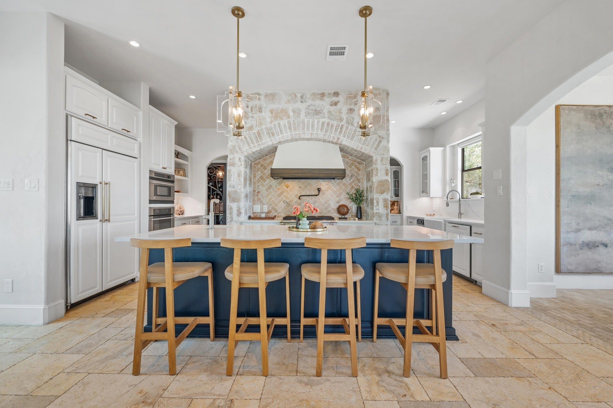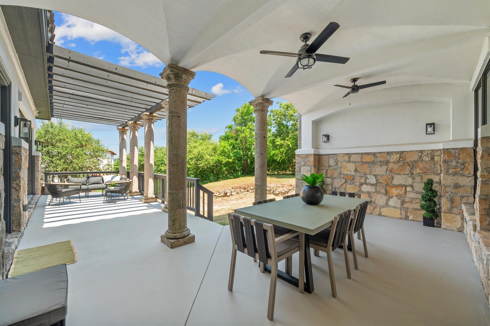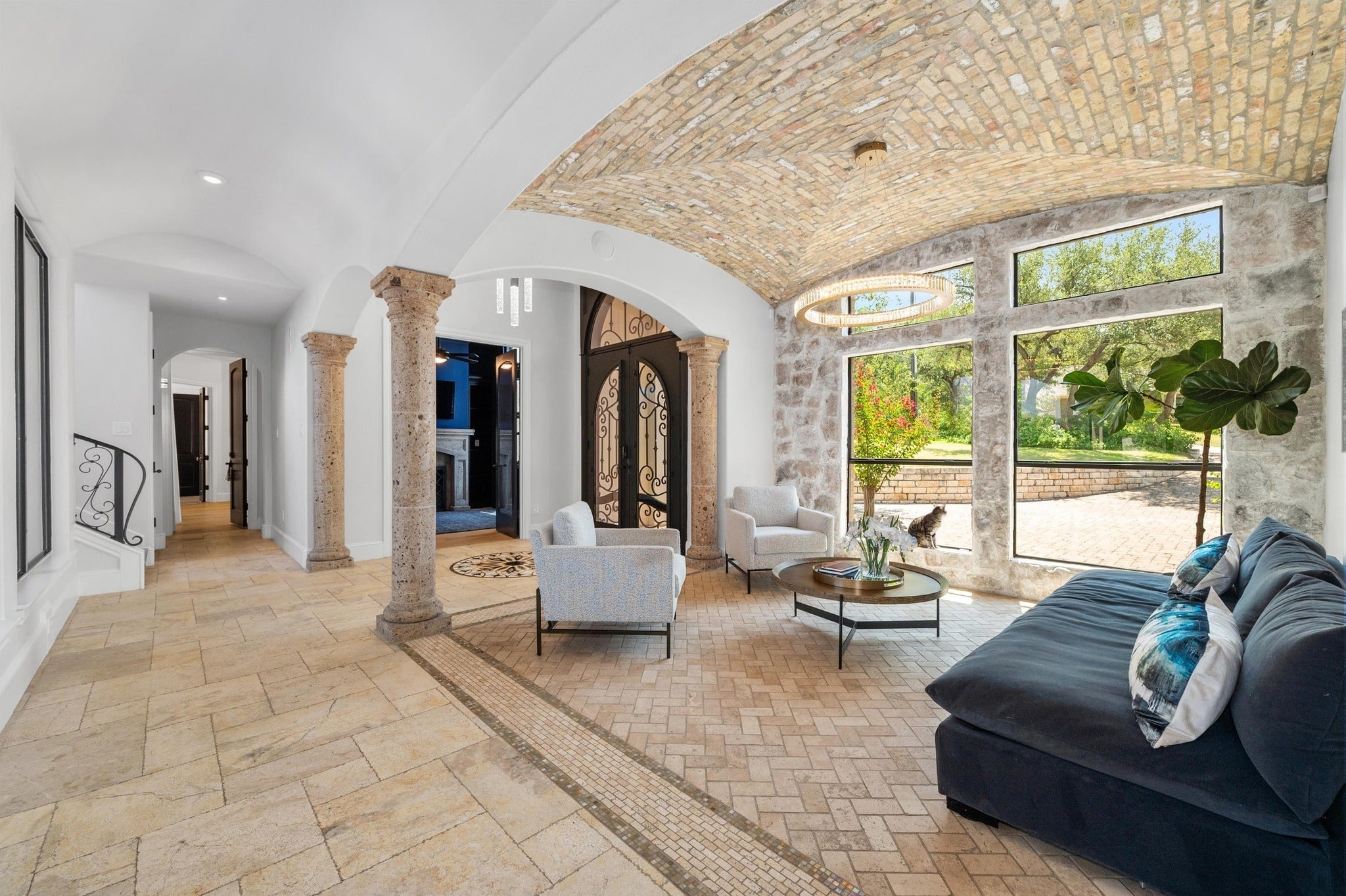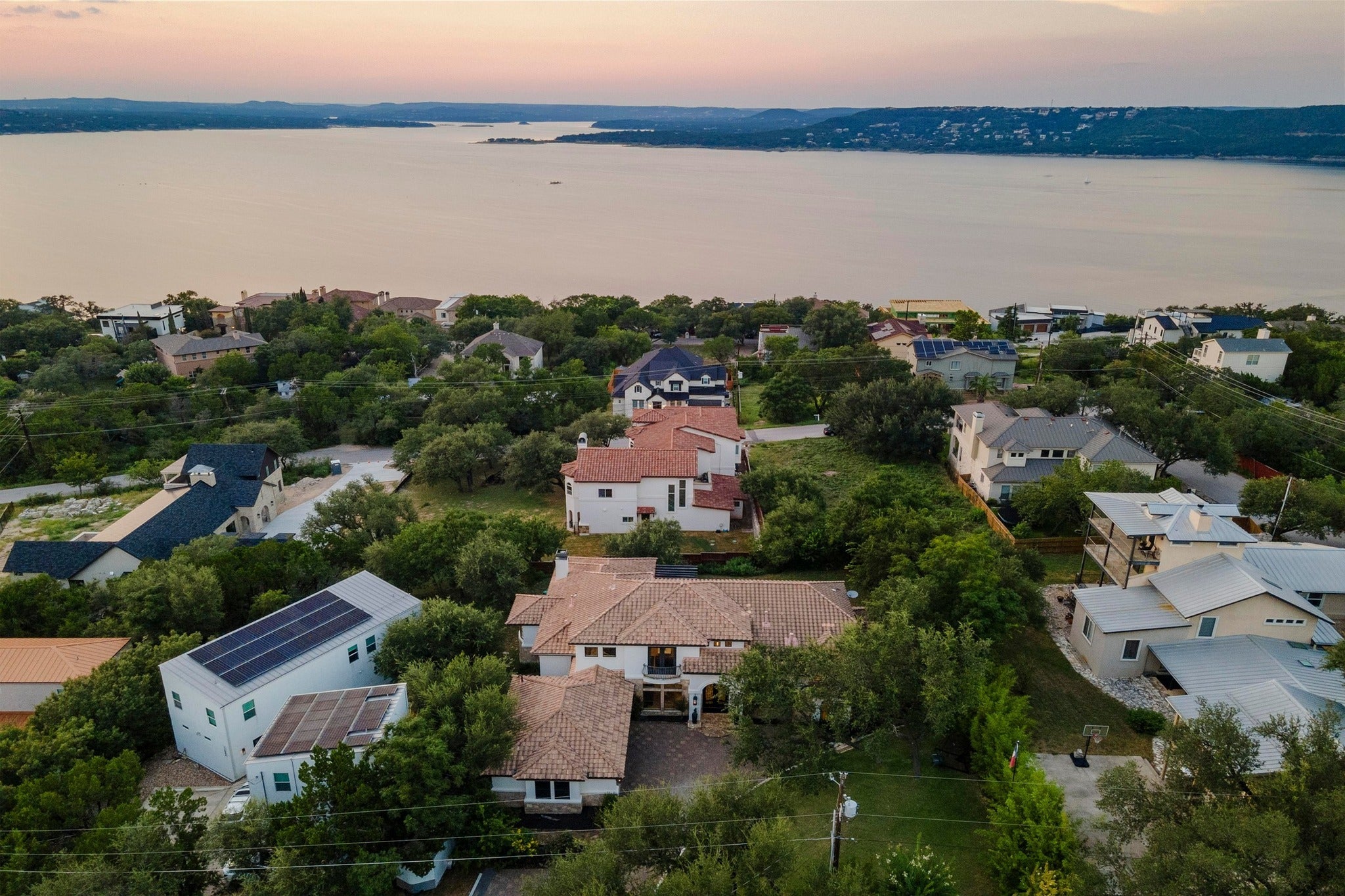 Lake Travis views surround this Mediterranean-inspired, custom built home by Aspen Builders & reimagined by current owners.Set on over 1/3 acre & ideally located just outside Steiner Ranch with no HOA & access to top-rated schools while avoiding community traffic. Just 1 mile from Marshall Ford Marina, buyers seeking “almost waterfront” living can be on the water in no time. Multiple patios/balconies create seamless indoor-outdoor living w/ sliding glass doors. Brick groin vault ceilings, wrought iron accents, & wood-beam ceilings highlight timeless craftsmanship. Chef’s kitchen features a 6-burner gas range, island w/ built-in refrigerator drawers, wine refrigerator, & updated counters/backsplash. A wood-burning fireplace anchors the living room, & the study & primary suite offer a cozy gas fireplace.The spa-inspired primary bath includes His & Hers closets, Carrara marble, a Jacuzzi tub, rain shower, & LED mirrors. Designed for both privacy & entertainment, the home includes a wine closet, coffee bars, an upstairs game room & patio where you can enjoy Lake Travis sunsets. Conveniently work from home w/ high-speed internet wiring, & built-in tech infrastructure. Custom lighting, surround sound, & integrated Niles speakers elevate daily living. The backyard is ready for your dream pool, with the site already excavated & utility connections (gas and electric) in place. Over $200K in thoughtful upgrades include fresh interior/exterior paint, white oak wood flooring, glass in 70+ windows replaced, exterior gas lamps, programmable LED lighting, kitchen & primary bath renovations, HVAC & tankless hot water heater replaced, extra parking created in front for guests, and more. This private retreat blends Hill Country serenity with easy lake access nearby & fast connectivity to both Downtown Austin & the Domain. The Oasis, Windy Point Park & Lakeway/Bee Cave are minutes away. ETJ-LTD partial means potential short term rental income if desired-buyer to verify.