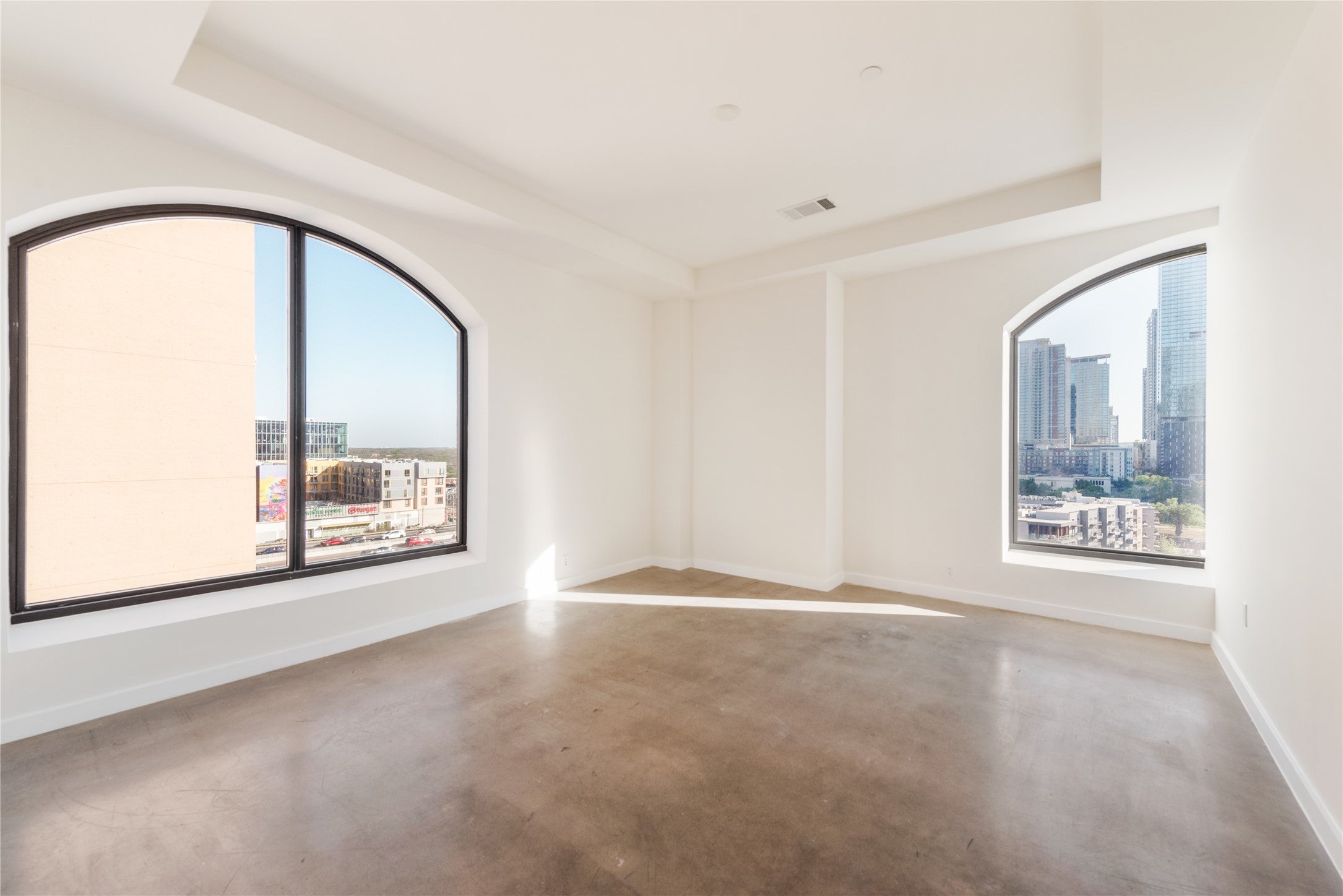 Perched on the seventh floor of 507 Sabine, this two-bedroom, two-bathroom condominium delivers the full downtown Austin experience without compromise. Oversized arched windows flood the open-concept living space with natural light throughout the day, framing sweeping city views that make every room feel connected to the energy of the urban core below. The kitchen offers — a large center island anchors the space, offering both a natural gathering point and serious prep room. The open floor plan keeps the kitchen, dining, and living areas flowing together, ideal for entertaining or simply living without walls closing in on you. Soaring high ceilings and polished concrete floors give the unit an industrial-chic character that is rare in this price range, striking the balance between warmth and architectural edge. Both bedrooms are generously sized with ample natural light, and each bathroom is finished to match the elevated feel of the rest of the home. Building amenities include full concierge service, parking garage, private building access, and fitness club tenant can opt in to. — the kind of lock-and-leave lifestyle that makes this property an exceptional choice as a primary residence, or a second home. The location speaks for itself. Steps from Lady Bird Lake, the Rainey Street entertainment district, and Austin's best dining, this is downtown Austin living at its most walkable and most alive.