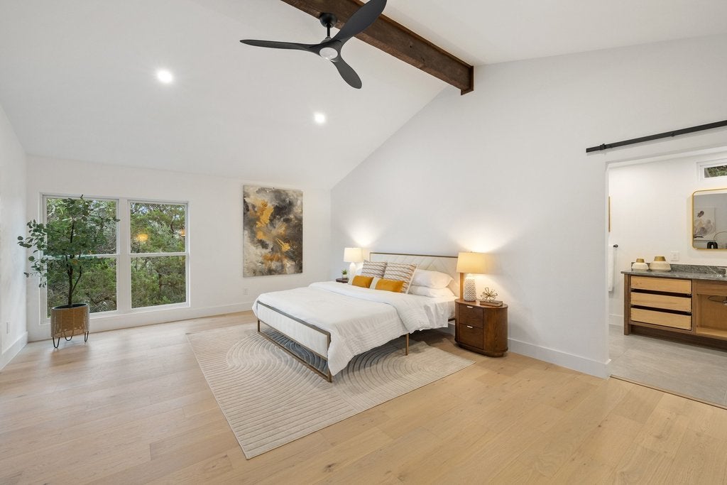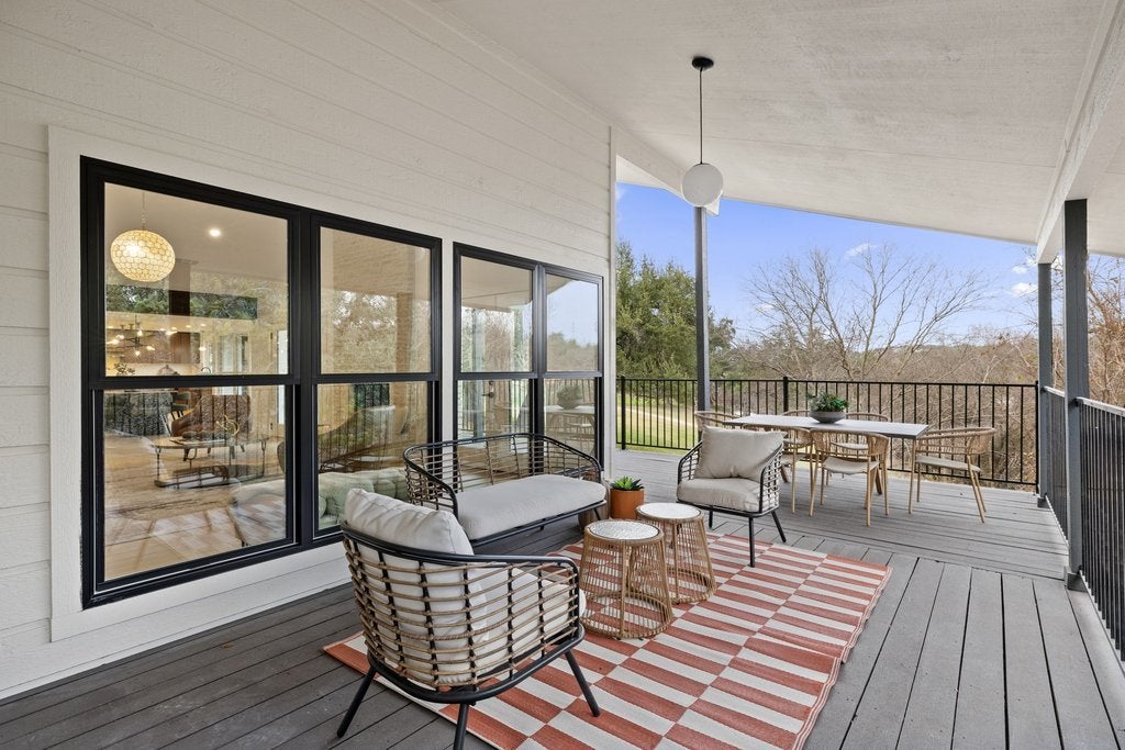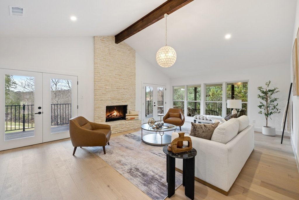 Updated throughout, this 4-bedroom, 2.5-bath home features a reworked floor plan creating an open, flowing kitchen, dining, and family area, plus an expansive deck overlooking the golf course, all set on a quiet, sought-after street in the front of Lakeway backing to the Yaupon Golf Course and zoned to acclaimed Lake Travis ISD. Extensively renovated with custom soft-close cabinetry throughout, including walnut kitchen and primary bath cabinets. Remodeled kitchen with all new appliances and designer lighting inside and out. Renovated primary suite with dual vanities, expanded rain-head shower, and custom closet systems. New engineered hardwood flooring upstairs. Upgraded Andersen windows and all exterior doors. New 30-year architectural shingle roof and gutters. Fully re-insulated attic with upgraded attic stairs. New AC units, water heater, and updated electrical outlets. Exterior improvements include updated back deck with iron railings, stone walkway, and refreshed landscaping. Fully renovated guest and powder baths with abundant storage. Garage features new insulated WiFi-enabled doors plus room for a golf cart with its own exit door to the golf course.