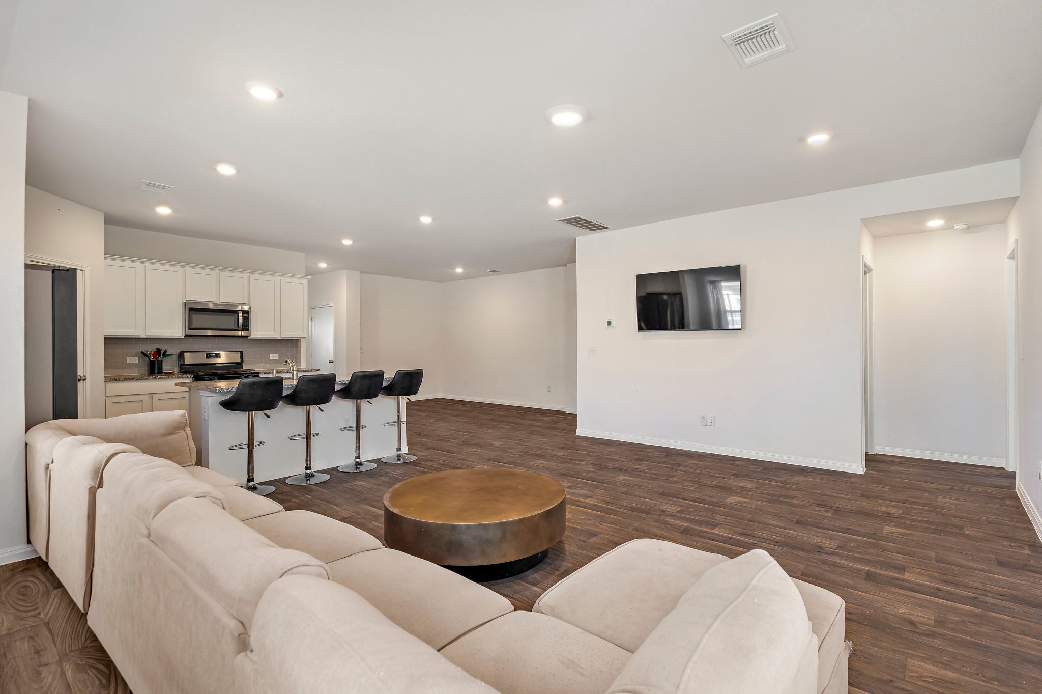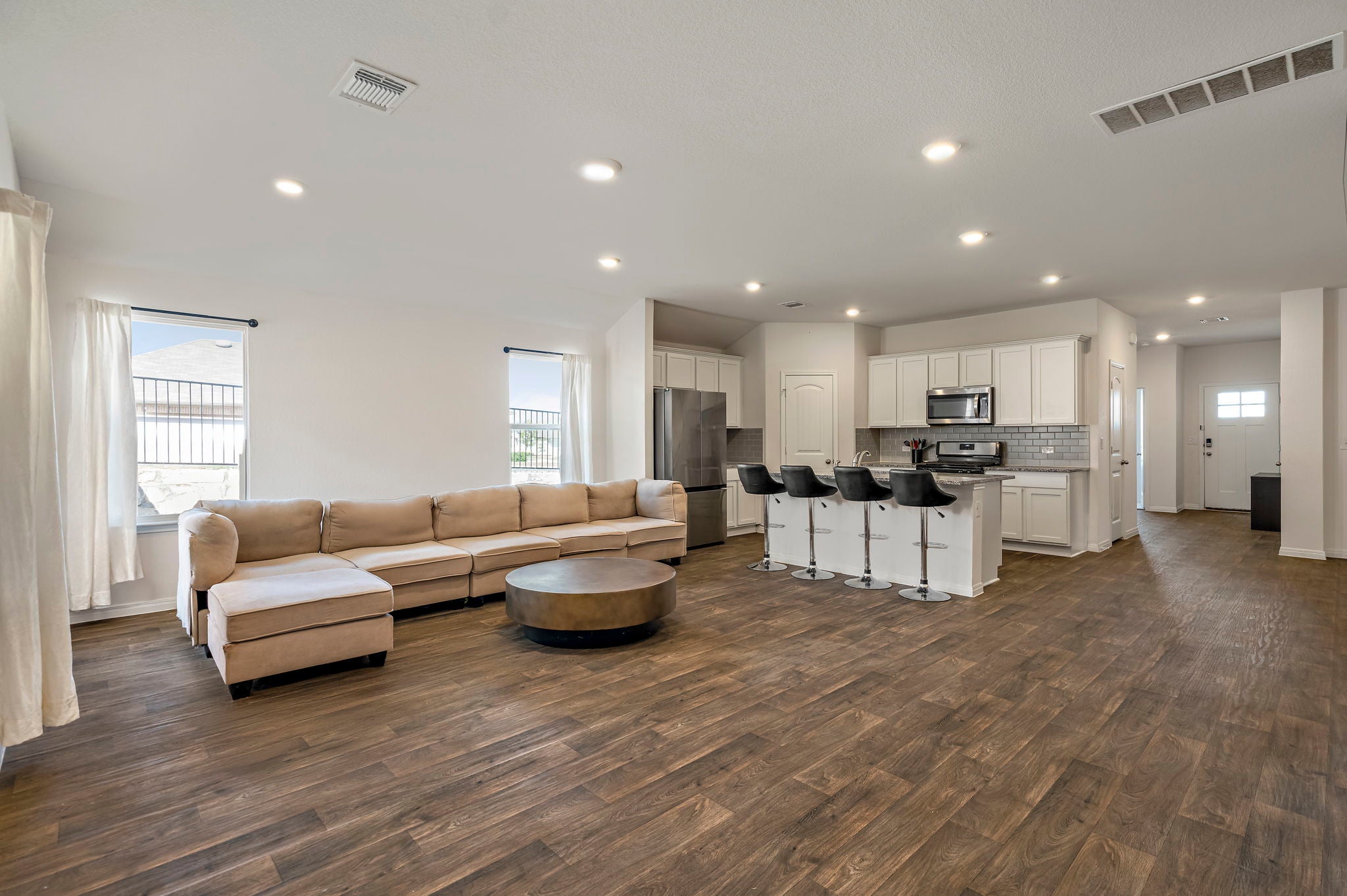 Welcome to 19601 Abigail Fillmore Rd, Manor, TX 78653 — a modern 4-bedroom, 3-bath home designed for comfortable everyday living. The open floor plan centers around a generous kitchen with stainless appliances, a center island, and easy flow into the living and dining areas. Primary and secondary bathrooms include a double vanity and a walk-in shower for added convenience. Additional features include in-home washer/dryer connections and central heating and cooling for year-round comfort. This layout offers practical spaces and contemporary finishes throughout.