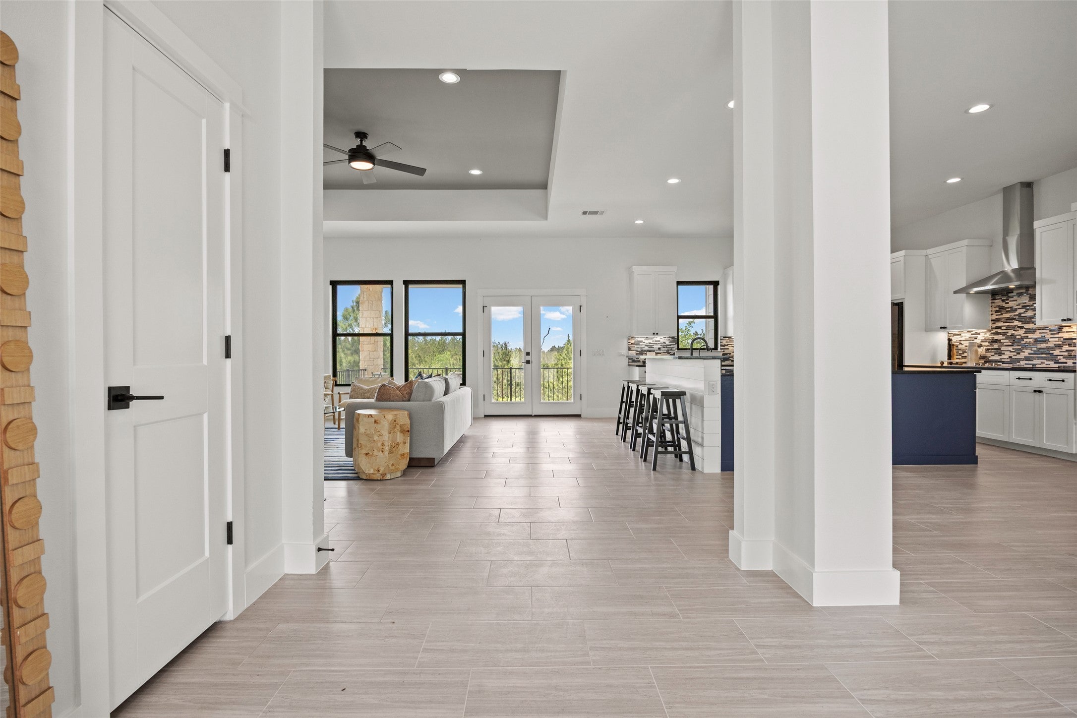 Custom-built home on 1.84 acres with space, modern construction, and a move-in ready layout that still feels like new. Situated in an established Bastrop community, this 2022-built property offers a rare combination of space, condition, and convenient access to Bastrop amenities and Highway 71 for travel toward Austin. The setting features a natural, tree-lined backdrop with pine trees extending into the valley behind the home, creating a sense of openness without sacrificing accessibility. Inside, the layout is designed to live well, with multiple living areas, high ceilings, and large windows that bring in natural light throughout the day. The living room features a wood-burning fireplace, creating a central gathering space. The kitchen includes two center islands, black stainless steel appliances, and ample storage to support both daily use and entertaining. The primary suite is located on the main level and includes a freestanding tub, walk-in shower, and organized closet, while secondary bedrooms are well-sized and an upstairs loft provides additional flexible living space. The home is wired with CAT6 ethernet throughout, supporting modern connectivity needs. Additional features include electric remote-controlled shades, including blackout options in the bedrooms, a whole-house water softener system, and completed landscaping with added sod and a full automatic sprinkler system covering the front, side, and backyard. The covered back porch provides a functional outdoor space overlooking the pine tree forest in the valley behind the property, and the oversized three-car garage with double doors offers flexibility for vehicles, storage, or workspace. Lightly lived in and well maintained, this home presents a move-in ready opportunity without the timeline of new construction. Pre-inspection complete for added piece of mind.