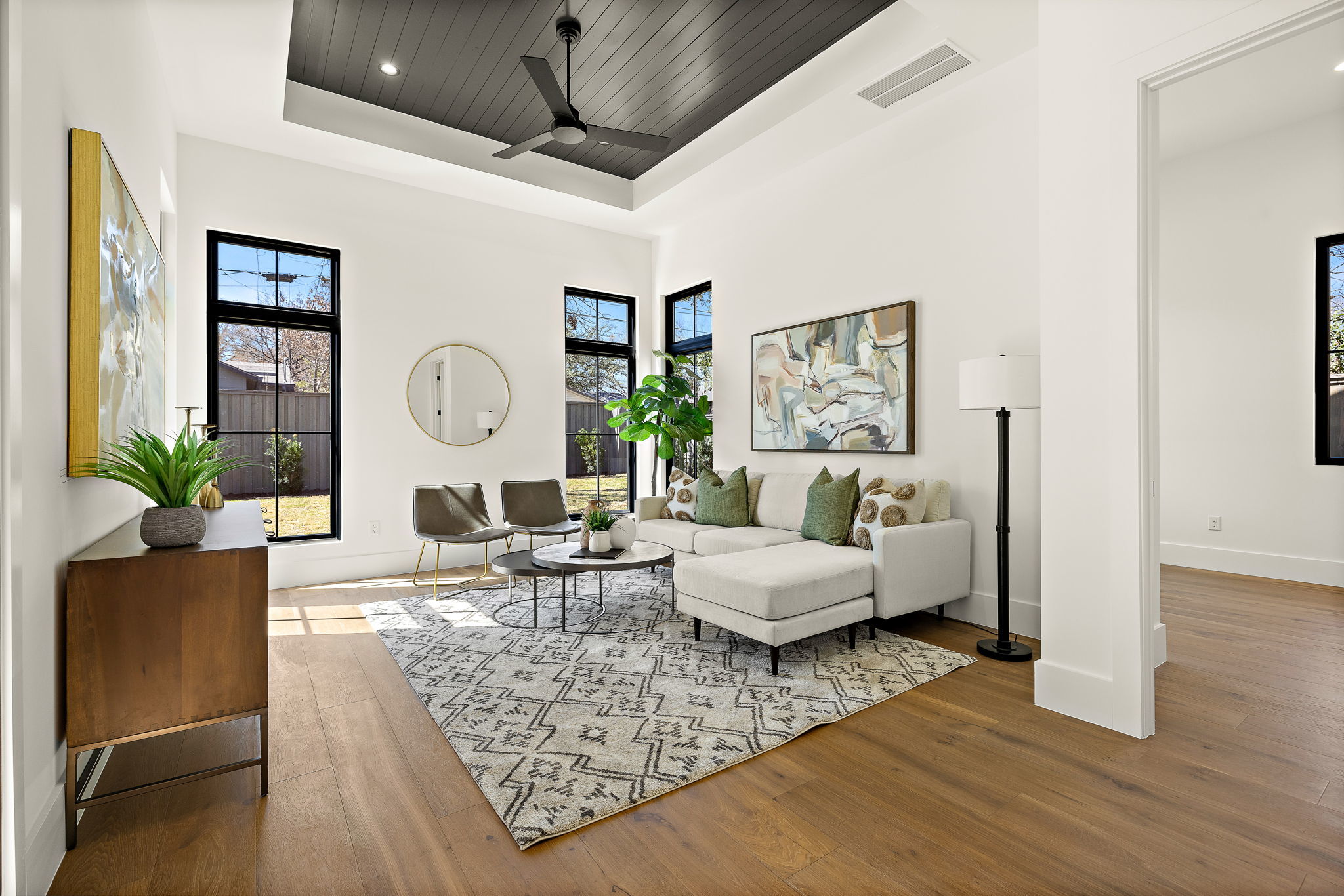 New to market in sought-after 78757, 5906 Rickey presents a rare blend of scale, craftsmanship, and resort-style outdoor living in the heart of Austin. Offering 4,475 square feet, this 5-bedroom, 5.5-bath residence is designed for those who appreciate elevated build quality—where enduring materials, thoughtful proportions, and refined detailing create a home that feels both substantial and serene. Inside, rich wood ceilings and dramatic beams set a warm, architectural tone, framing generous living and dining spaces made for effortless hosting. Each bedroom is appointed with privacy in mind, while the abundance of baths delivers a true suite-like experience for family and guests alike. A spacious 3-car garage adds everyday ease, with room for storage, gear, and weekend toys. Step outdoors and discover the property’s signature advantage: a setting tailored for open-air entertaining and quiet mornings alike. Whether you’re gathering under the sky with friends, savoring a glass of wine at dusk, or simply enjoying the freedom of a large, livable yard, the outdoor space extends the home’s luxury far beyond its walls. Perfectly positioned near the best of Central Austin—dining, shopping, and cultural favorites—this is a timeless opportunity to own a statement home with room to grow and space to breathe. This brand new construction offers first in class finishes designed by SLIC Interiors including white oak wood floors, designer tile, quartz countertops, brass plumbing fixtures, custom cabinetry, and smooth wall drywall. The construction quality is unparalleled backed with a 1-2-10 warranty and tankless water heaters, spray foam insulation, high end windows, and much more.