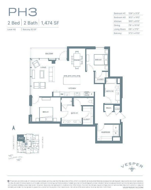 End-of-year pricing available for contracts executed through December 31. Vesper is a luxury condominium community in downtown Austin, offering design-forward residences with high-end finishes and exceptional amenities. Located steps from Rainey Street and Lady Bird Lake, the condos at Vesper provide direct access to Austin’s top dining, nightlife, and outdoor spaces. Penthouse 4001 features northwestern-facing views overlooking Lady Bird Lake and Congress & Lamar bridges. This two-bedroom, two-bath residence offers 1,474 interior square feet, complemented by an expansive private balcony ideal for entertaining and sunset views. Designed in the Desert Calm finish palette, the home includes floor-to-ceiling windows, soaring ceilings, and an open-concept layout that captures abundant natural light. The kitchen features Italian cabinetry, terrazzo quartz countertops, and Bosch appliances, while spa-inspired bathrooms offer frameless glass showers and designer fixtures. Residents enjoy 24-hour concierge service, a rooftop lounge, resort-style pool, state-of-the-art fitness center, and private co-working spaces. Vesper’s prime downtown location ensures convenience, whether you’re exploring Rainey Street, enjoying Lady Bird Lake trails, or taking in panoramic city views from your own penthouse retreat. Contact us today for pricing and availability or to schedule a private tour.