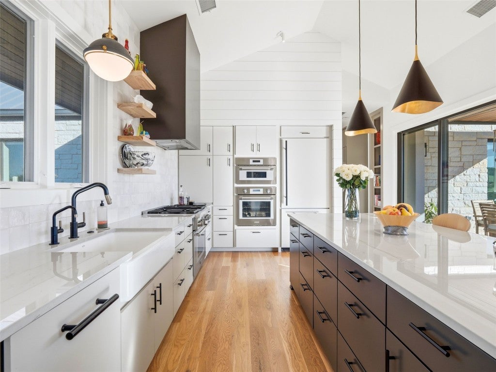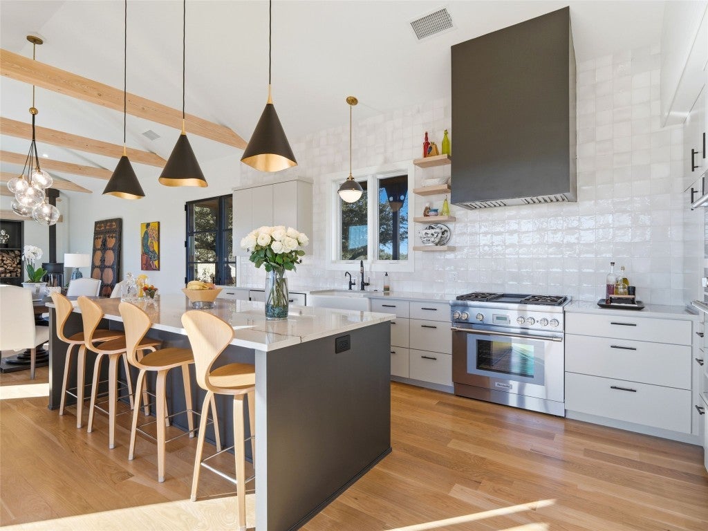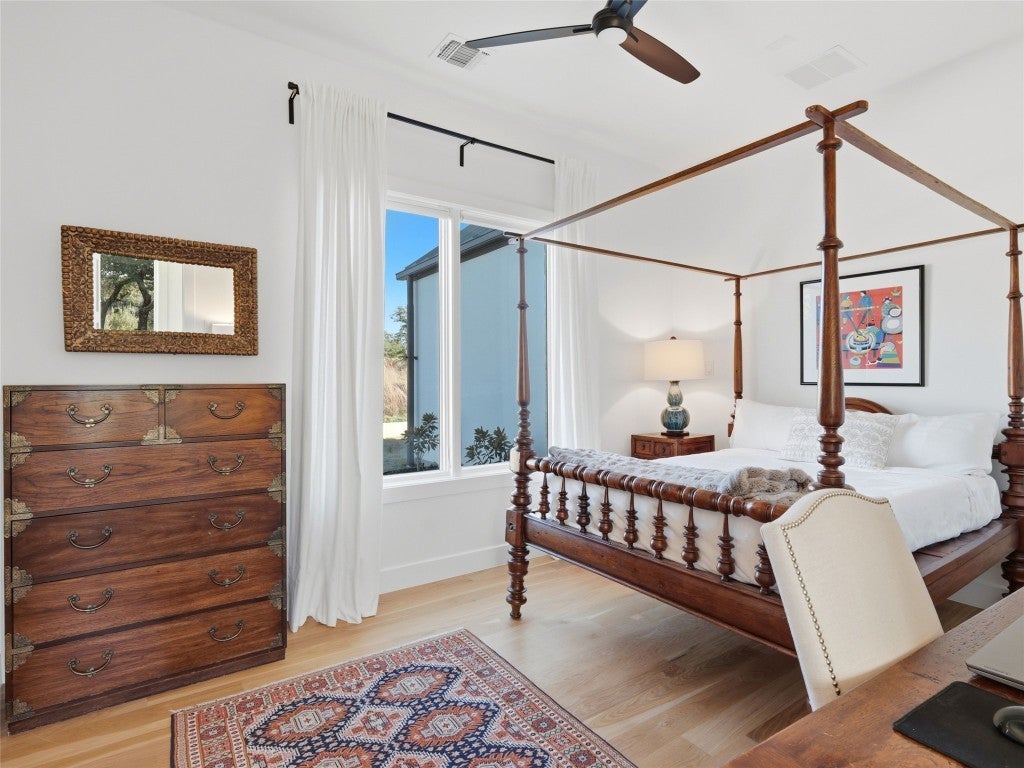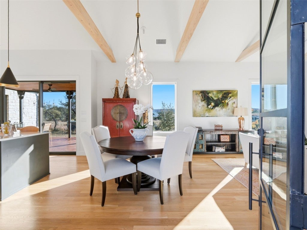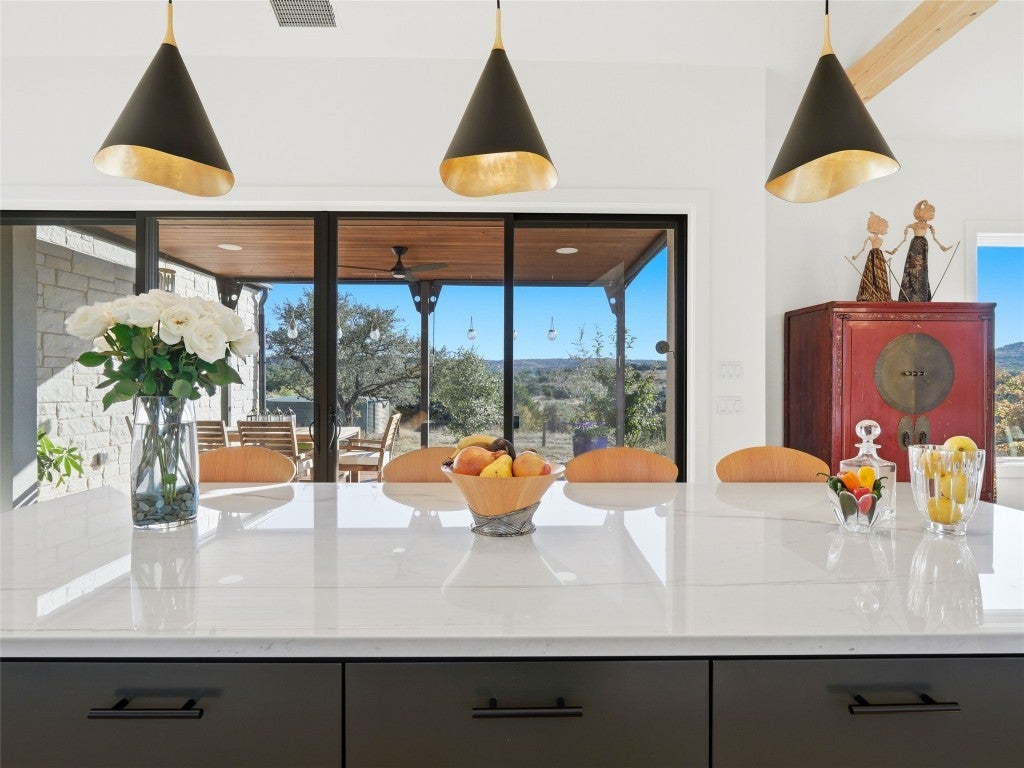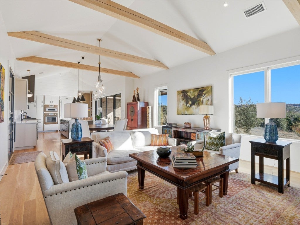 Designed by renowned architect Tim Brown, this exceptional residence blends timeless elegance with purposeful design. Every square foot has been masterfully used to create a home that lives both luxuriously and efficiently. Nestled on 6.82 acres within a refined equestrian community, this property is ideal for those who embrace an active, outdoor lifestyle. This custom home sits atop a scenic ridge with tranquil views of the neighboring pond and the rolling Texas Hill Country landscape. Morning coffee tastes better here, sunsets linger longer, and the stars feel close enough to touch. Life in The Preserve at Walnut Springs is simply extraordinary. Once President LBJ's private hunting ranch, this exclusive community features only 66 estate homesites - each with its own dedicated and protected green space for unmatched privacy. Residents enjoy 1500 acres of dedicated green space along with horse stables, a riding arena, 22 miles of scenic trails, two resort style swimming pools, clubhouse, and even a dedicated seasonal hunting area - all surrounded by sweeping, natural beauty. Best of all, homeowners enjoy a wildlife exemption along with longhorn cattle roaming the ranch for a true Texas experience - where recreation and conservation are balanced. This is more than a home. This is a lifestyle: quiet, elevated, and deeply connected to the land.