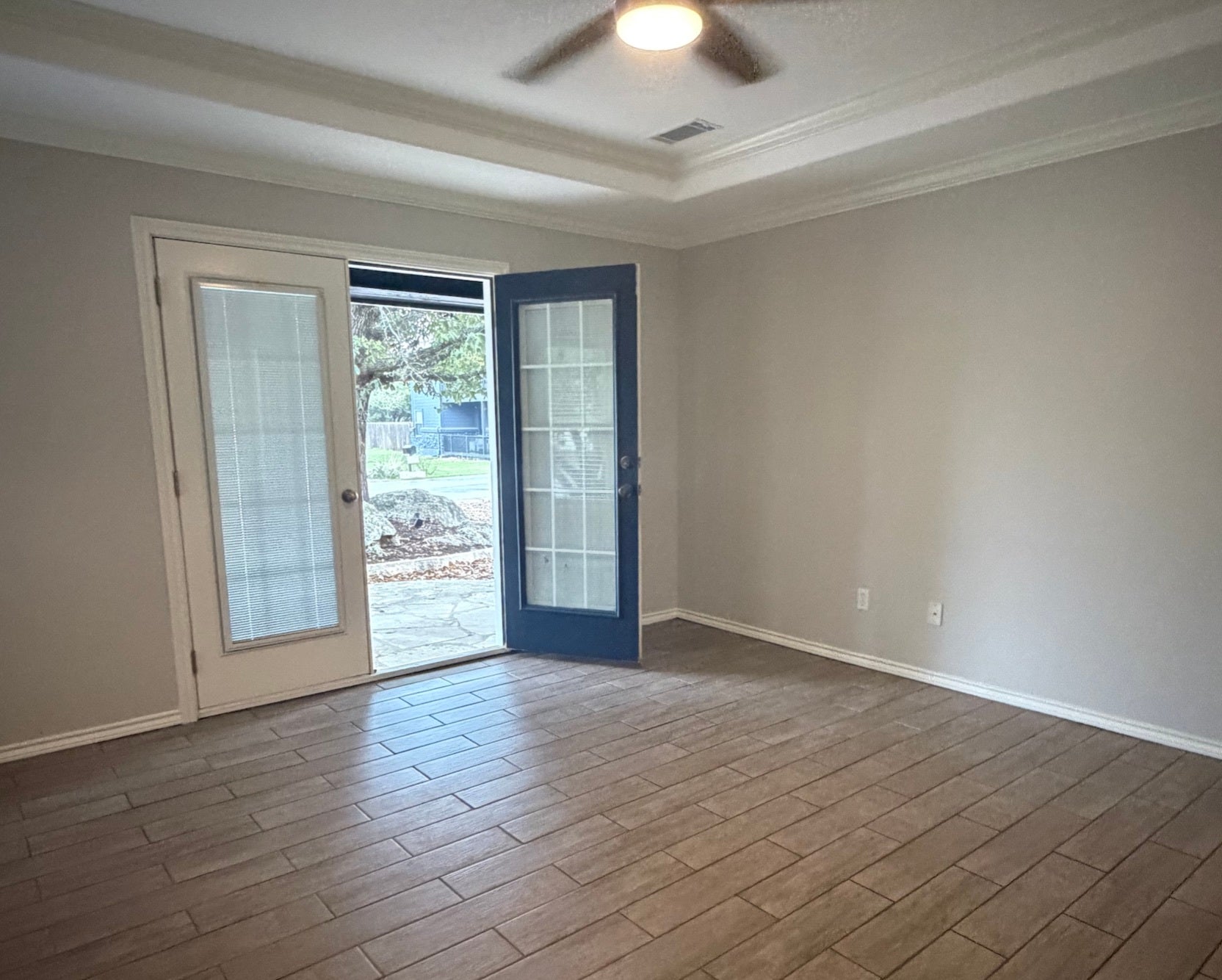 Tucked against peaceful green space, this Point Venture lease offers rare privacy and shaded Hill Country charm. This 3-bedroom, 2-bath home features a very private backyard that backs to open space, creating a quiet retreat to relax or entertain. The welcoming front porch sits beneath mature oak trees, providing the perfect shaded spot for morning coffee or evening unwinding. Located in the lakeside community of Point Venture, residents enjoy outstanding amenities including a Lake Travis waterfront park, golf course, disc golf course, community pool, and fitness center. With scenic surroundings and resort-style amenities just minutes away, this home offers the best of Lake Travis living in a peaceful setting.