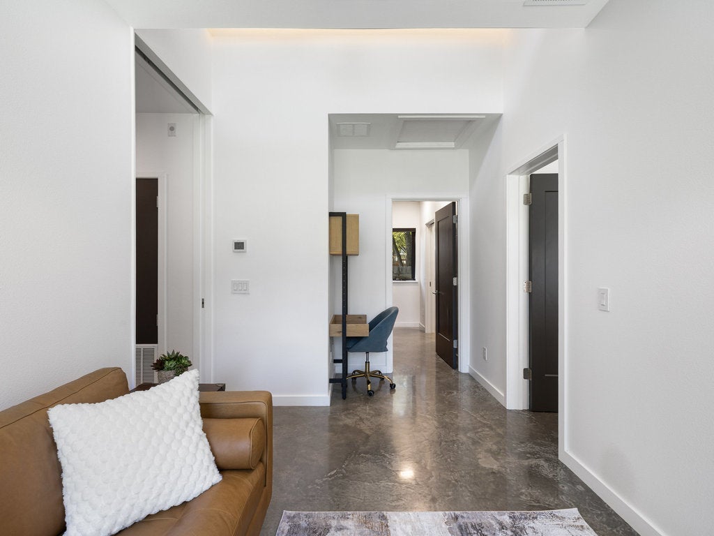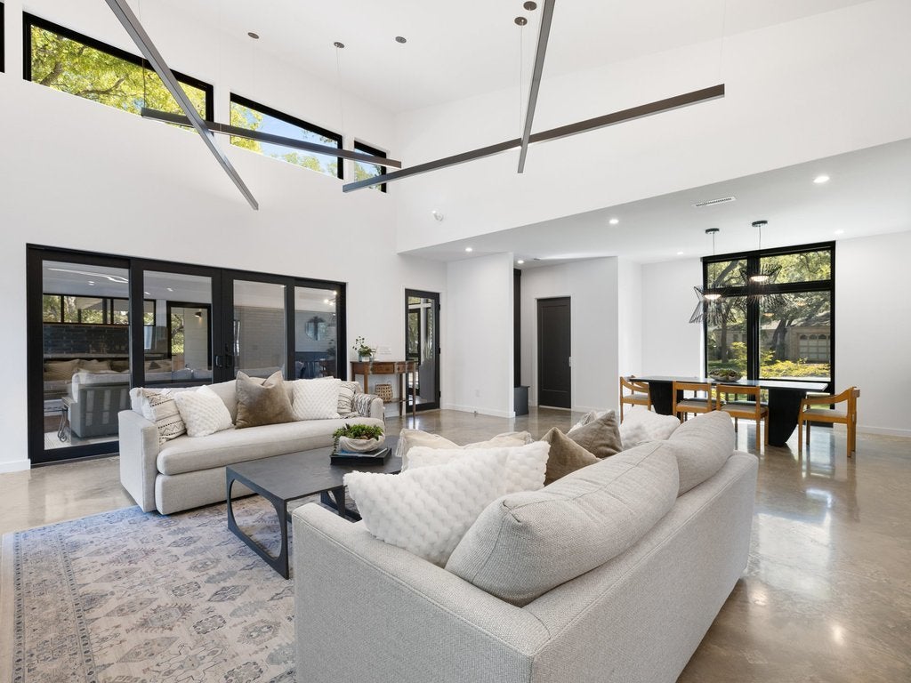 In the heart of Austin’s beloved Barton Hills, a timeless new home stands beneath a canopy of oaks — a statement of architectural grace and modern sophistication. Designed by Barley Pfeiffer Architects, this residence celebrates the clean lines and organic warmth of mid-century modern design, perfectly balanced with today’s luxury finishes and sustainable sensibilities. Inside, over 2,600 square feet unfold in light and space — soaring ceilings, polished concrete floors, and walls of glass framing the natural landscape. The open living area invites connection, while the chef’s kitchen, finished with bespoke cabinetry, quartz countertops, and top-of-the-line appliances, inspires culinary creativity and entertaining on any scale. Step beyond glass doors to the 440 sq ft screened-in porch — a tranquil retreat complete with a fireplace, where mornings begin with birdsong and evenings wind down beneath the stars. The secondary dwelling, thoughtfully designed at 1,100+ square feet, extends the home’s versatility — perfect for guests, private offices, or income-producing opportunities. Together, the two dwellings sit on an oversized lot, leaving room for a pool, garden, or future expansion. Set within one of Austin’s most coveted neighborhoods, Barton Hills offers unmatched access to the Barton Creek Greenbelt, Zilker Park, and Barton Springs Pool. Just minutes from South Lamar’s vibrant restaurants and the cultural heartbeat of downtown, the location harmonizes serenity with connectivity. 1600 Barton Hills Drive is not just a home — it’s a modern sanctuary that captures the essence of Austin living: architectural artistry, effortless comfort, and a seamless dialogue with nature.
