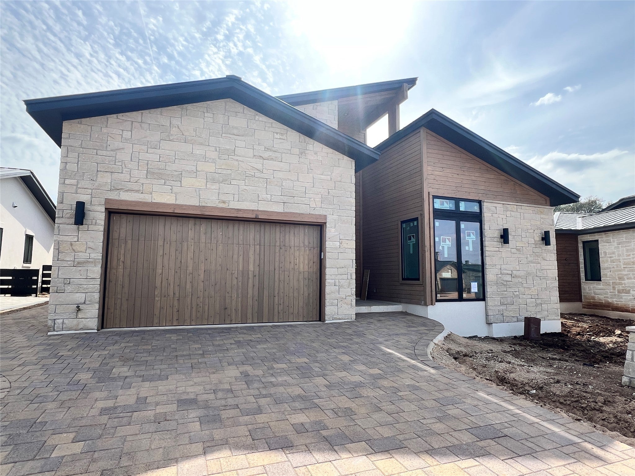 Welcome to refined Hill Country living in the prestigious Golden Bear gated enclave of Summit Rock. This contemporary single-story home blends sophisticated design with effortless comfort, ideal for both everyday living and elegant entertaining. Soaring ceilings and expansive windows enhance the open-concept living space, anchored by a chef’s kitchen featuring an oversized island, butler’s pantry/prep area, and a dedicated bar. Sliding glass doors extend the living area to a covered patio with a built-in outdoor kitchen — perfect for enjoying this premier golf course community. The primary ensuite offers a spa-inspired bath with soaking tub, walk-in shower, dual vanities, and a walk in closet. Two guest bedrooms include ensuite baths for comfort and privacy. Additional features include a two-car garage and side golf cart garage. As an added bonus, a developer paid Summit Level initiation waiver for The Club and Horseshoe Bay upon membership approval and a $15,000 Discretionary Package is included. Estimated completion April 2026.
