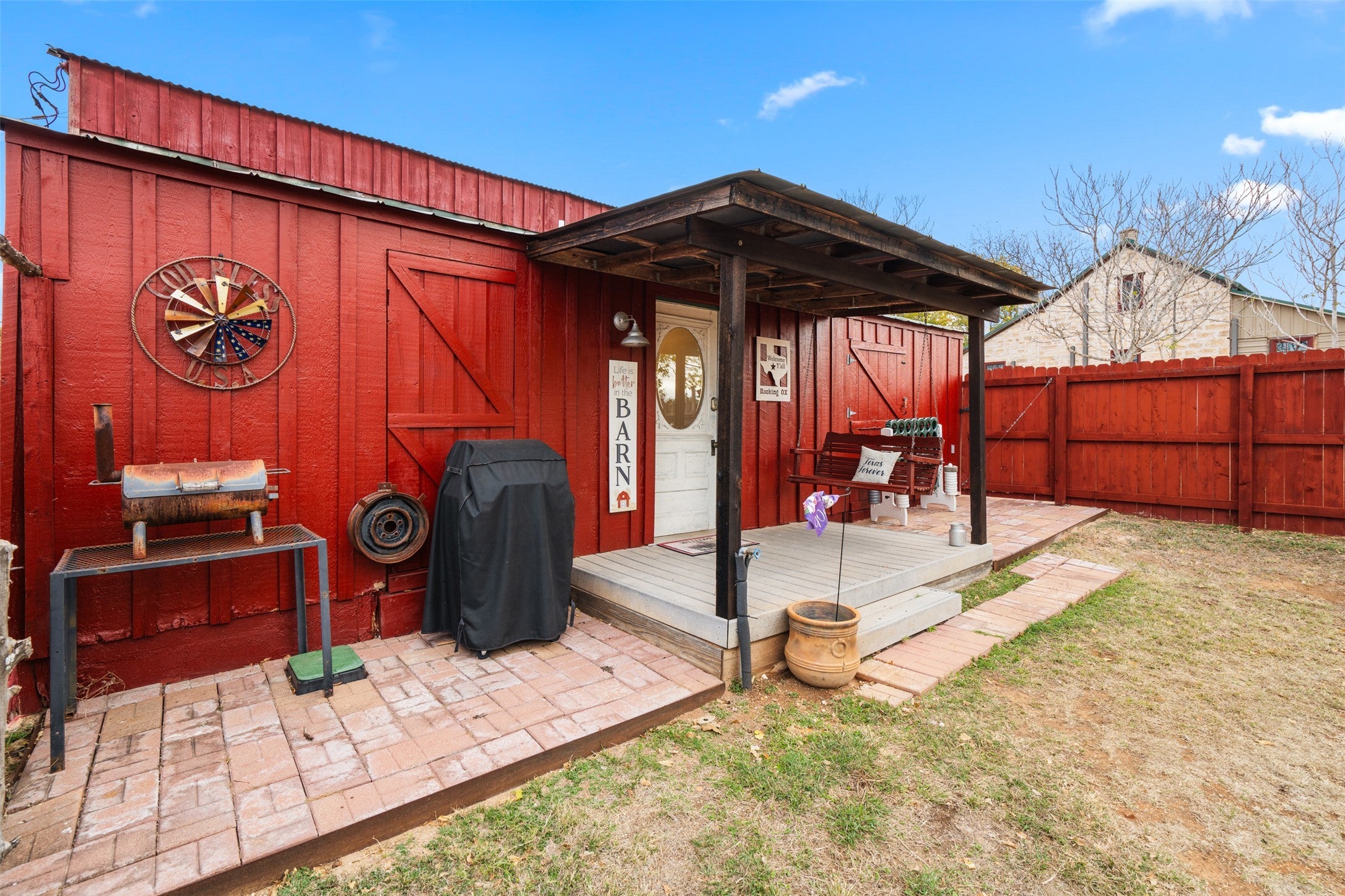 - Exterior Steps, Fire Pit, Gas Grill, Private Entrance, Rain Gutters