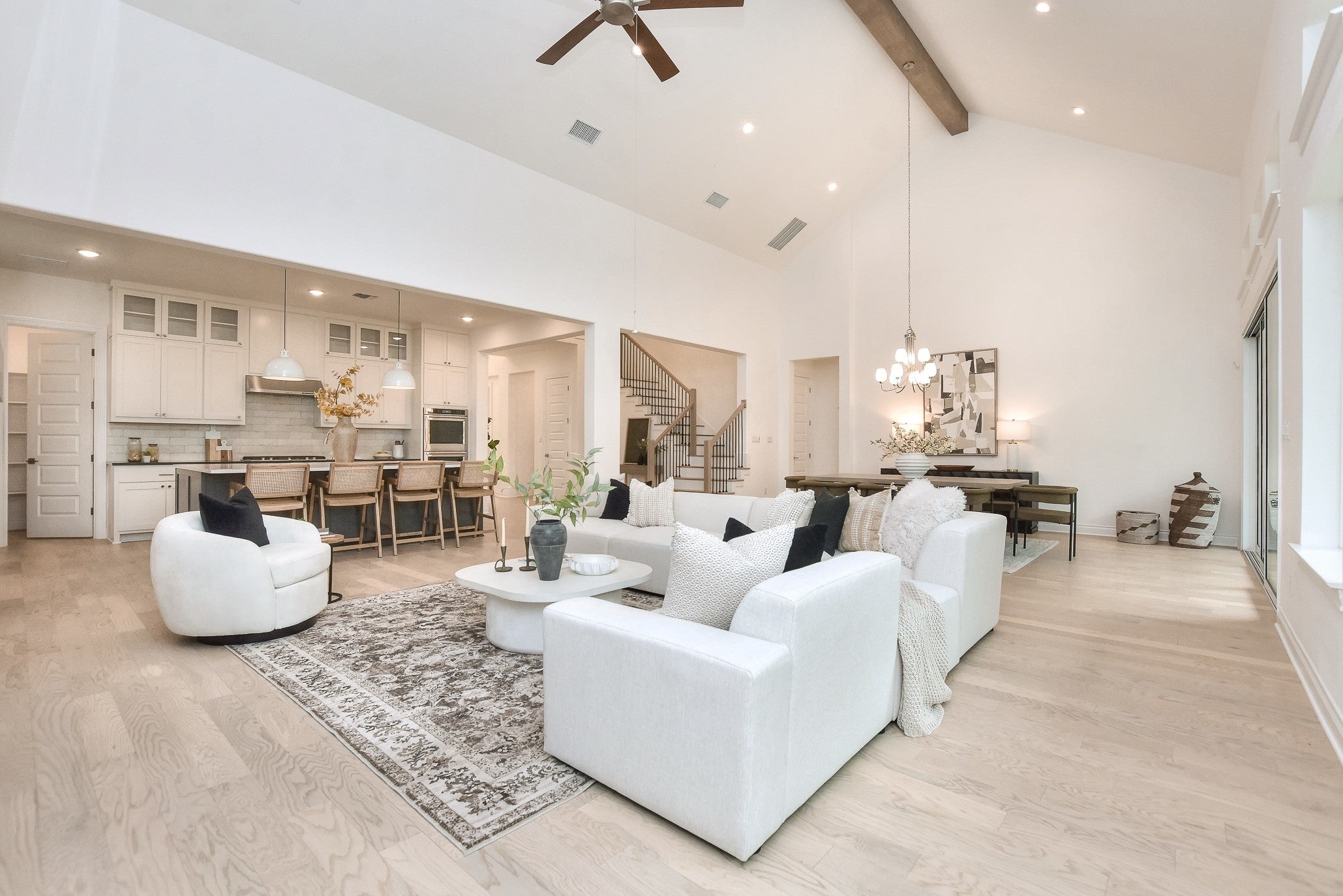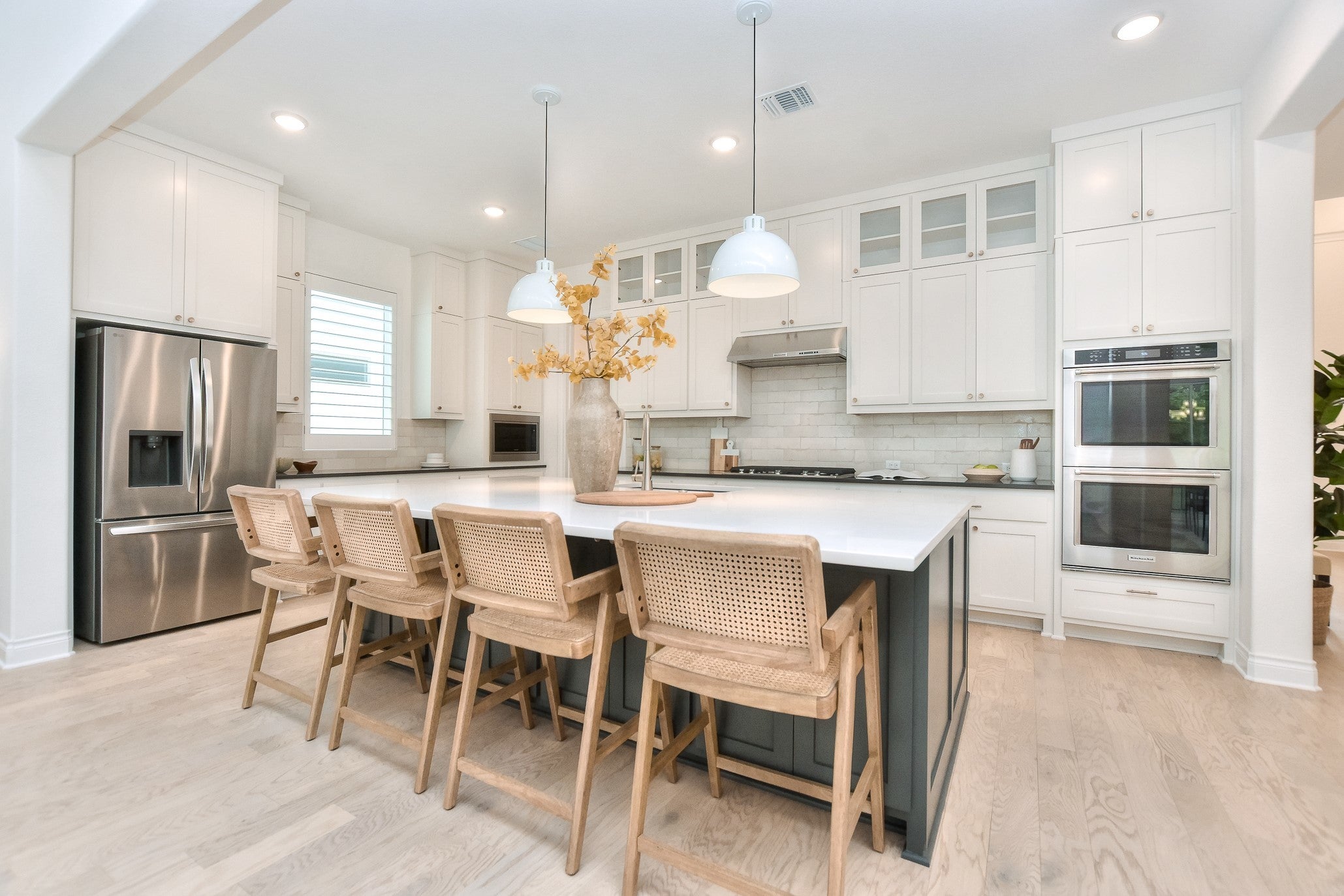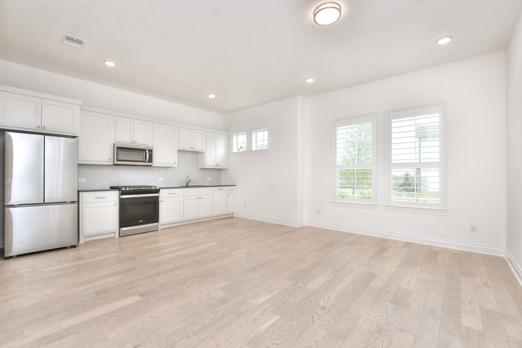 - Dishwasher, Disposal, Microwave, Vented Exhaust Fan, Built-In Gas Oven, Built-In Gas Range, Double Oven, Gas Cooktop