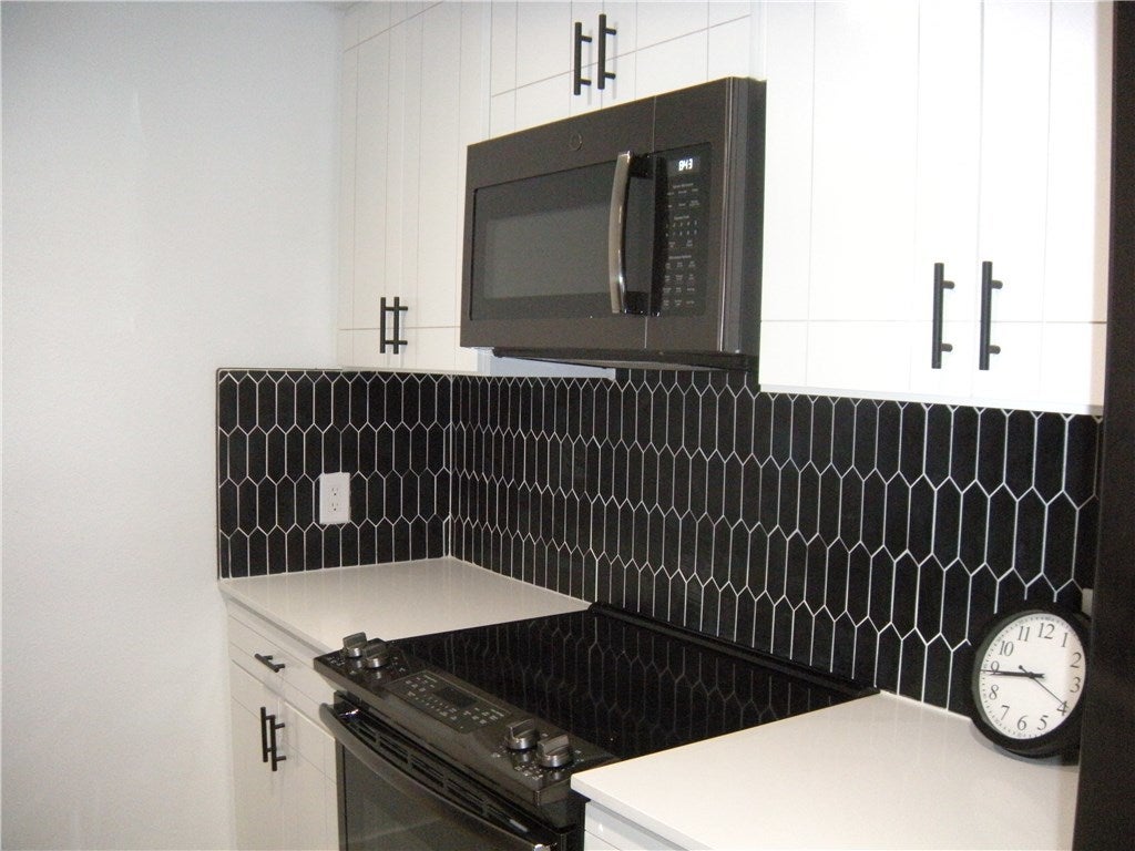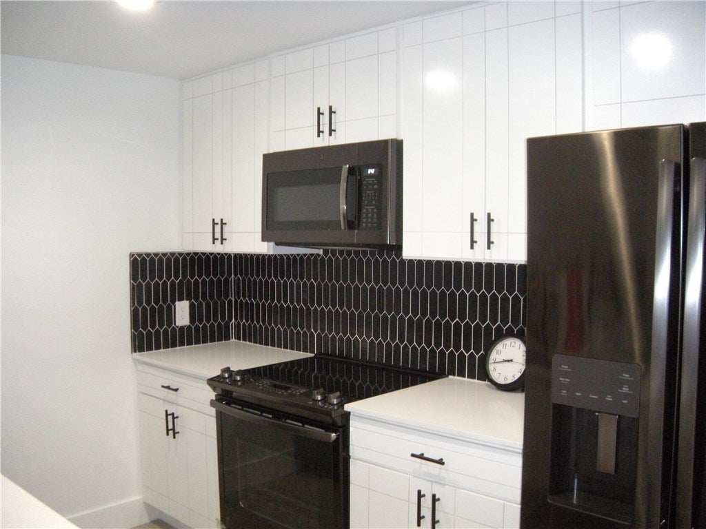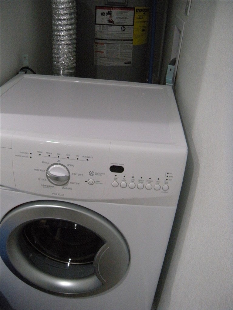 - Washer/Dryer Stacked, Dishwasher, ENERGY STAR Qualified Appliances, Free-Standing Range, Disposal, Microwave, Refrigerator, Self Cleaning Oven, Stainless Steel Appliance(s)