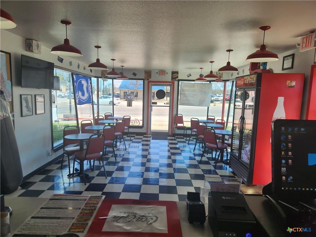 Did you know that three major US highways flow through Lampasas? (known as Key Avenue) There's always something going on in Lampasas! Take a look at this ready-to-go restaurant space! Between the bustling Mojos and Donut Palace! No drive-through, but the success of this current tenant didn't require a drive-through! Car hops are used next door at MoJo's, and that works for them. The interior allows for plenty of indoor seating, and outdoor seating could be established as well. Excellent BUSY Highway frontage and sidewalk traffic too. ADA restroom and additional rooms for storage. What's your dream!? Come take a look