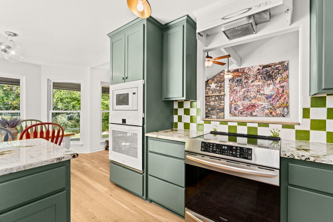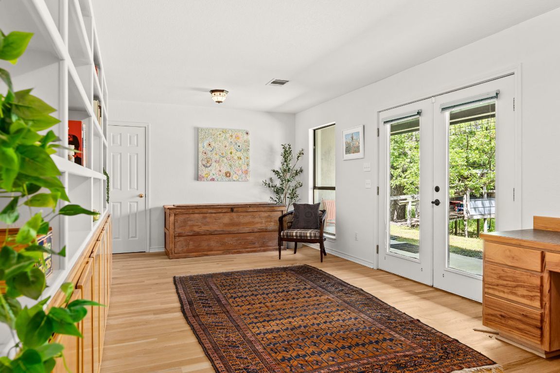 Experience a rare Texas Hill Country treasure, an artist’s oasis on 24+ UNRESTRICTED acres with live water at 800 Spur 191, tucked away in the heart of Spicewood. Enter through a private gate and follow a secluded, winding drive shaded by stately pecan trees to a lush, gently rolling landscape. Two all-weather creeks meander through the property, flowing toward nearby Krause Springs, while a fertile, irrigated fruit orchard brims with peaches, pears, apples, and figs. Cross over Little Cypress Creek on your way to the recently updated main residence, and take in the serene setting that feels worlds away—yet is just minutes from town. With a WILDLIFE tax exemption, cross-fenced pastures, and a livestock run-in shed, the property is perfectly suited for cattle, horses, or other agricultural pursuits. Three separately irrigated fields and orchards provide water throughout for livestock and farming. Additional improvements include a detached two-car garage with an attached lean-to for equipment storage, plus a separate structure designed for a chicken coop and dog kennel/run. The main home—nestled at the end of the drive beside a peaceful wet-weather pond—offers 2,699 sq. ft., 4 bedrooms, and 3 baths. Inside, upgrades shine with white oak flooring throughout, granite countertops, designer lighting, and an authentic wood stove fireplace. Nearby guest quarters provide flexible space for a studio, home office, or fitness room. This ranch-style retreat blends Hill Country tranquility with modern comfort, offering endless possibilities—private residence, hobby farm, creative retreat, or more. Boasting nearly a quarter mile of Spur 191 frontage that offers prime commercial potential, the property is ideally positioned just 45 minutes to Austin, 20 minutes to Bee Cave, and 10 minutes to Marble Falls. Here, you’ll find the perfect balance of privacy, convenience, and inspiration.