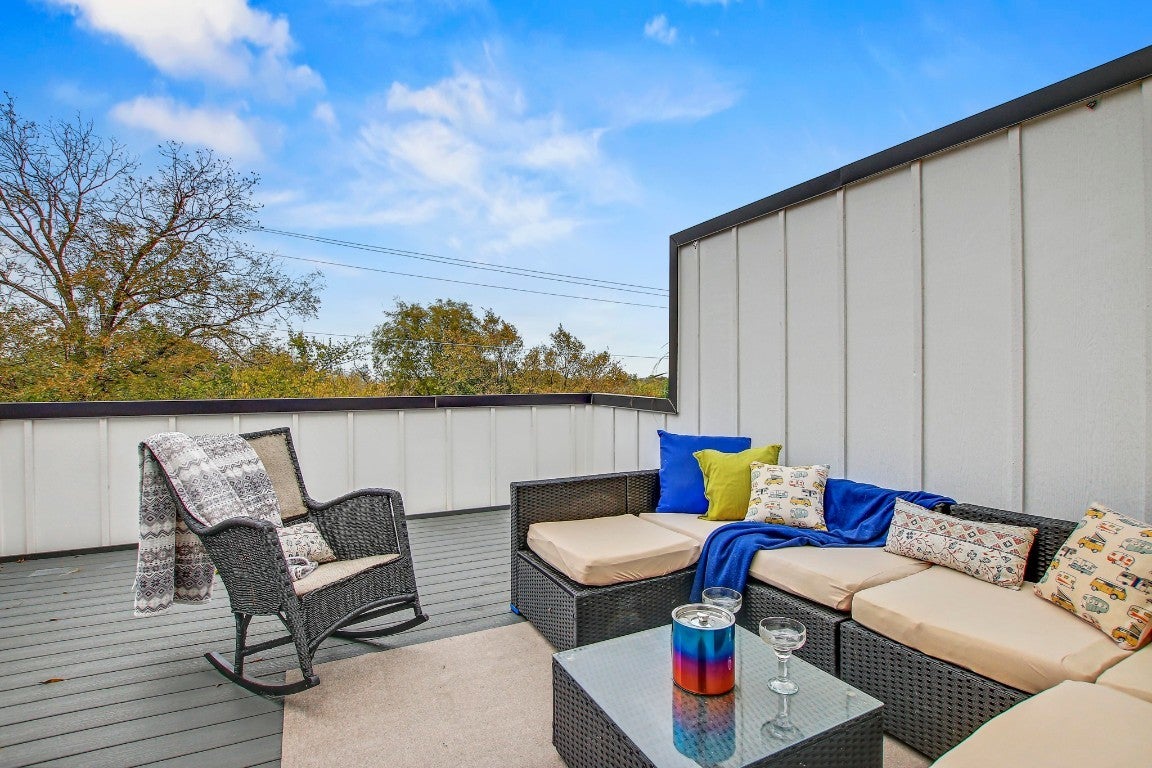 Located in the desirable Guild Lofts Condominiums, this South Austin retreat blends modern design with effortless urban living just one mile from iconic South Congress. Natural light pours through this three-story, 2-bedroom, 2-bath condo, highlighting its soaring ceilings and airy, gallery-like ambiance. The open-concept main level (2nd floor)showcases a chef’s kitchen with a gas range, vented hood, and an ideal layout for entertaining. The first floor offers a flexible bedroom or office with an en-suite bath, while the third-floor primary suite features a sleek, contemporary bathroom and a private rooftop deck with partial downtown views. Additional perks include one covered carport parking space with two exterior storage closets, generous guest parking, and a community dog park. Perfectly positioned to enjoy Austin’s most vibrant destinations, the home is walkable to High Brew Coffee, Show Me Pizza, and Toss Pizzeria, with quick access to South Congress, Zilker Park, Downtown Austin, and major highways. Just minutes from the new H-E-B on Oltorf and South Congress, this condo offers unbeatable convenience in one of the city’s most dynamic neighborhoods.