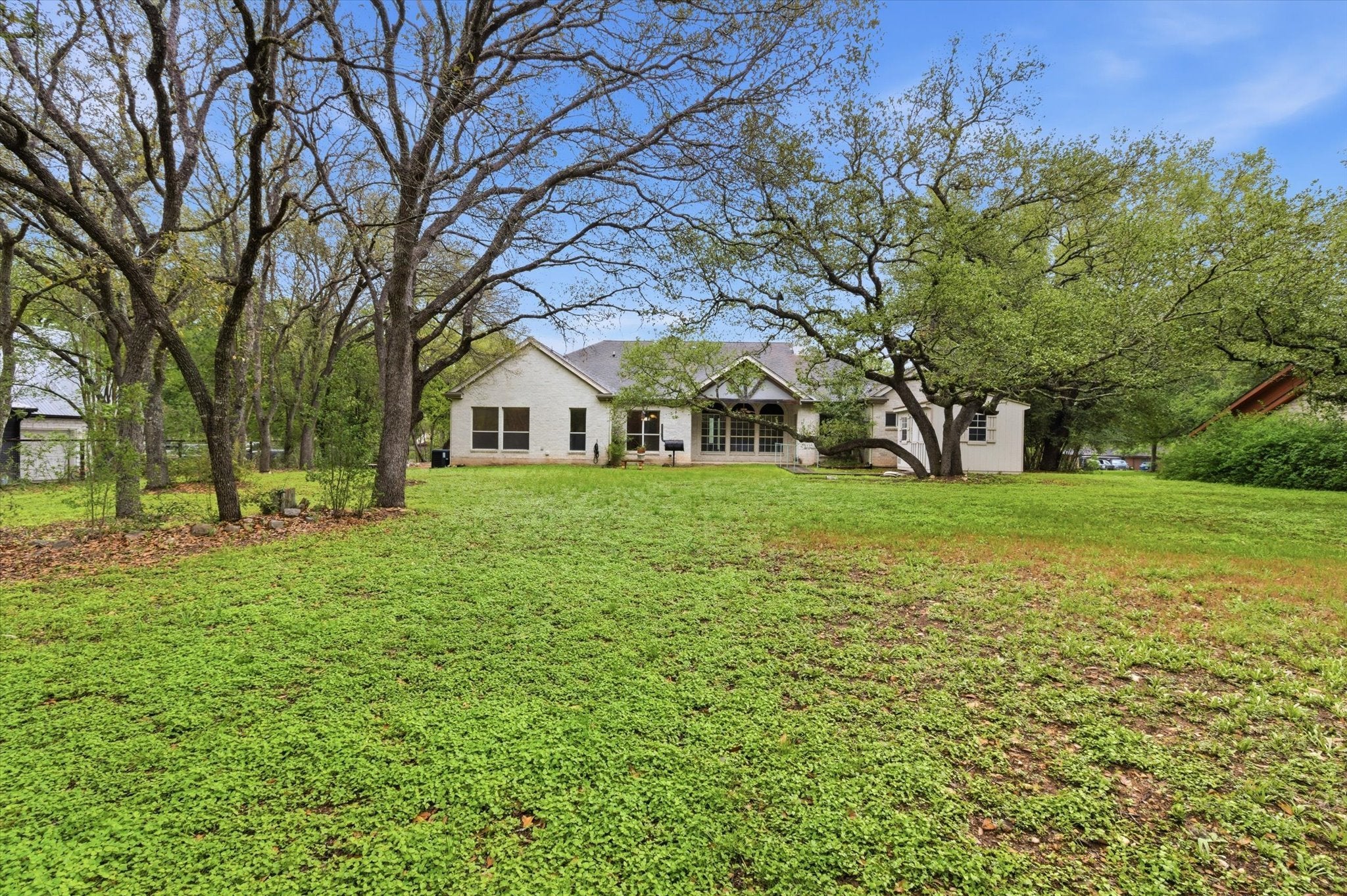 Don’t miss this incredible opportunity in Sunset Valley! Welcome to 14 Lone Oak Trail—a truly one-of-a-kind custom-built home with endless potential. This hidden gem is ready for your vision and personal touch, offering great bones and a unique layout that sets it apart. Situated on a .68-acre lot backing to a greenbelt, you’ll enjoy added privacy with no rear neighbors, along with peaceful views of nature and local wildlife. This single-story home features high ceilings and a thoughtfully designed floor plan. The spacious primary suite is a rare find, complete with dual bathrooms and its own private closet space—perfect for added comfort, functionality, and privacy. The property also includes a 3-car garage with extra workspace, ideal for hobbies, projects, or additional storage. A large laundry room adds convenience, featuring countertops, a sink, ample cabinetry, and a window that fills the space with natural light. Nestled in a desirable low-tax neighborhood, this home is just minutes from walking trails, shopping, dining, and everyday essentials in Sunset Valley. A unique property with character, space, and incredible potential—ready to be transformed into your dream home!