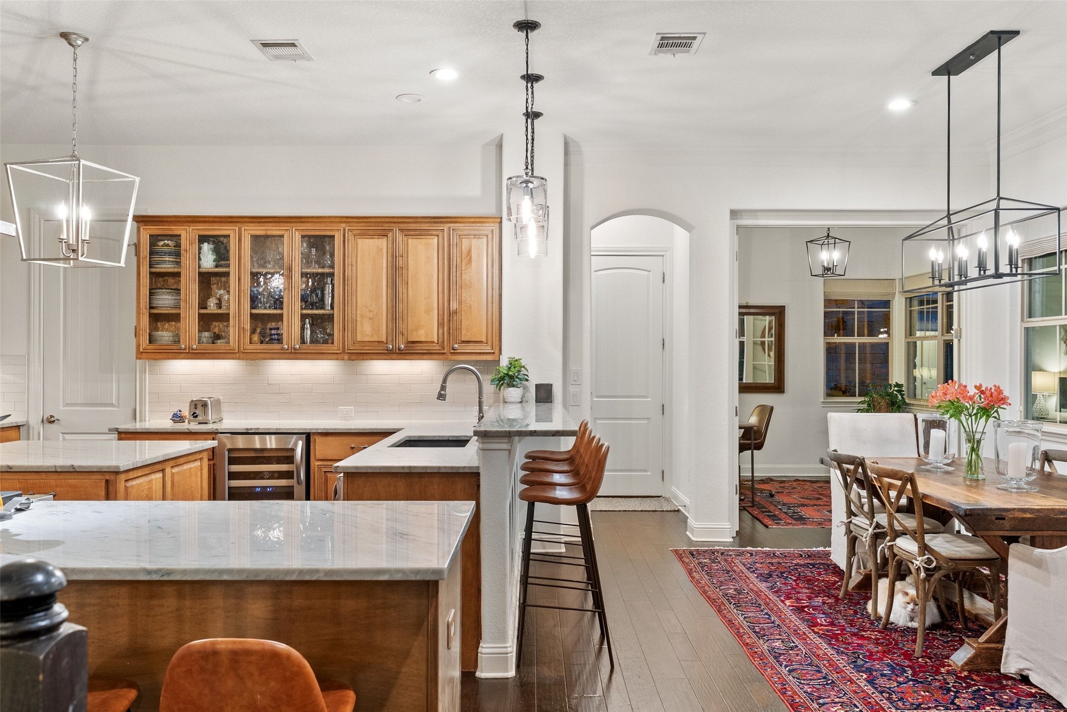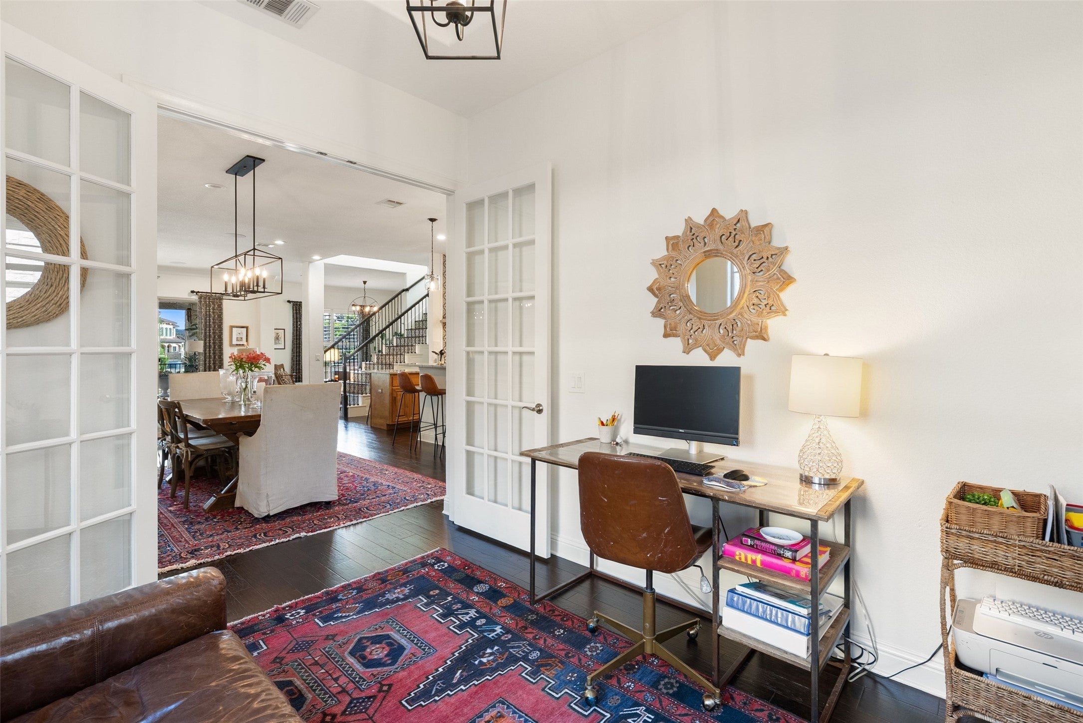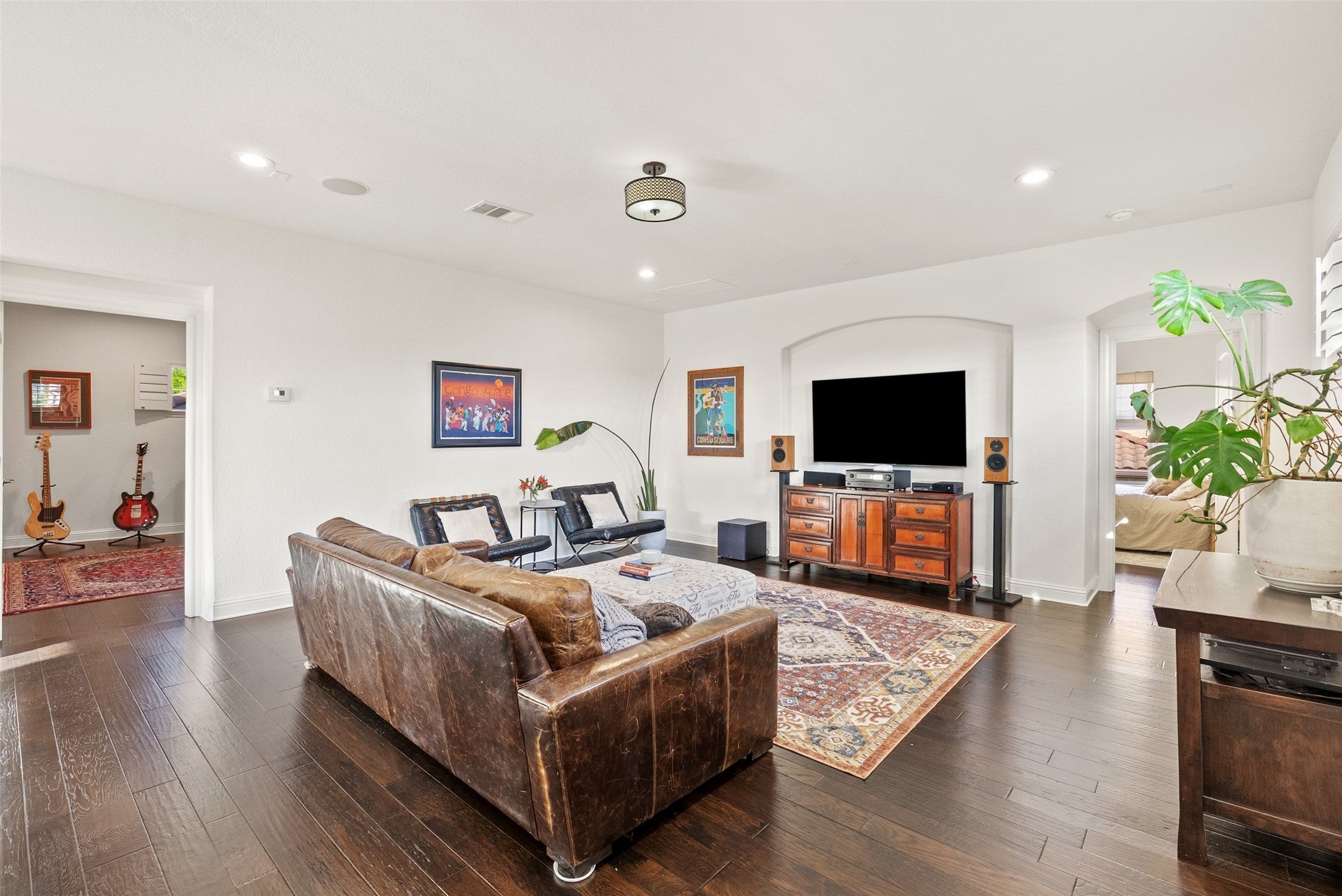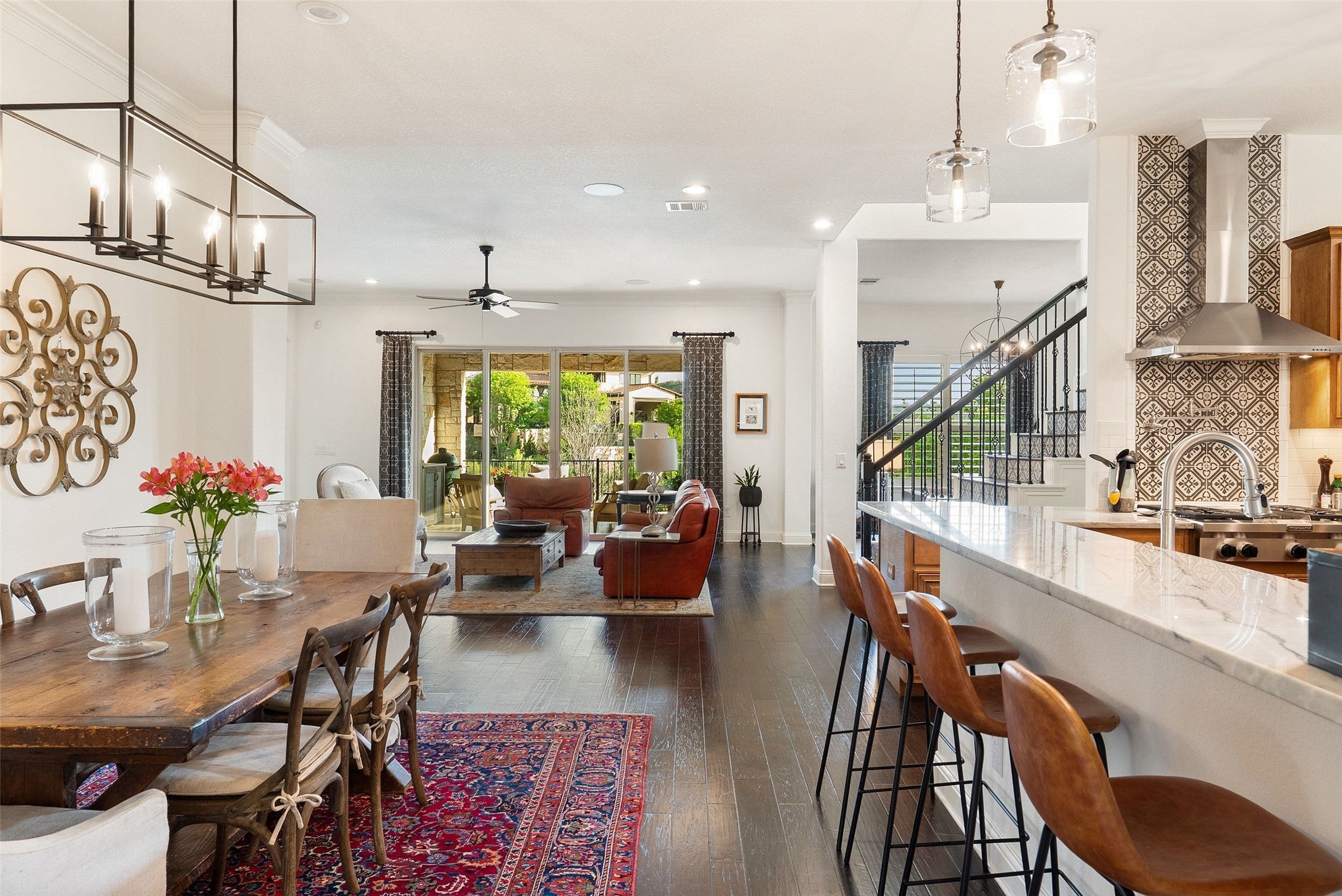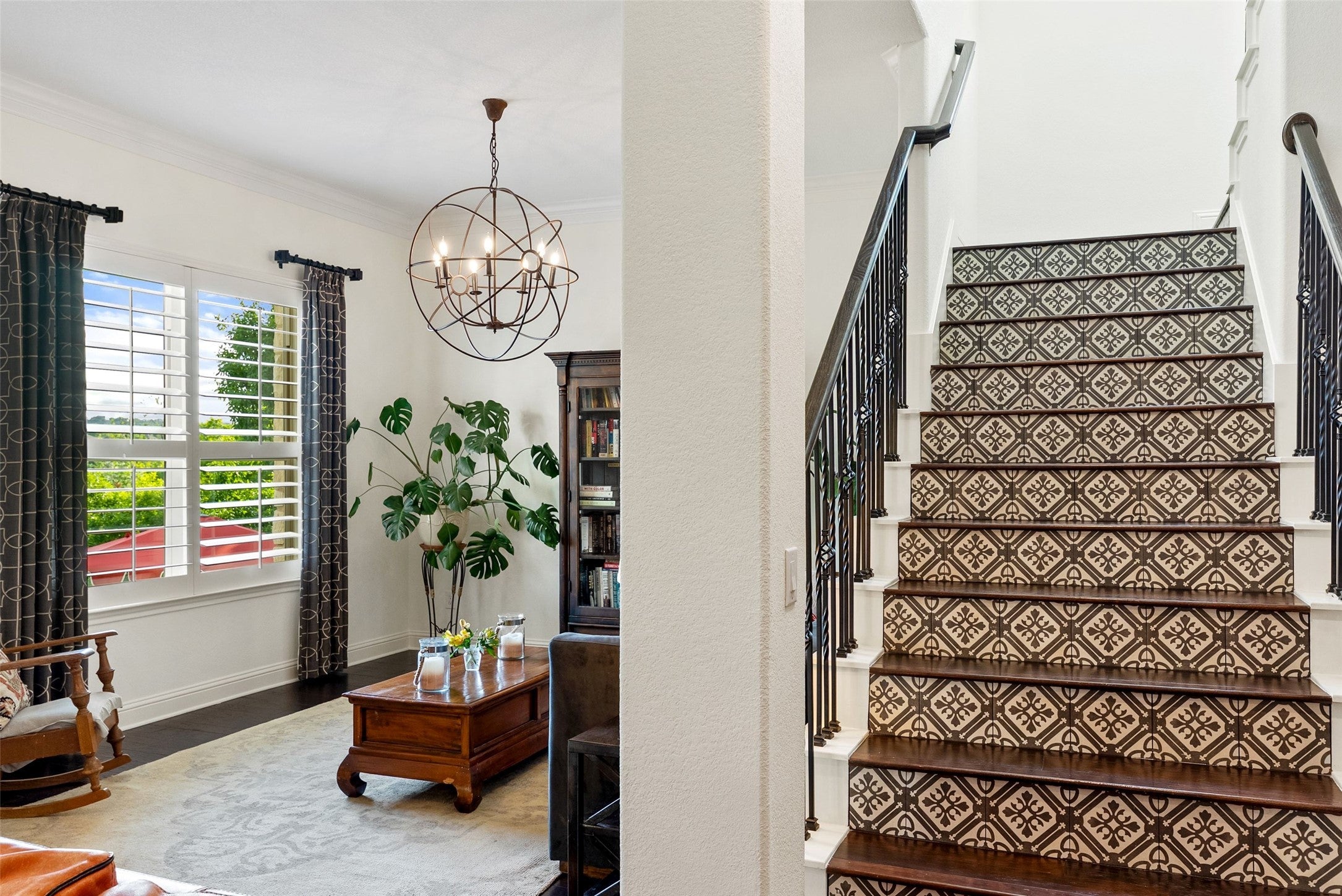 As twilight settles over the hills of Rough Hollow, you approach 209 Rocky Coast Drive through a commanding stone entry tower, an architectural statement that immediately evokes the romance of a European estate, thoughtfully envisioned by Design Visions Architecture and masterfully brought to life by award-winning builder Scott Felder. Beyond the gated entry, an enchanting courtyard unfolds—anchored by a wood-burning fireplace, framed by classic pavers, and softened by a pergola overhead—creating a private, old-world sanctuary perfect for intimate gatherings or quiet reflection. Inside, more than 4,000 square feet of refined living space reveals a home that resists conventional labels, offering a versatile floor plan designed to evolve with multigenerational needs or dynamic lifestyles. The kitchen serves as a true centerpiece, where luminous quartzite countertops, rich maple cabinetry, and professional-grade appliances are complemented by custom lighting that elevates both form and function, all seamlessly connecting to expansive living and dining areas ideal for entertaining. With no carpet throughout, the home maintains a clean, cohesive aesthetic while enhancing everyday ease. The main level hosts a tranquil primary suite alongside a secondary bedroom with its own private bath, offering comfort and accessibility without compromise. A detached guest house casita with a full bath adds an exceptional layer of flexibility, equally suited as a private office, creative studio, or independent living quarters. Outdoors, an oversized covered living space invites you to unwind year-round, overlooking a beautifully designed pool and spa with no rear neighbors, ensuring a rare sense of privacy. Residents enjoy marina access, scenic trails, fitness amenities, and vibrant community events that enrich daily life. Here, architecture, craftsmanship, and lifestyle converge in one of Lakeway’s most distinctive offerings—an experience waiting to be lived.