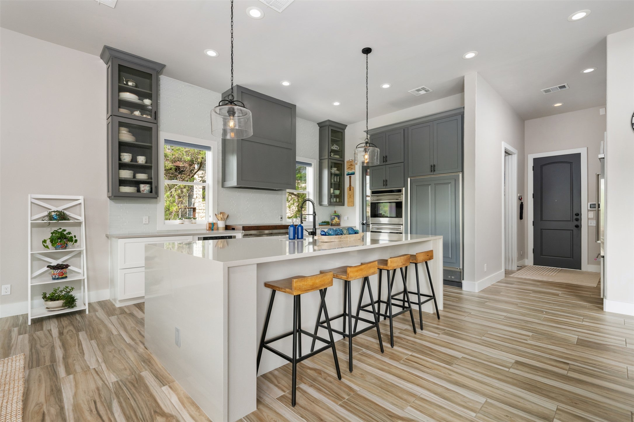 - Dishwasher, Microwave, Built-In Refrigerator, Double Oven, Exhaust Fan, Gas Cooktop, Range Hood, Refrigerator