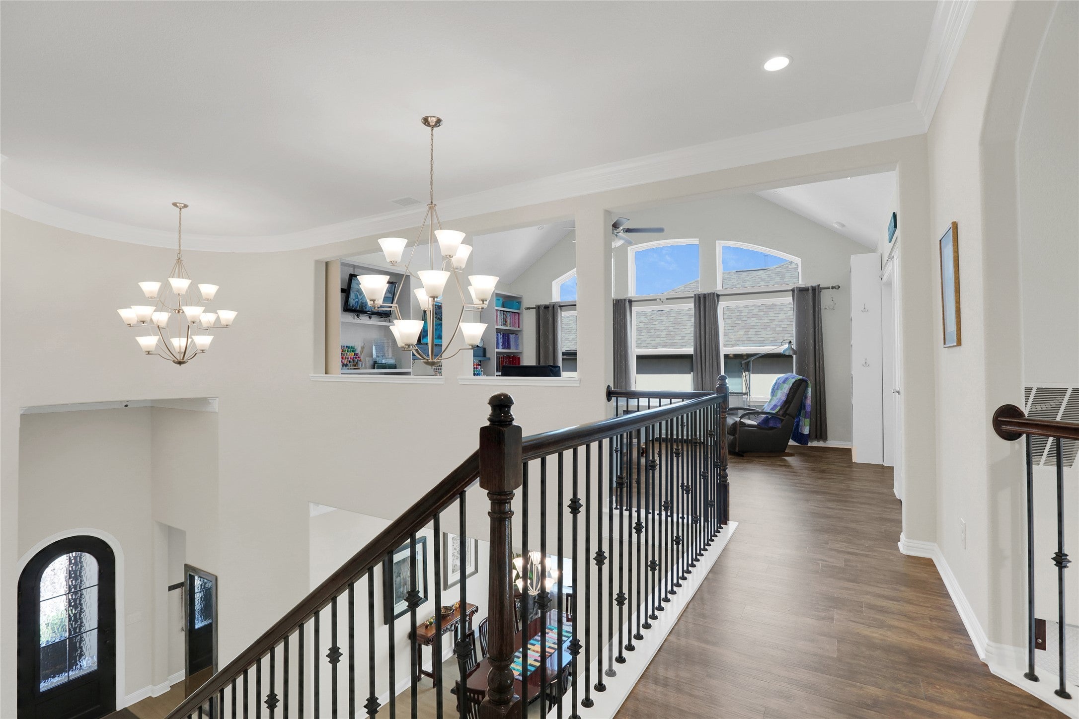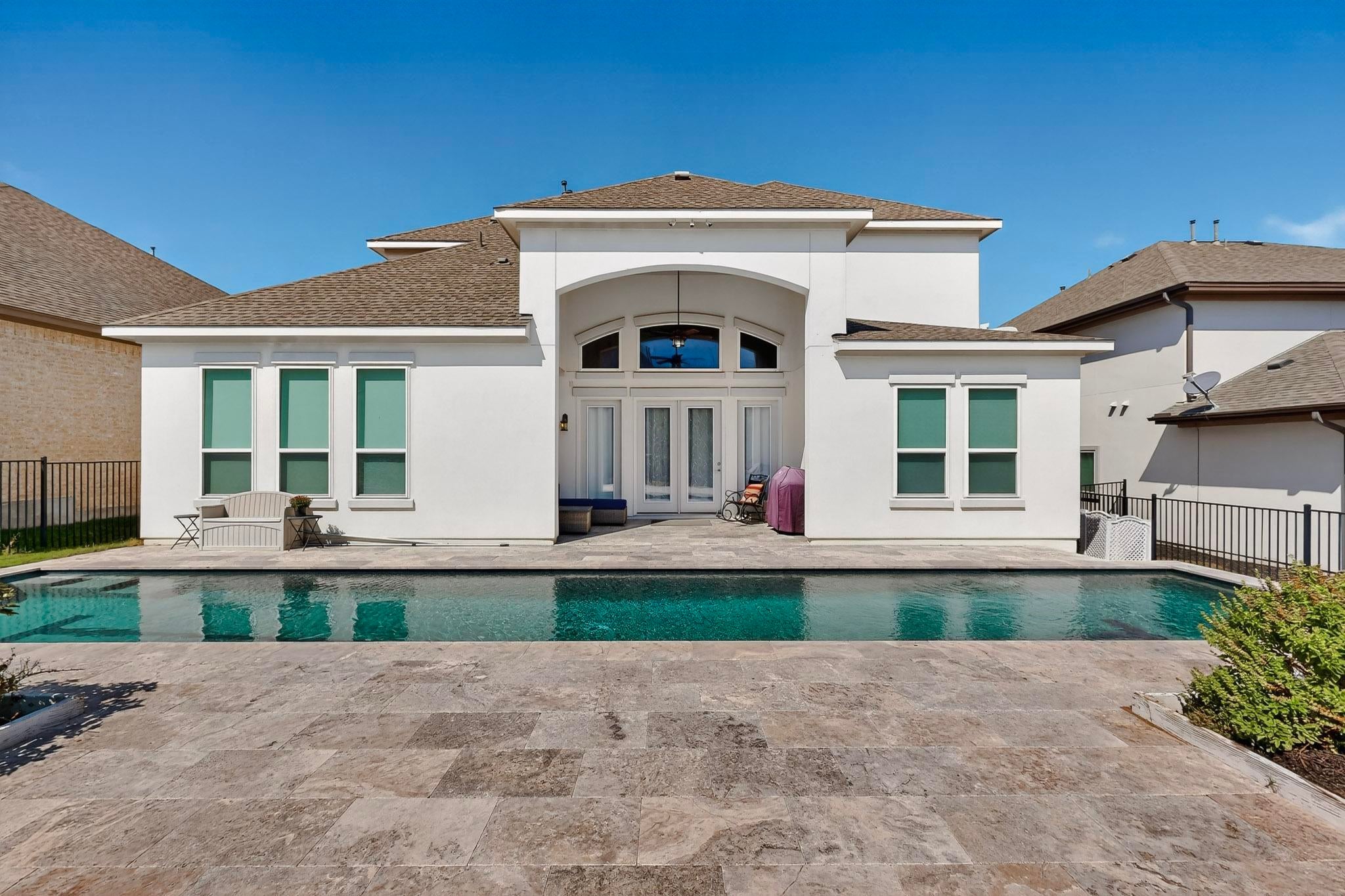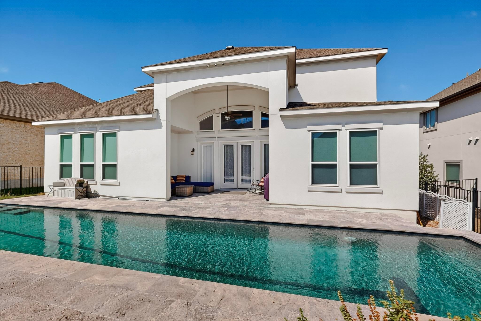 Beautiful Toll Brother house originally built with tons of luxurious upgrades from the elegant entry way with a custom wrought iron gate and a wrought iron door to the tranquil oasis of a backyard pool and patio, this home is awash with architectural details and designer appointed features you will appreciate once viewed. This home features a very elegant two-story foyer that opens to a great room with a towering cathedral ceiling, a kitchen ideal for the culinary aficionado, a formal dining area, a butler’s pantry and walk-in pantry, a spacious laundry room, ensuite baths in all the rooms with his and hers closets in the primary bath, a versatile study that can accommodate a variety of needs, a media room, and a spacious game room currently utilized as a sewing studio that features a cathedral ceiling and big picture windows that provide plenty of light. All these in the amenity-rich community of Travisso.