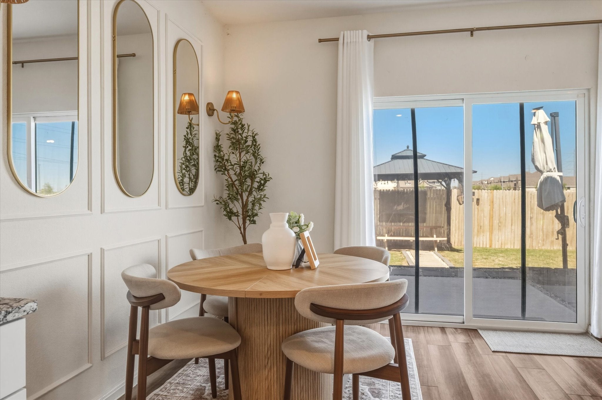 Beautifully upgraded 3-bedroom, 2.5-bath home located on a quiet cul-de-sac in Hutto with no rear neighbors. This 1,896 sqft home features all bedrooms upstairs and has been fully transformed from standard builder-grade into a thoughtfully designed space with high-end interior finishes throughout. Inside, you’ll find custom touches including built-in closets, barn doors, gold fixtures, sconce lighting, and electric fireplaces in both the living room and primary bedroom. The primary suite also features a custom vanity built into the closet. The island kitchen offers granite countertops and an open layout ideal for everyday living and entertaining. Step outside to an oversized backyard built for enjoyment, complete with an extended patio, gazebo, fire pit seating area, and a storage shed. Well-maintained and move-in ready with the washer and dryer included. This home stands out from the typical rental and won’t last long.