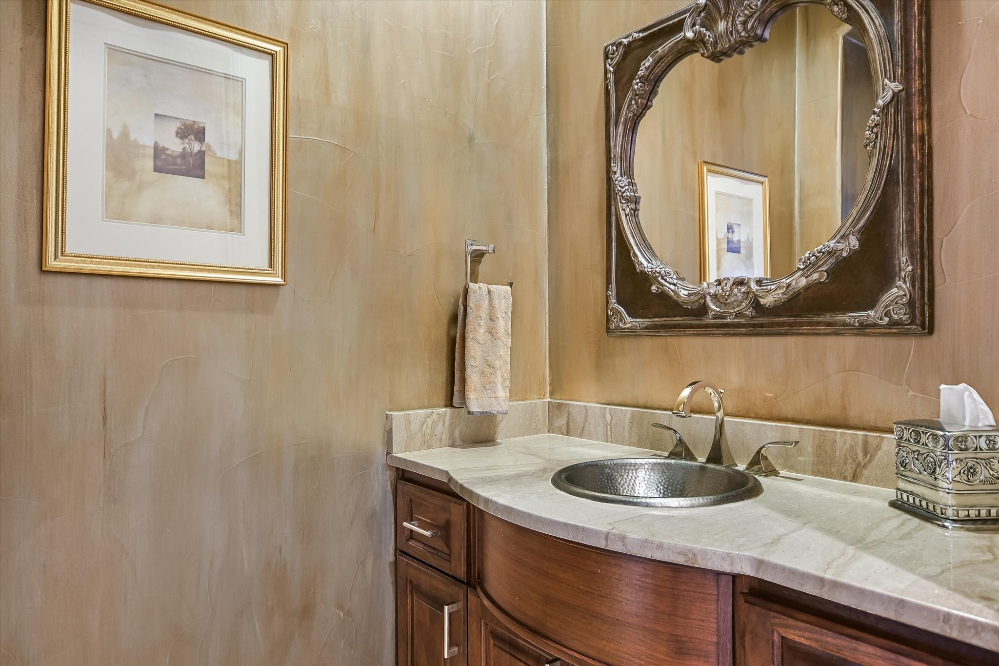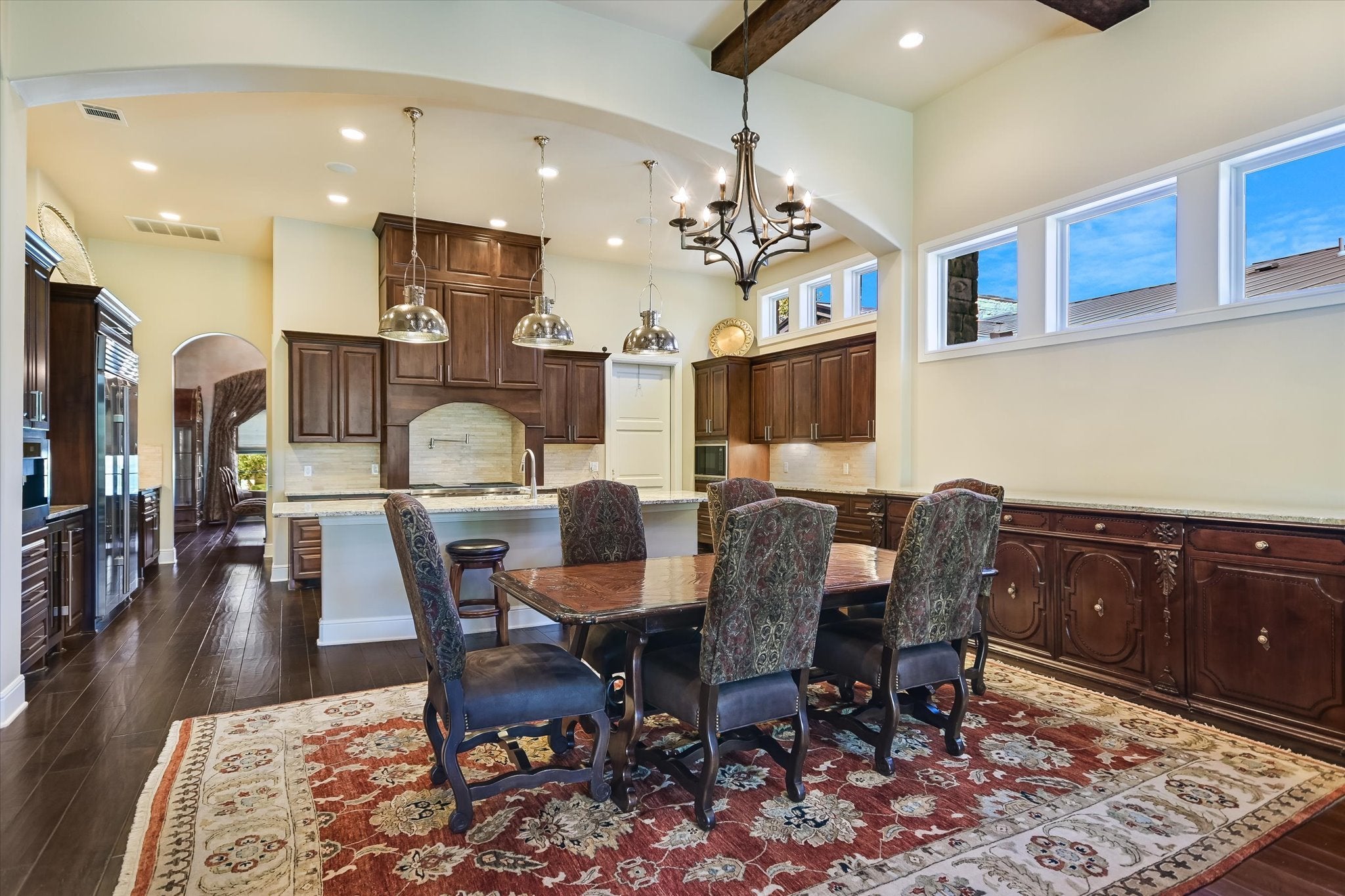 Set within an exclusive gated enclave overlooking the rolling fairways of the Barton Creek Fazio Canyons Golf Course, this refined residence offers a rare balance of serenity, sophistication, and effortless “lock-and-leave” living in the heart of Austin. Thoughtfully designed to elevate both everyday living and elegant entertaining, the home features 3 spacious bedrooms, 3.5 baths, and a 3-car garage. Soaring vaulted ceilings and a rich interplay of natural stone and warm wood flooring create an atmosphere that is at once inviting and architecturally striking. The open-concept living spaces unfold with intention, anchored by a beautifully appointed kitchen with an oversized center island, generous workspace, and seamless flow into the expansive great room, where a statement fireplace adds warmth and understated drama. Each of the three bedrooms is a private sanctuary with its own en-suite bath, including a serene primary suite designed as a true retreat—complete with dual vanities, dual water closets, and two generous walk-in closets. Beyond the main living areas, a curated collection of spaces enhances both function and lifestyle: a dedicated office with custom built-ins, a formal dining room for elevated gatherings, a well-appointed bar area, built in 300 bottle Sub Zero wine storage, and thoughtfully designed pantry and utility spaces. Outdoors, the experience continues with a fully equipped kitchen and a private, fenced yard that opens to sweeping golf course vistas—offering a tranquil, ever-changing backdrop with no rear neighbors and a true sense of escape. Blending timeless design with resort-style surroundings, this exceptional property offers a rare opportunity to live with ease, privacy, and distinction—just 25 minutes from the energy of downtown yet worlds away in feel.