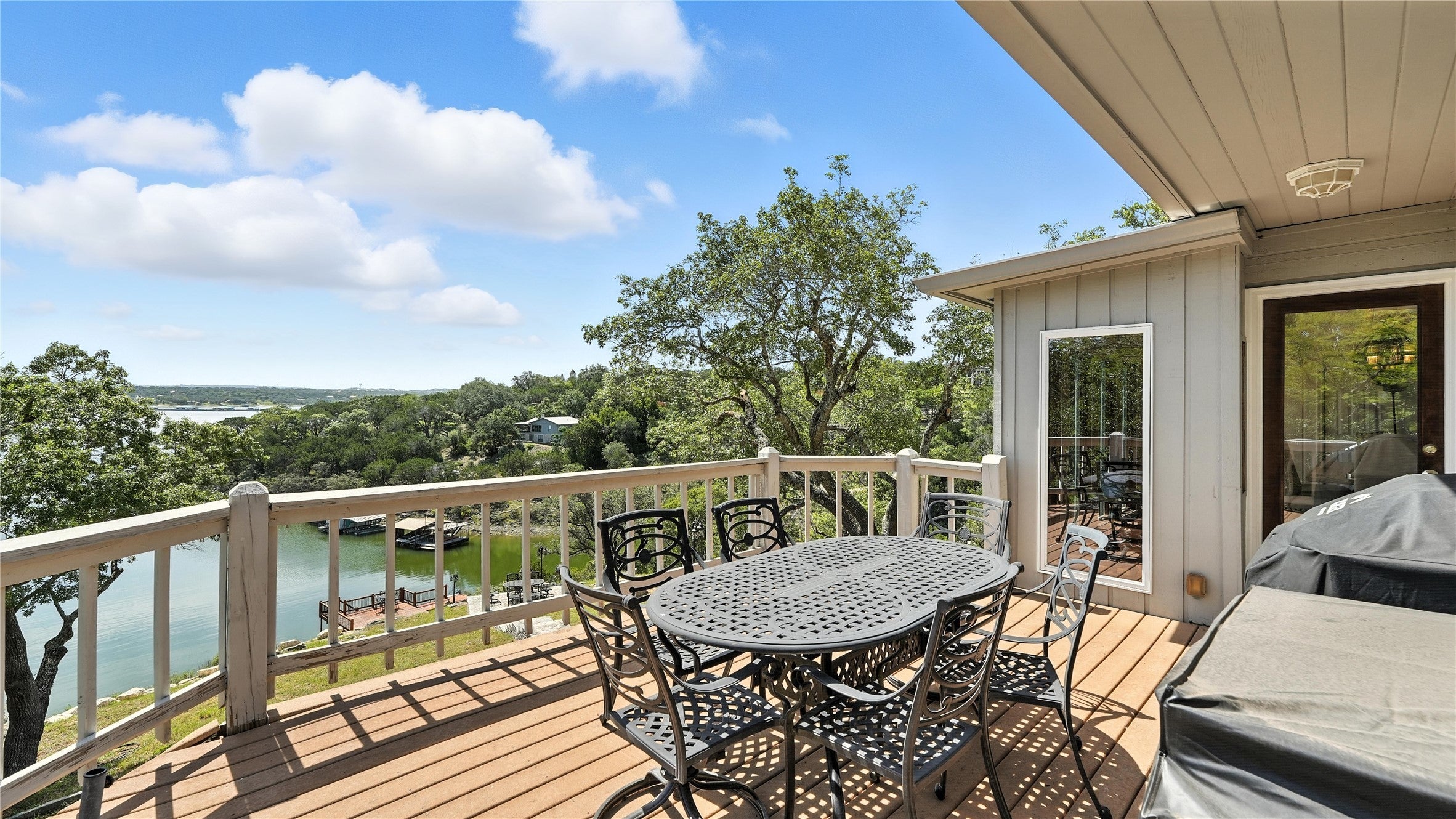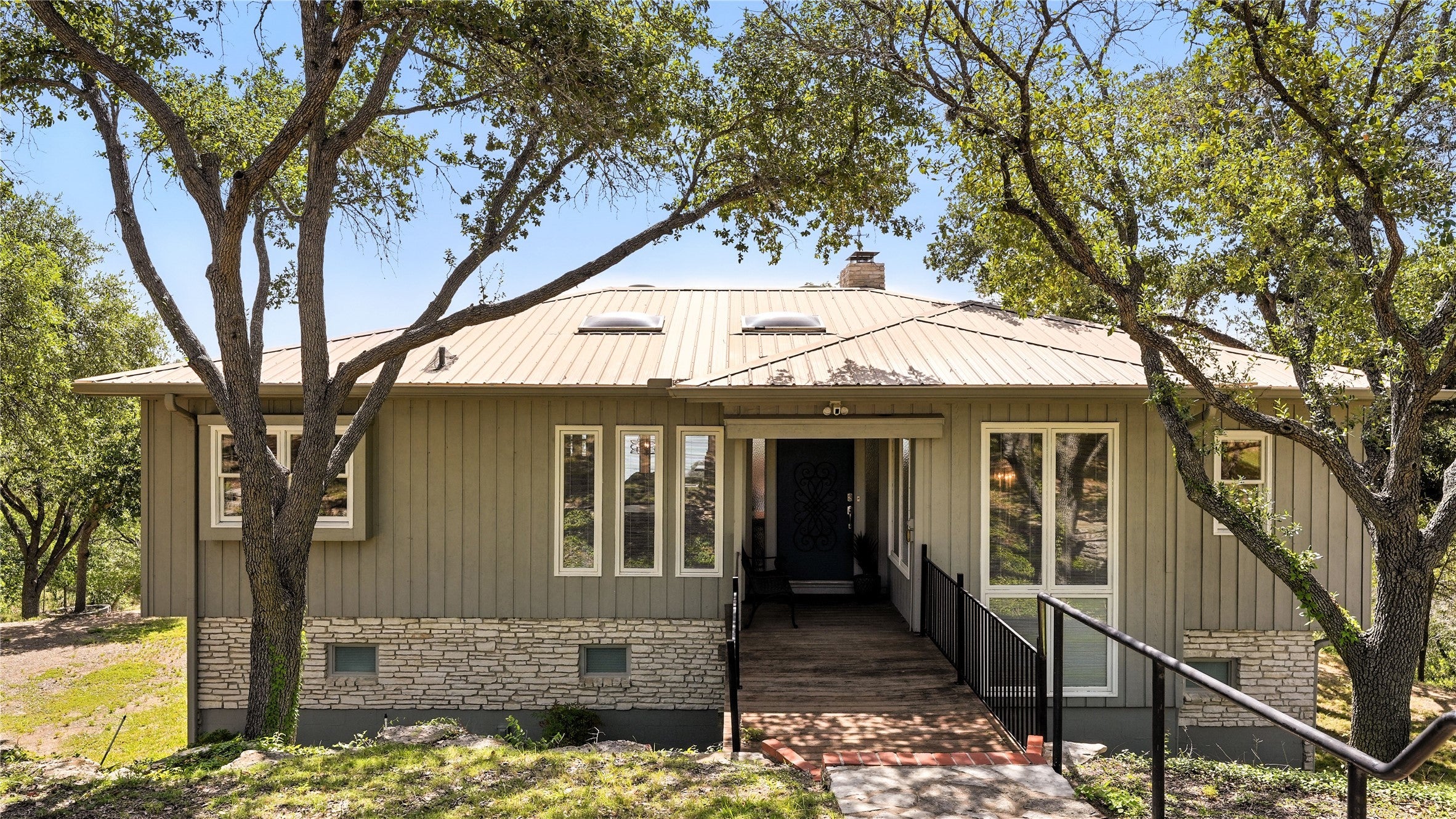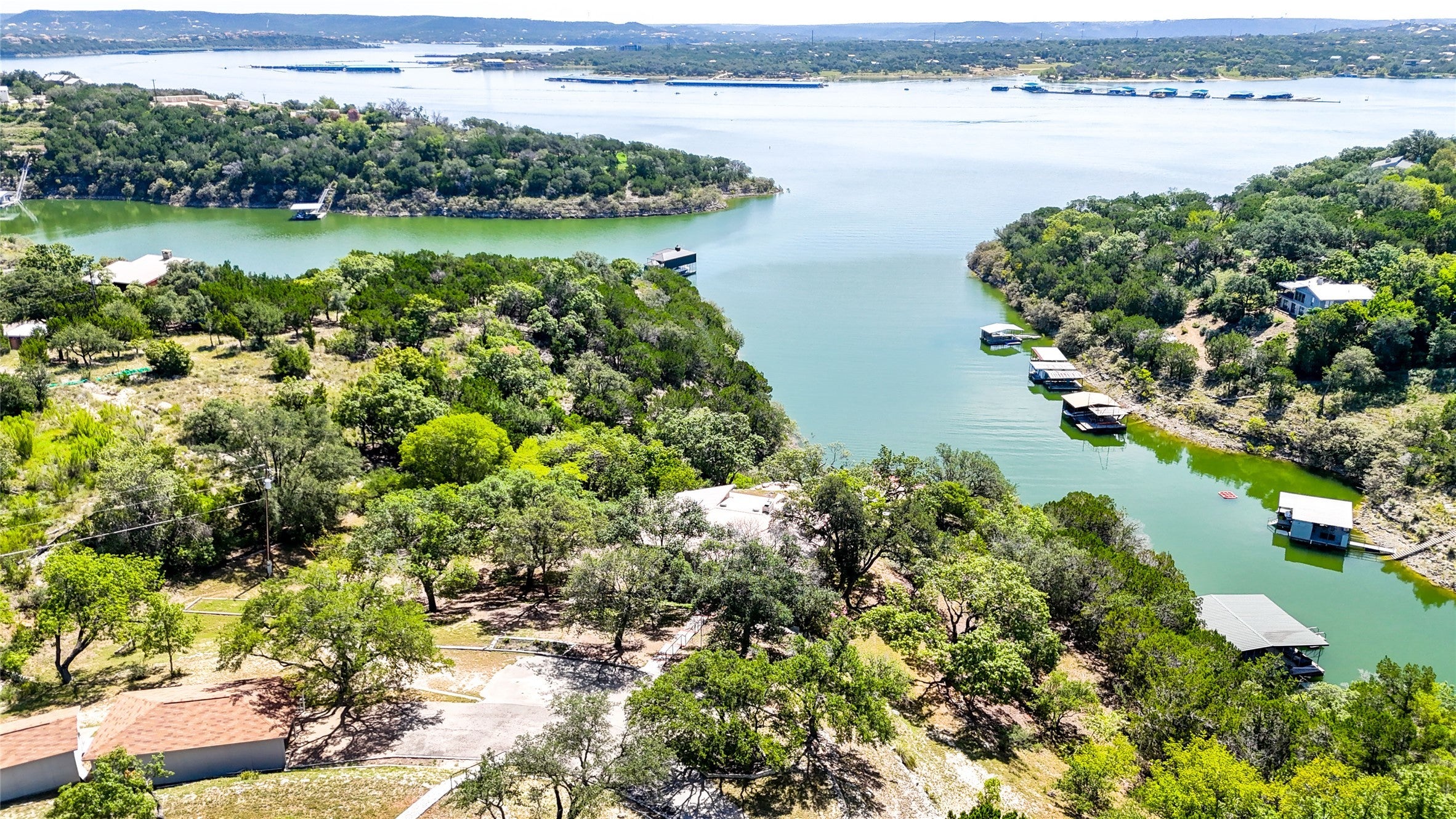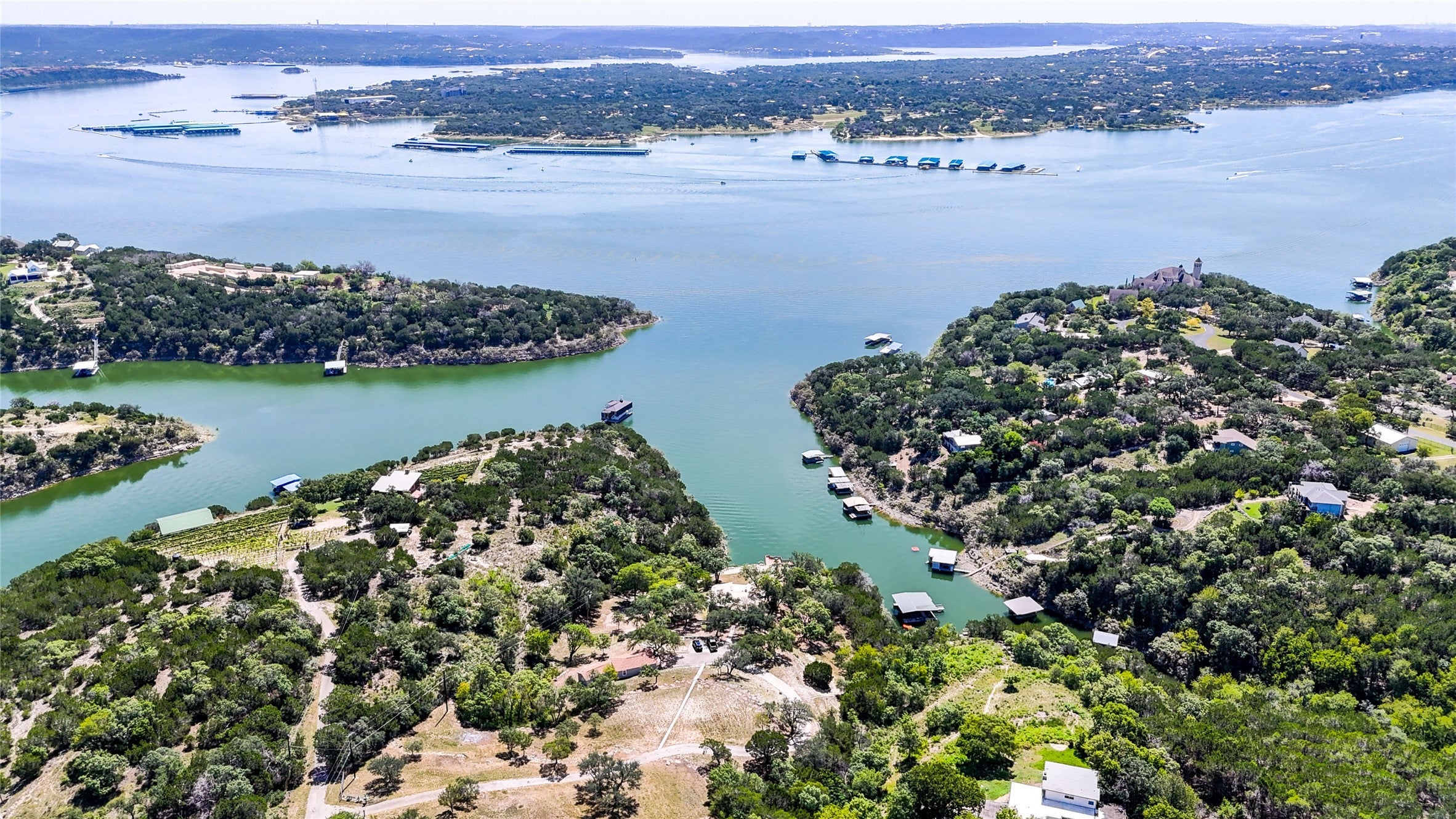 Rare Lakefront property retreat on 4.52 acres in a deep-water cove. This 4-bedroom, 3.5-bath home offers 3,208 sq ft with Pella windows throughout, filling the home with natural light and capturing beautiful lake views from every bedroom. Enjoy peaceful mornings overlooking the water and spectacular Hill Country sunsets in the evening. The gated property has no HOA and endless possibilities—add a casita, guest house, or pool and create your dream lakeside compound. A separate workshop building and covered parking provide extra flexibility for hobbies or storage. The home also features a private water filtration system drawing from Lake Travis, offering unique off-grid potential. Follow the stone steps down to the water where you can swim, kayak, or simply enjoy lakeside evenings under the Texas stars. Perfect as a private retreat, full-time residence, or short-term rental opportunity.