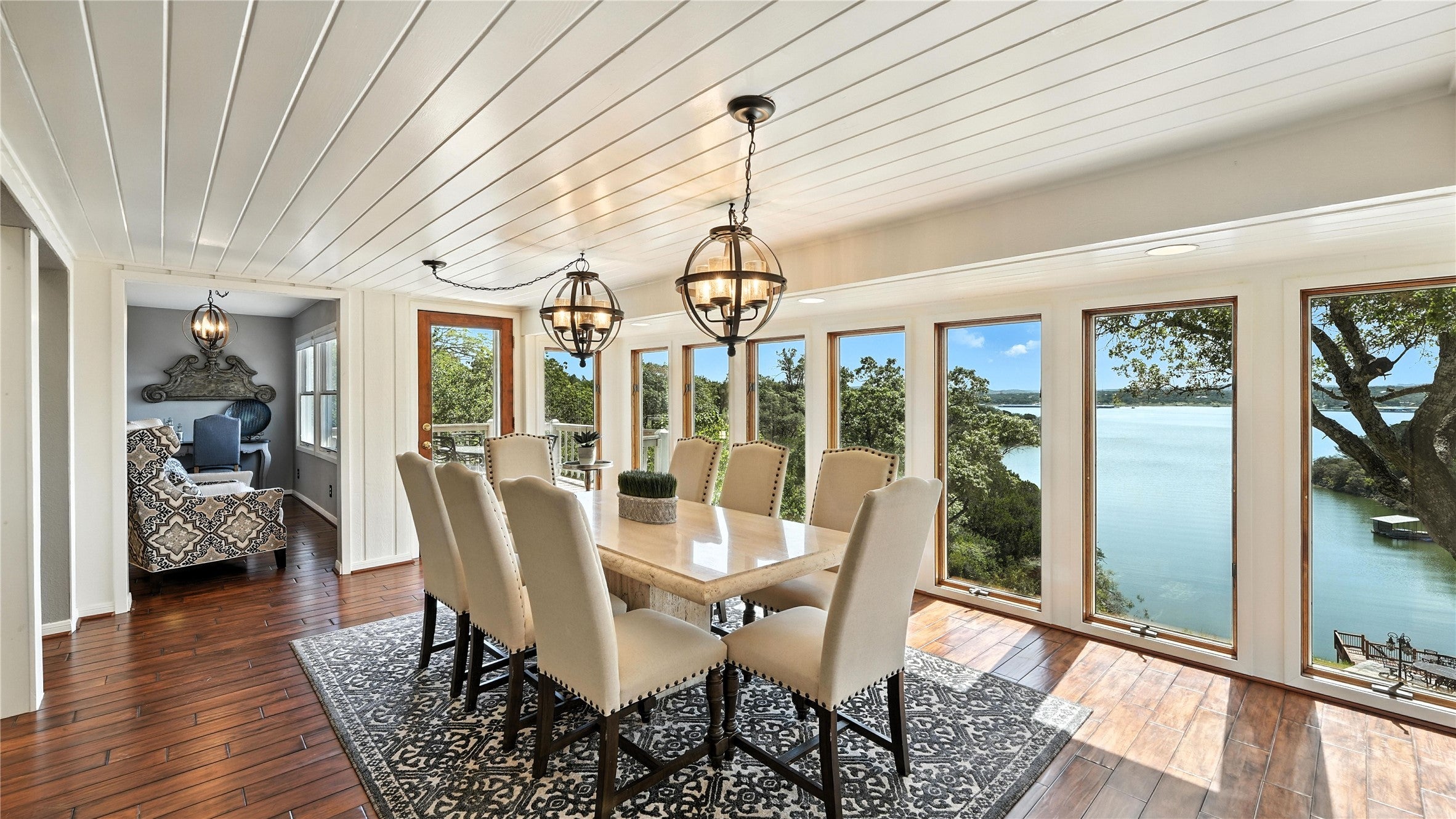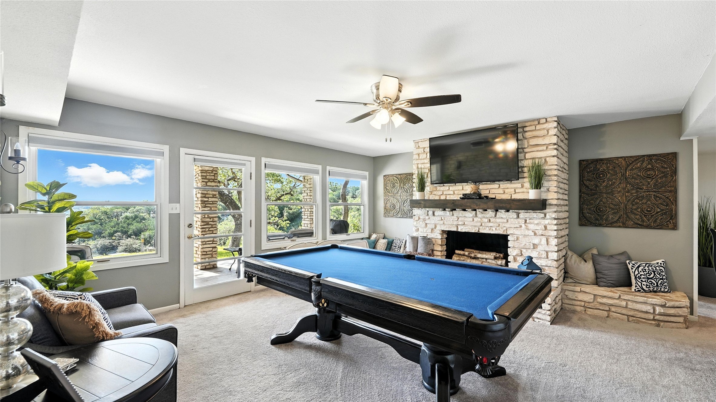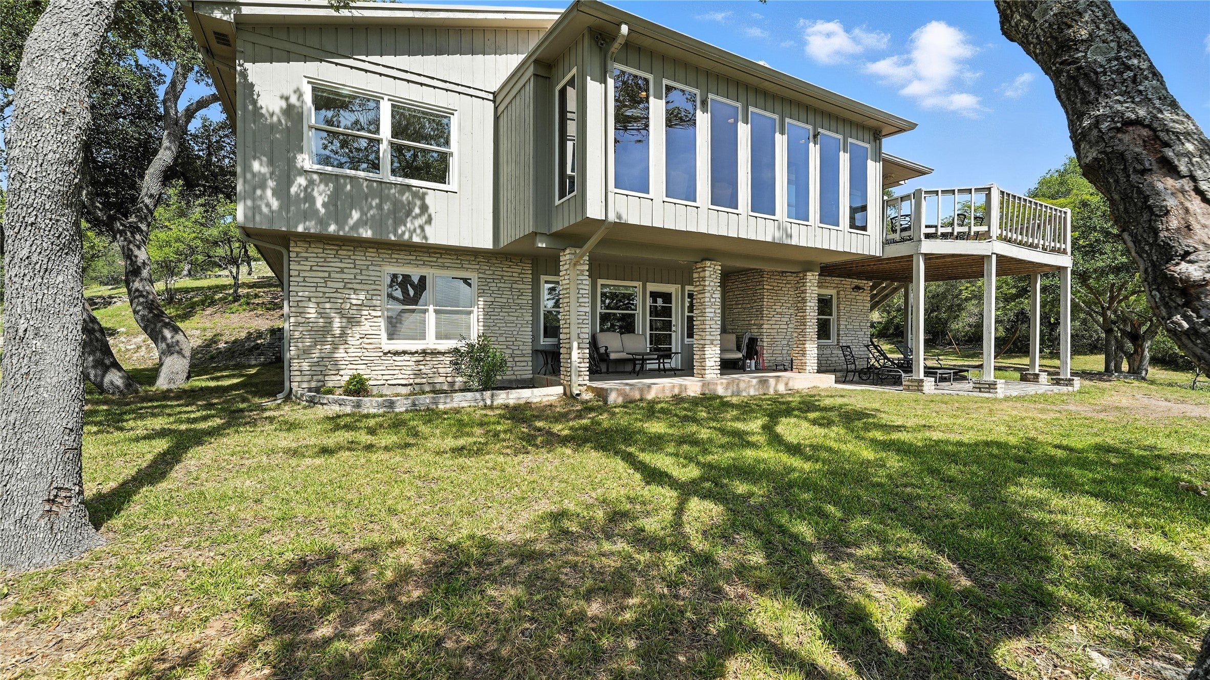 Rare Lakefront property retreat on 4.52 acres in a deep-water cove. This 4-bedroom, 3.5-bath home offers 3,208 sq ft with Pella windows throughout, filling the home with natural light and capturing beautiful lake views from every bedroom. Enjoy peaceful mornings overlooking the water and spectacular Hill Country sunsets in the evening. The gated property has no HOA and endless possibilities—add a casita, guest house, or pool and create your dream lakeside compound. A separate workshop building and covered parking provide extra flexibility for hobbies or storage. The home also features a private water filtration system drawing from Lake Travis, offering unique off-grid potential. Follow the stone steps down to the water where you can swim, kayak, or simply enjoy lakeside evenings under the Texas stars. Perfect as a private retreat, full-time residence, or short-term rental opportunity.
