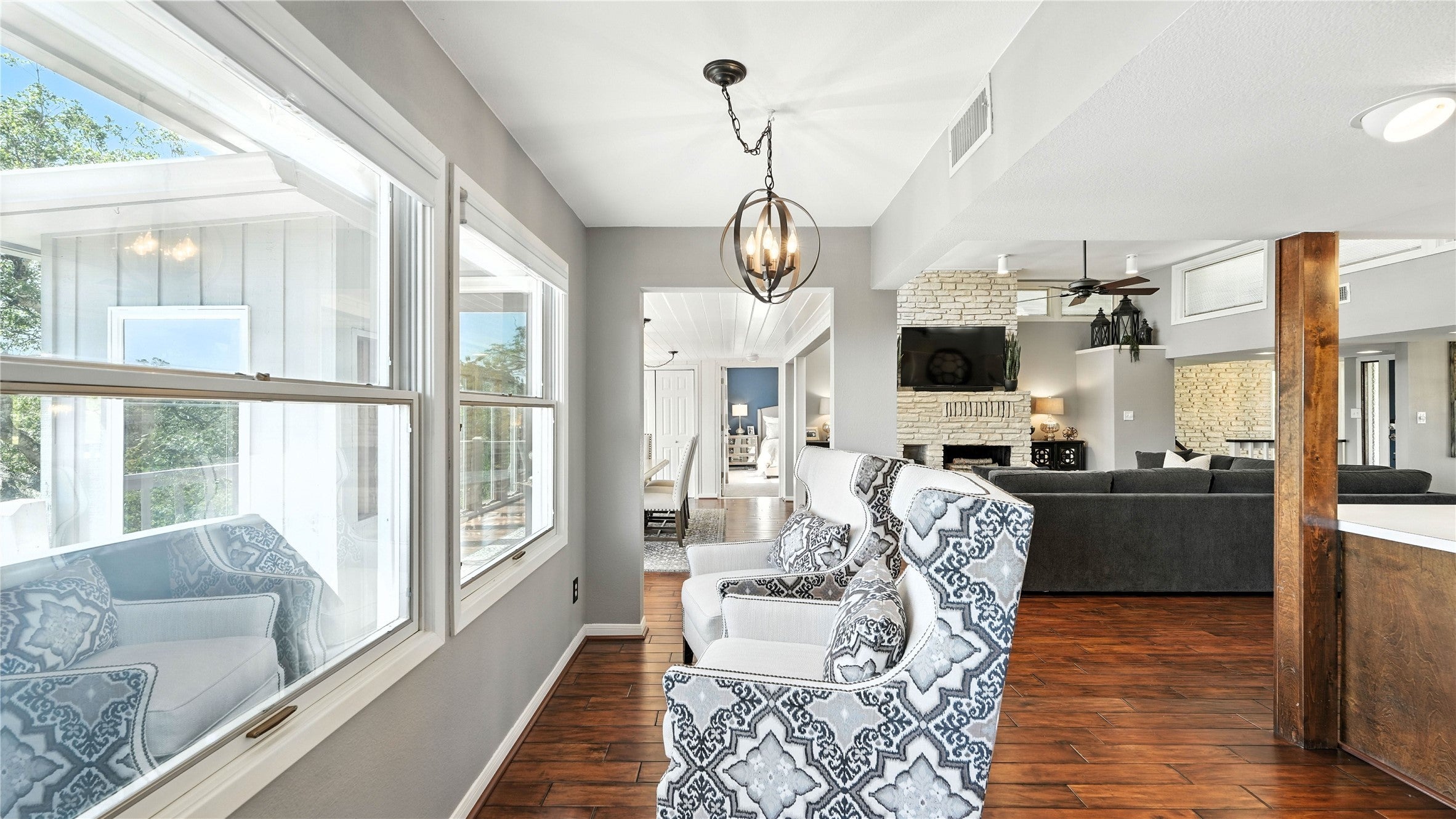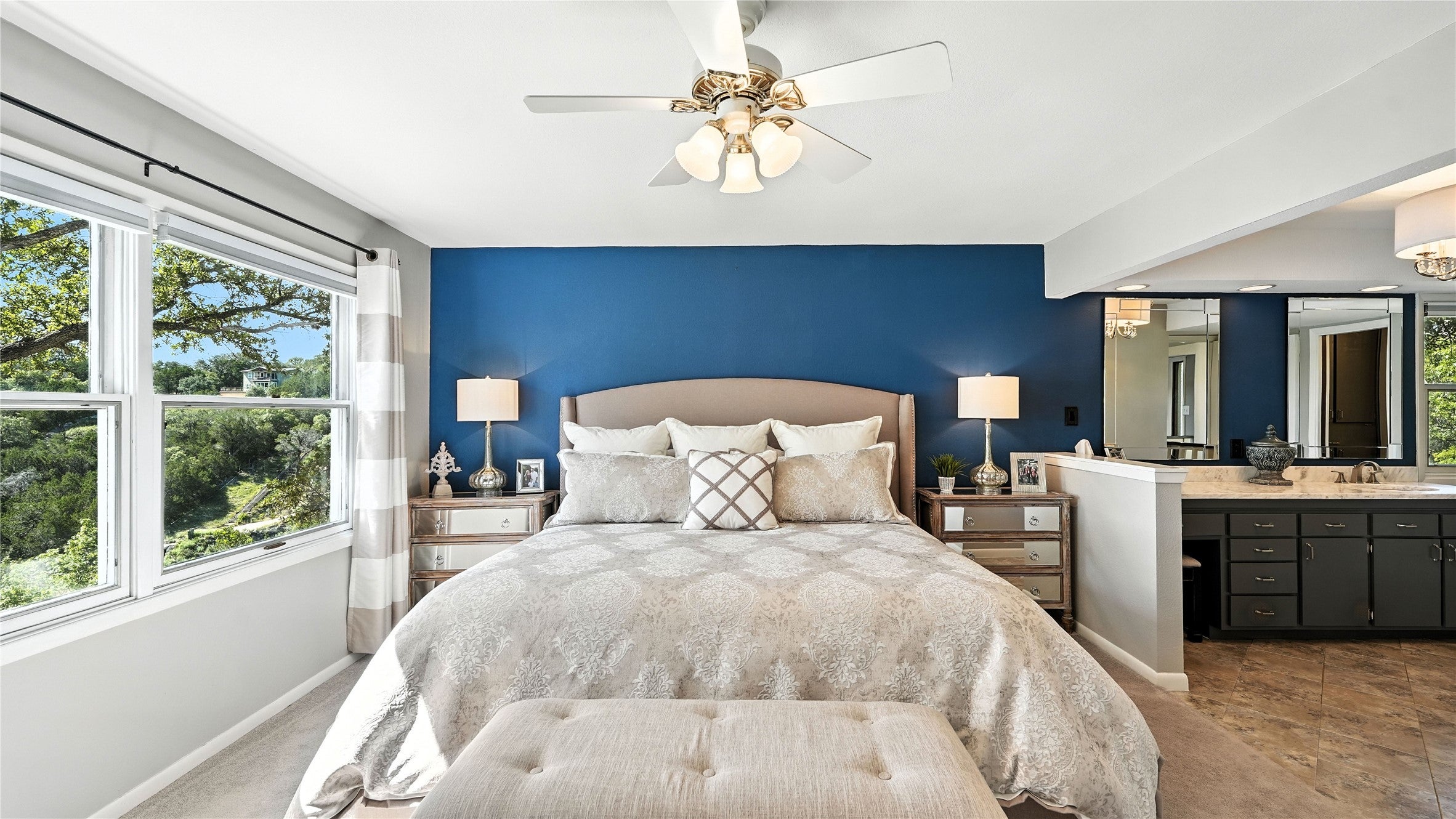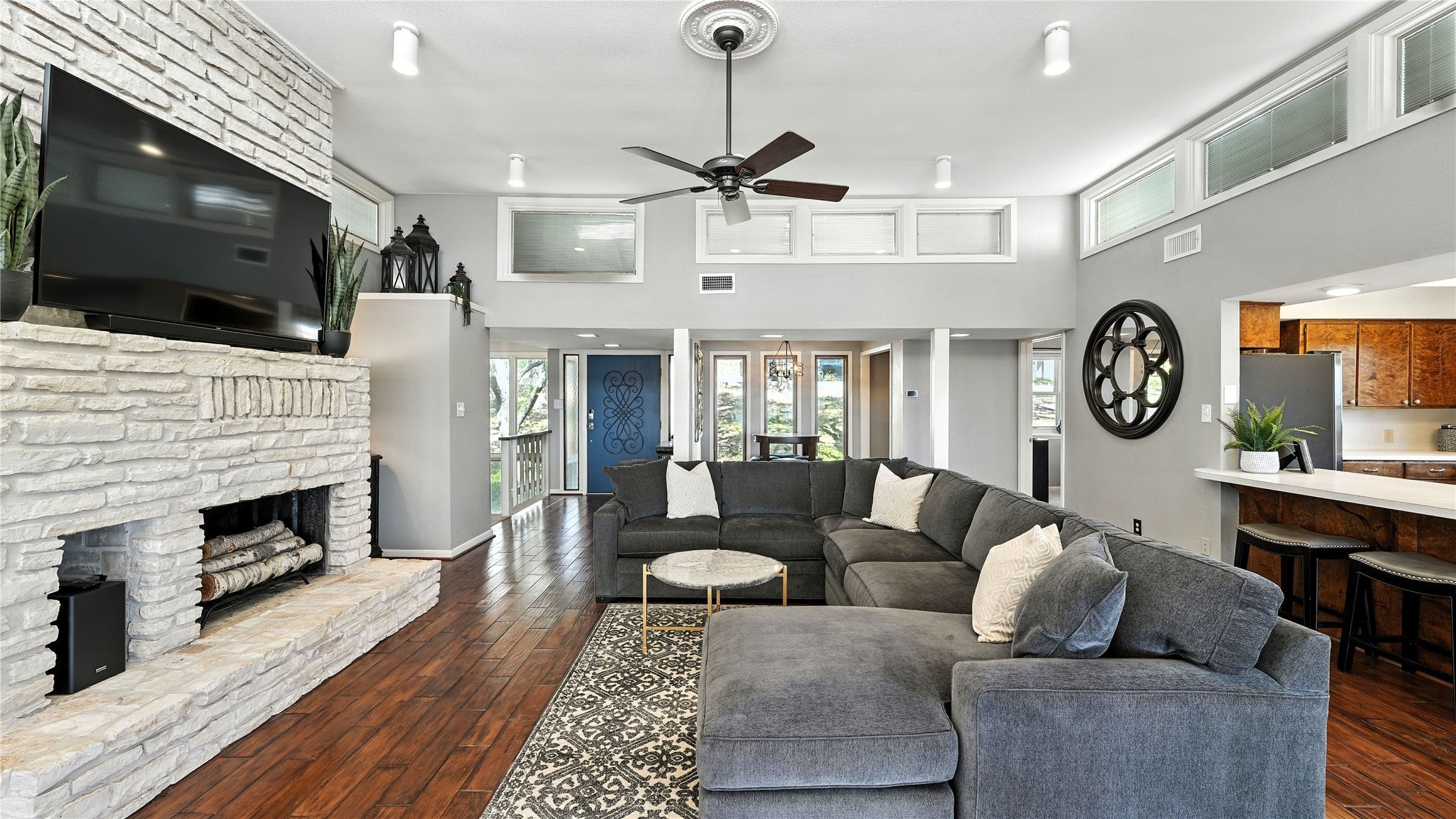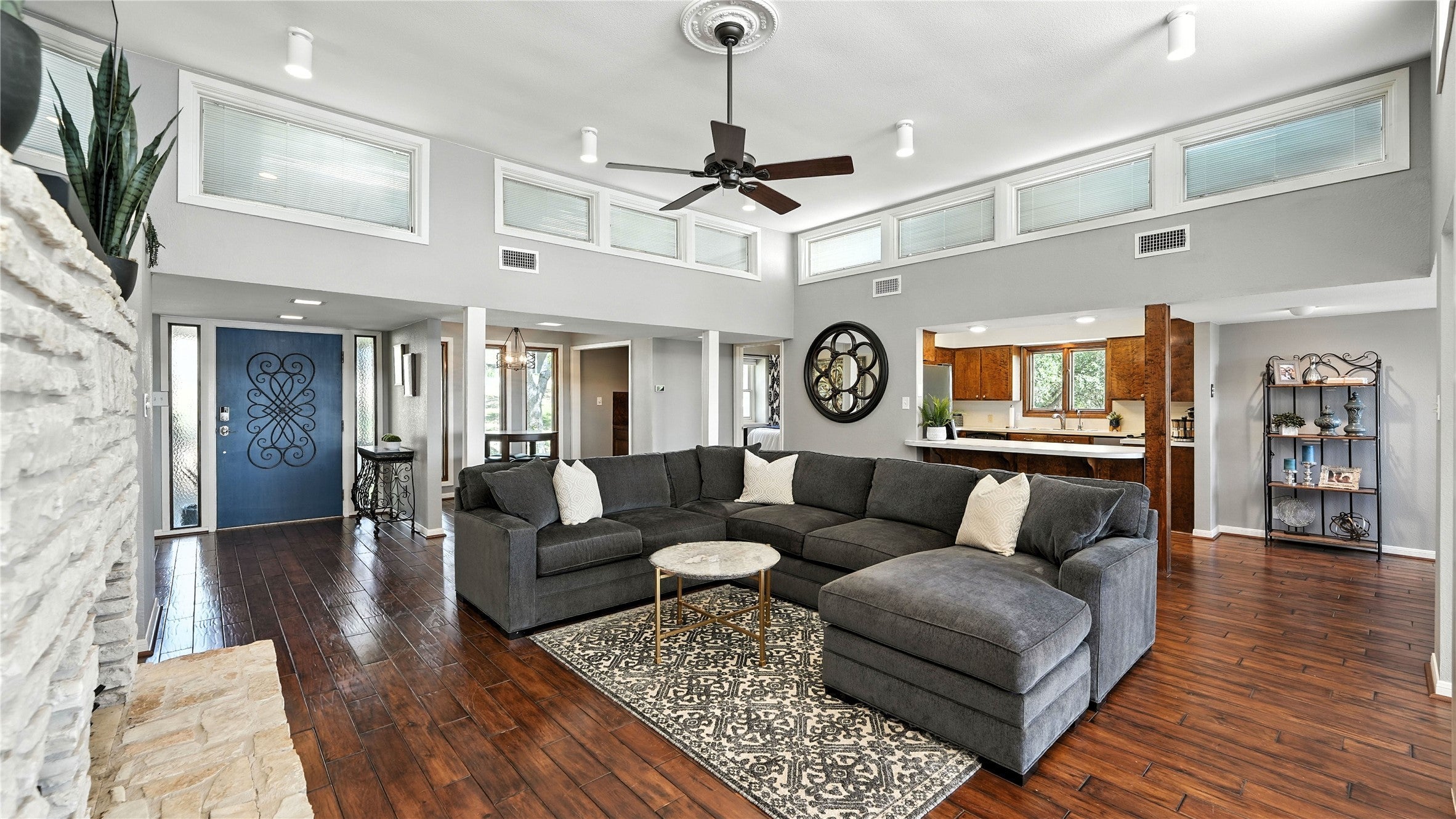 Rare Lakefront property retreat on 4.52 acres in a deep-water cove. This 4-bedroom, 3.5-bath home offers 3,208 sq ft with Pella windows throughout, filling the home with natural light and capturing beautiful lake views from every bedroom. Enjoy peaceful mornings overlooking the water and spectacular Hill Country sunsets in the evening. The gated property has no HOA and endless possibilities—add a casita, guest house, or pool and create your dream lakeside compound. A separate workshop building and covered parking provide extra flexibility for hobbies or storage. The home also features a private water filtration system drawing from Lake Travis, offering unique off-grid potential. Follow the stone steps down to the water where you can swim, kayak, or simply enjoy lakeside evenings under the Texas stars. Perfect as a private retreat, full-time residence, or short-term rental opportunity.