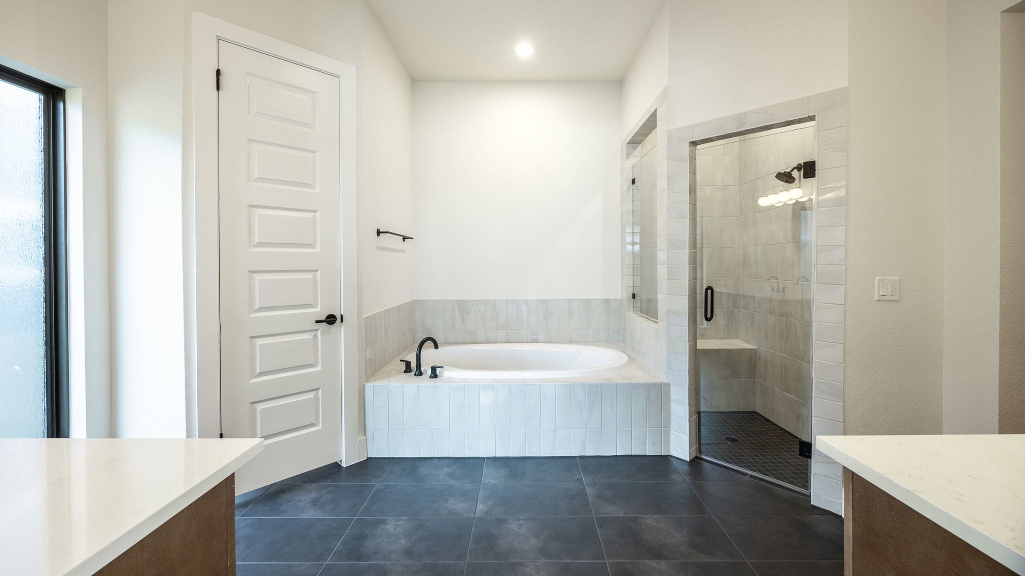 Entry framed by home office with French doors. Media room just off the extended entry with French doors. Dedicated dining area with three windows opens to the family room and kitchen. Generous family rooms with a sliding glass door. Island kitchen with built-in seating space, a 5-burner gas cooktop and large walk-in pantry. Secluded primary suite features a wall of windows. Primary bathroom offers dual vanities, garden tub, separate glass enclosed shower, linen closet and two-walk-in closets. Guest suite with full bathroom and a walk-in closet. Additional bedrooms, Hollywood bathroom and a utility room complete this generous design. Covered backyard patio. Mud room just off the three-car garage.