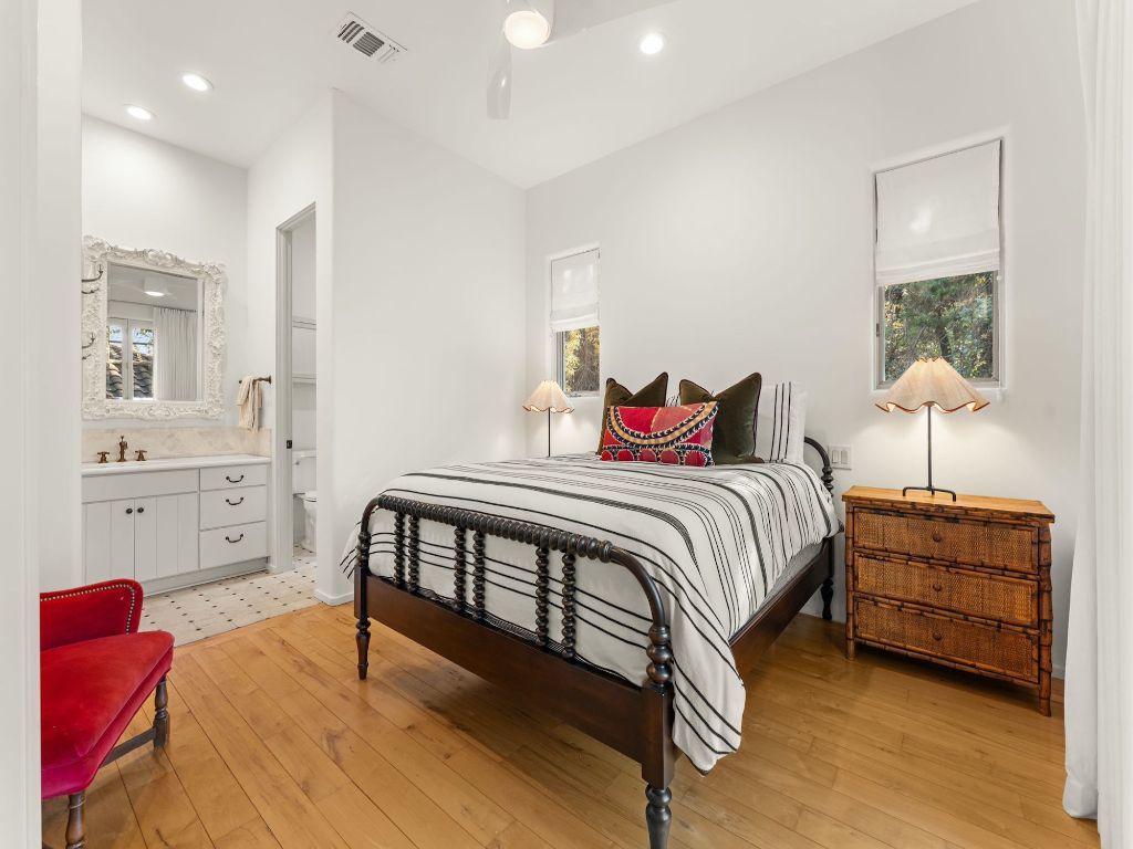 Located off beautiful Mount Bonnell Road on quiet Waterford Place, this special residence is nestled into the base of the Bright Leaf Preserve. The multi-story European design features interior stones, mixed woods, mid century accents and exquisite taste throughout. Beautifully maintained and thoughtfully arranged, the home includes multiple living environments that accommodate both everyday living and effortless hosting. A large screened-in porch with fireplace extends the living space outward, while the shaded terrace and back patio create a tranquil setting ideal for year-round use. The upstairs primary suite serves as a comfortable retreat with bright light, built-in bookshelves and a spacious bath and closet, while each additional bedroom includes its own en-suite bathroom, allowing for ease and separation across all levels. An office/library space provides flexibility for working from home, reading, or quiet relaxation. Conveniently positioned just minutes from Downtown Austin, Westwood Country Club and Lake Austin, the home achieves a rare balance of peaceful and secluded surroundings yet city access. Well suited for those seeking a low-maintenance lifestyle in a well-established Austin neighborhood.