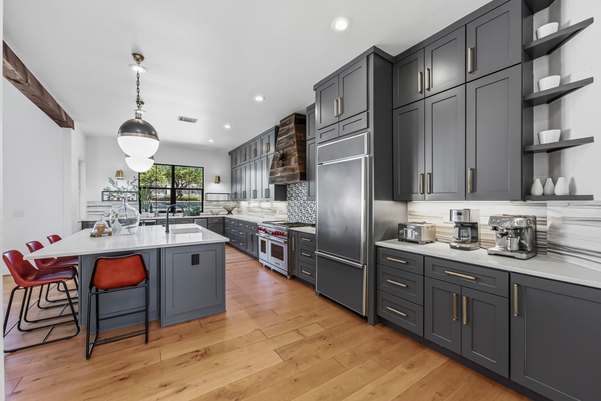 - Built-In Gas Range, Built-In Refrigerator, Double Oven, Disposal, Gas Water Heater, Plumbed For Ice Maker, Water Softener Owned, Stainless Steel Appliance(s), Tankless Water Heater