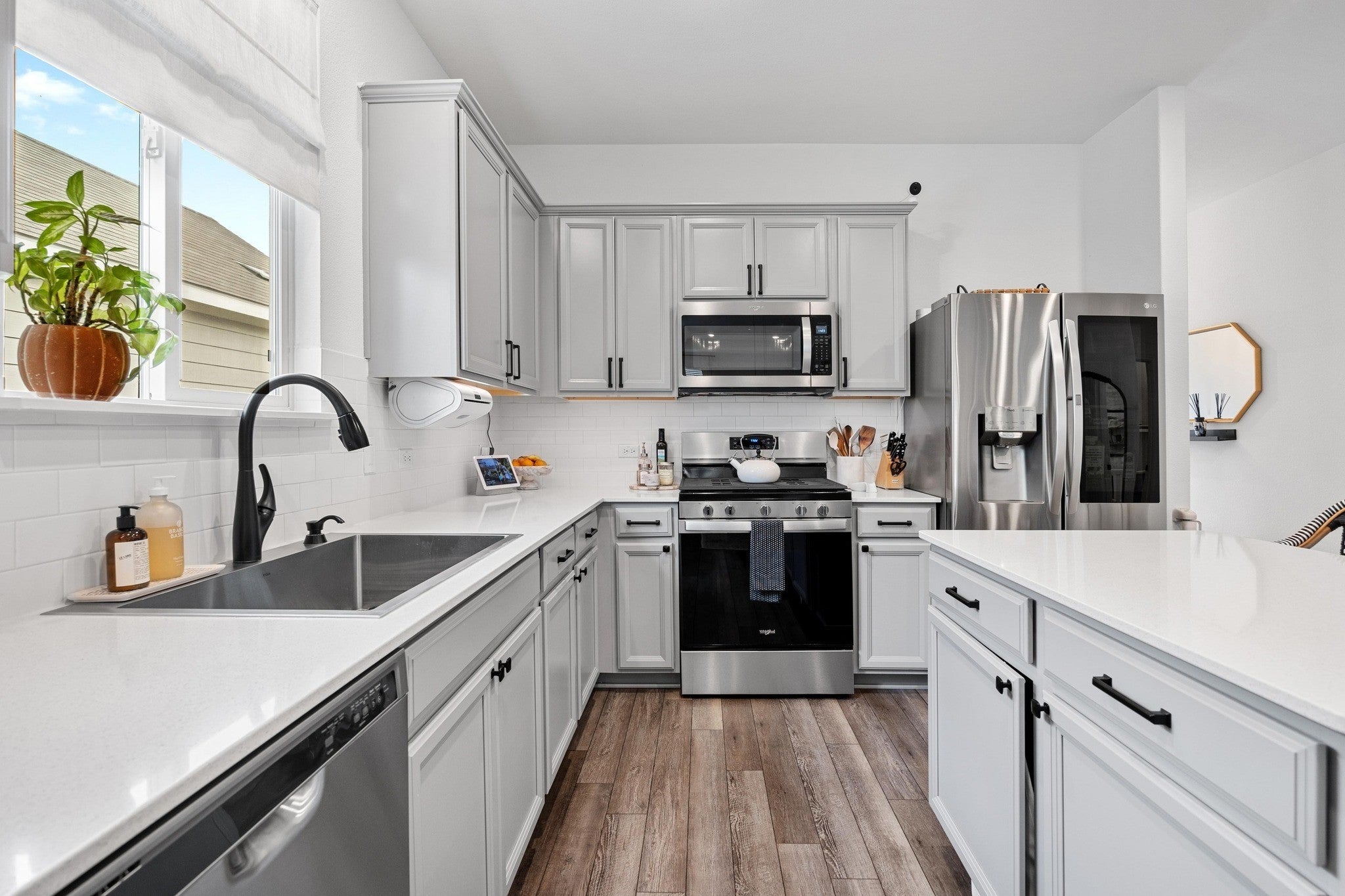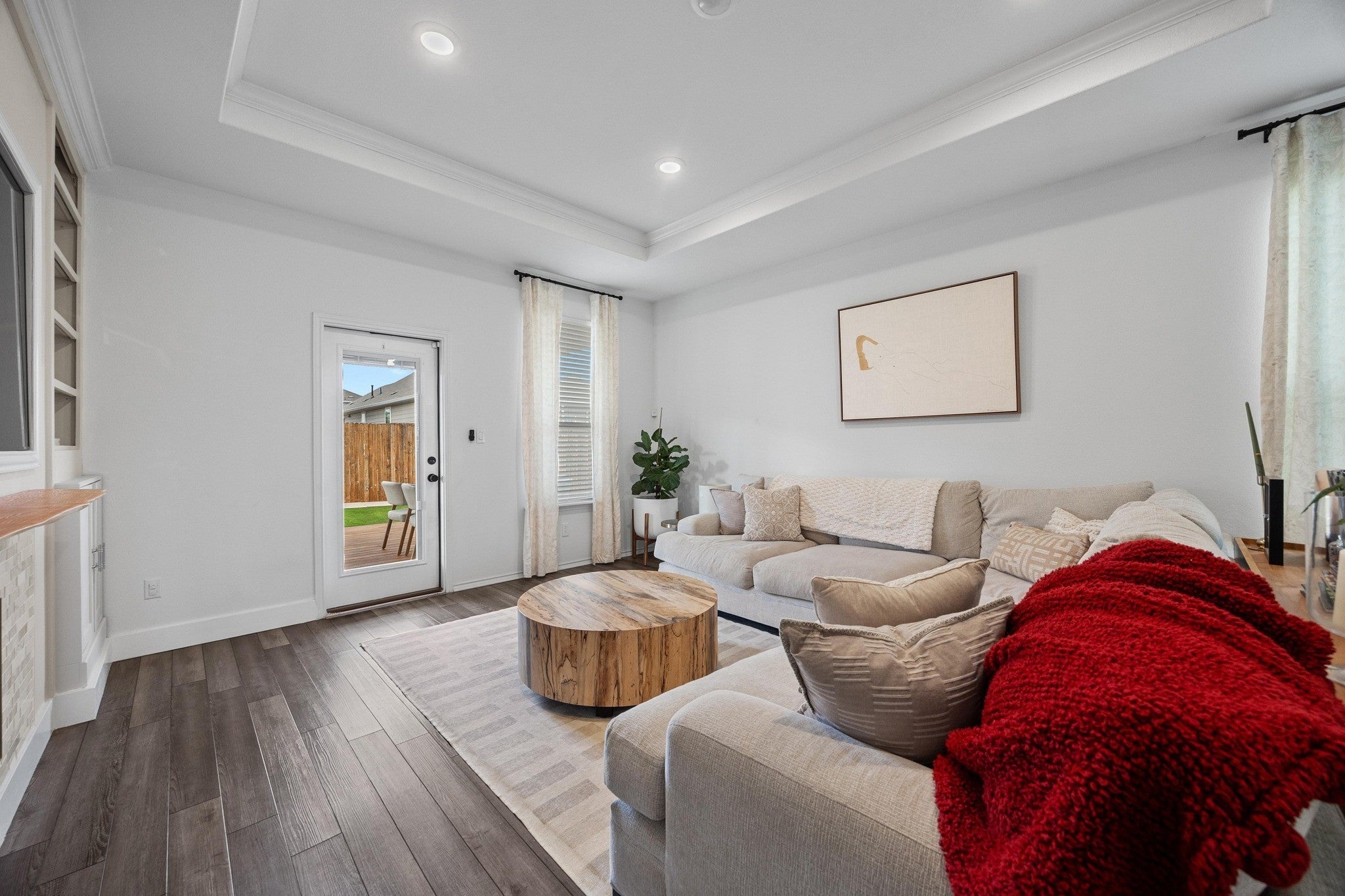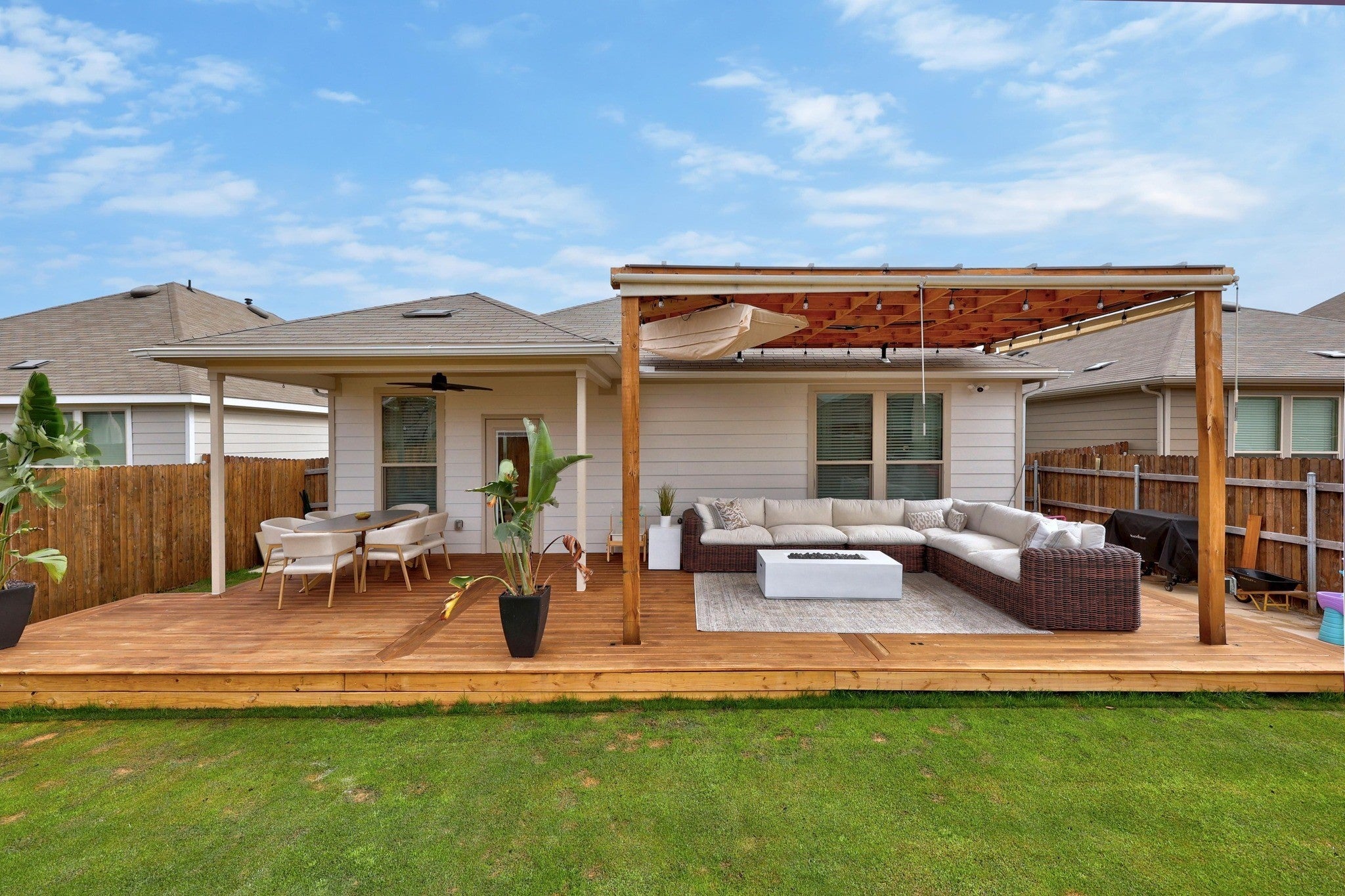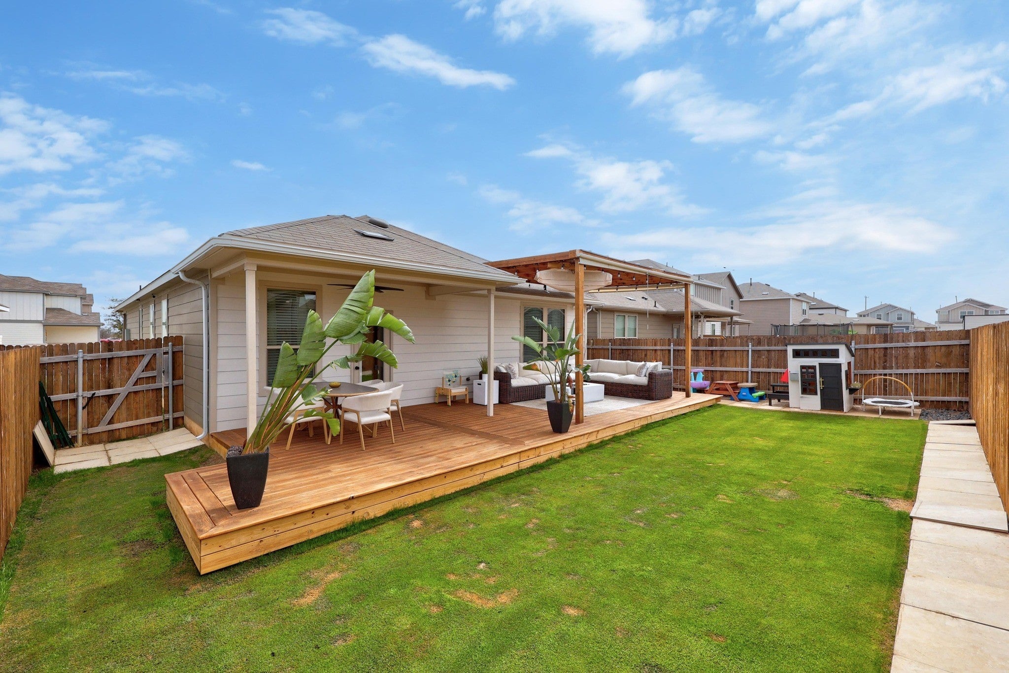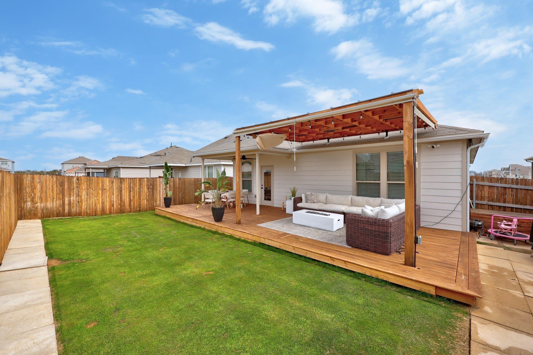 Stunning 4BR 2Bath home offers a spacious and open floor plan perfect for modern living. Enjoy the warmth of a cozy fireplace along with the convenience of built-in shelves and media center in the main living area. The kitchen is a chef's dream, featuring ample counter space and a convenient layout. Relax on the beautiful extended patio including a pergola. Landscaped yard complete with an in-ground sprinkler system. Community pool & playground. Experience the convenience of this prime location with easy access to major highways, connecting you seamlessly to vibrant dining and shopping options in nearby Cedar Park and Leander, and the convenience of a brand new HEB just moments away.