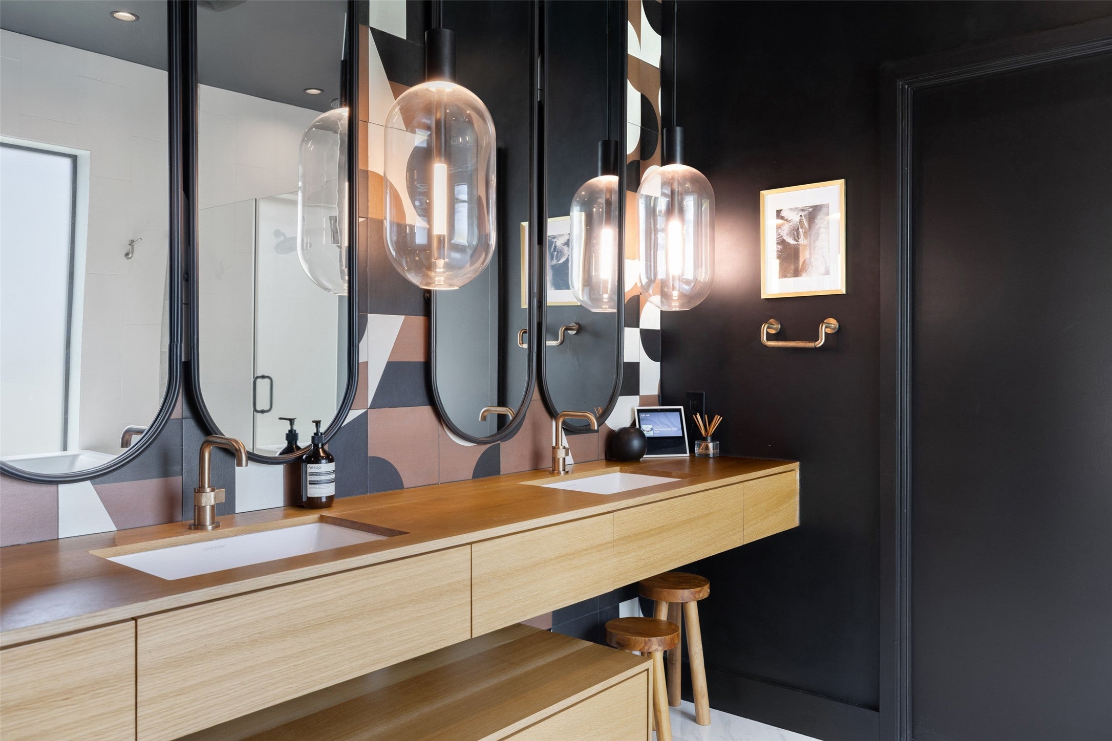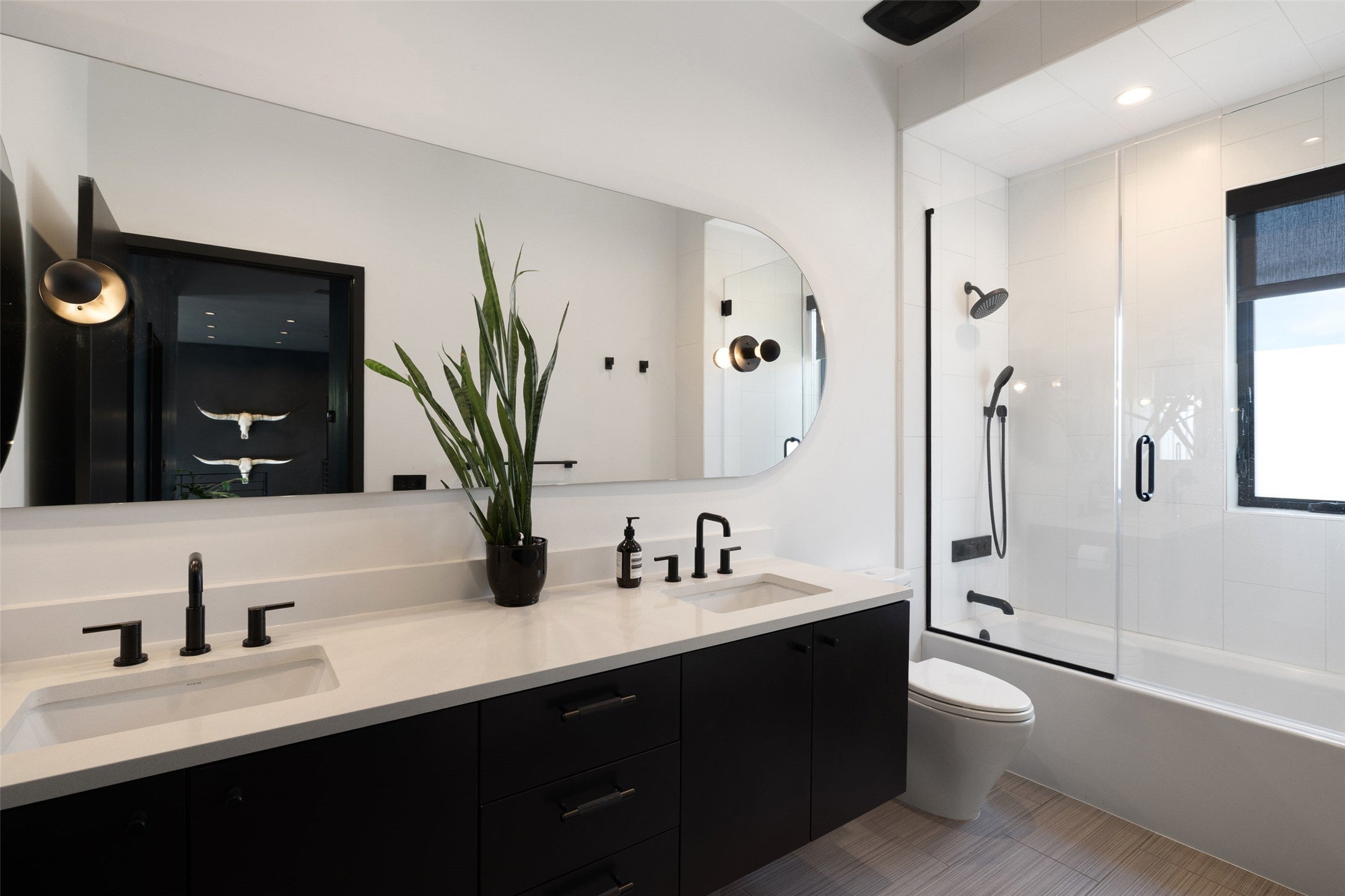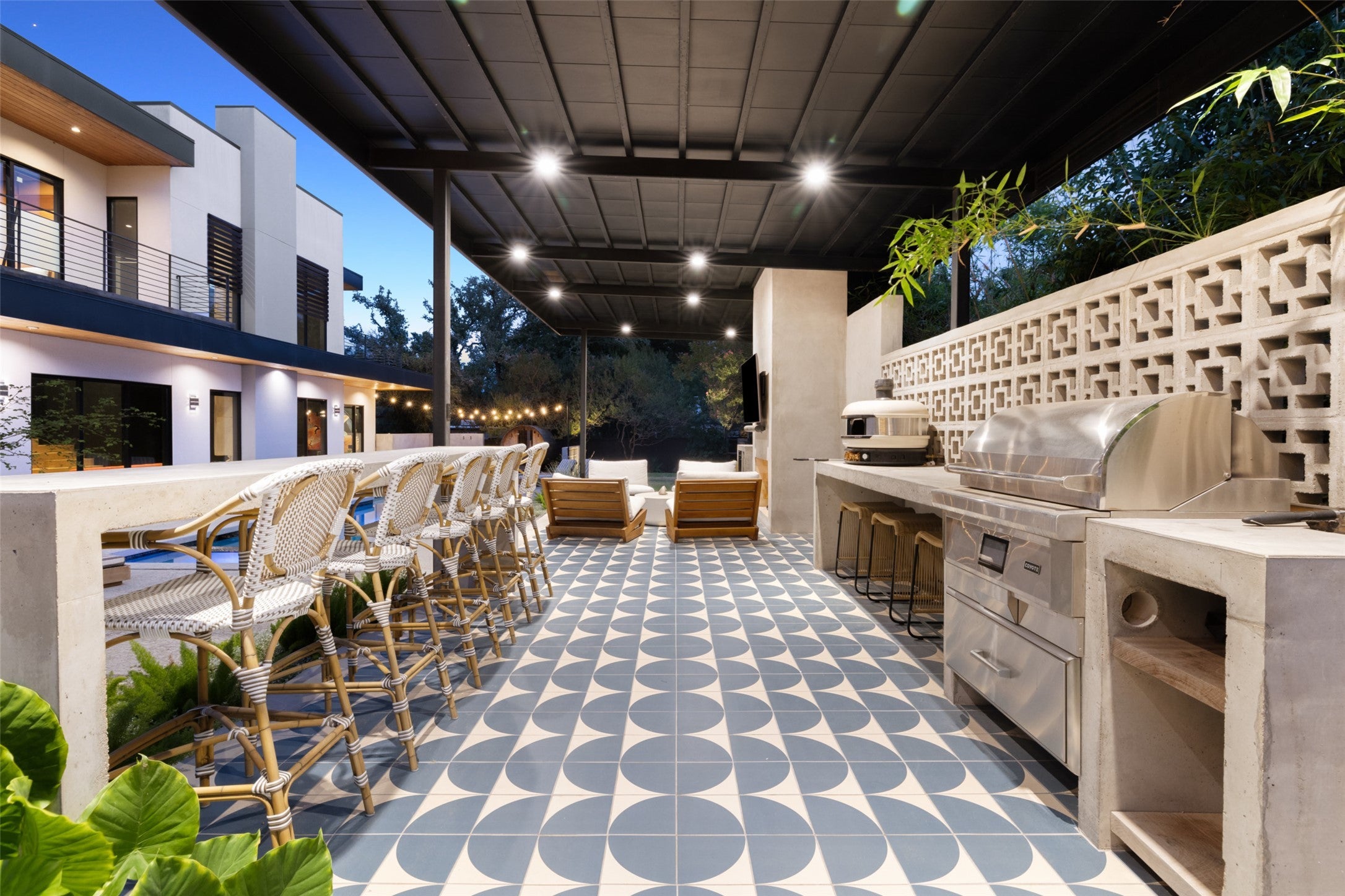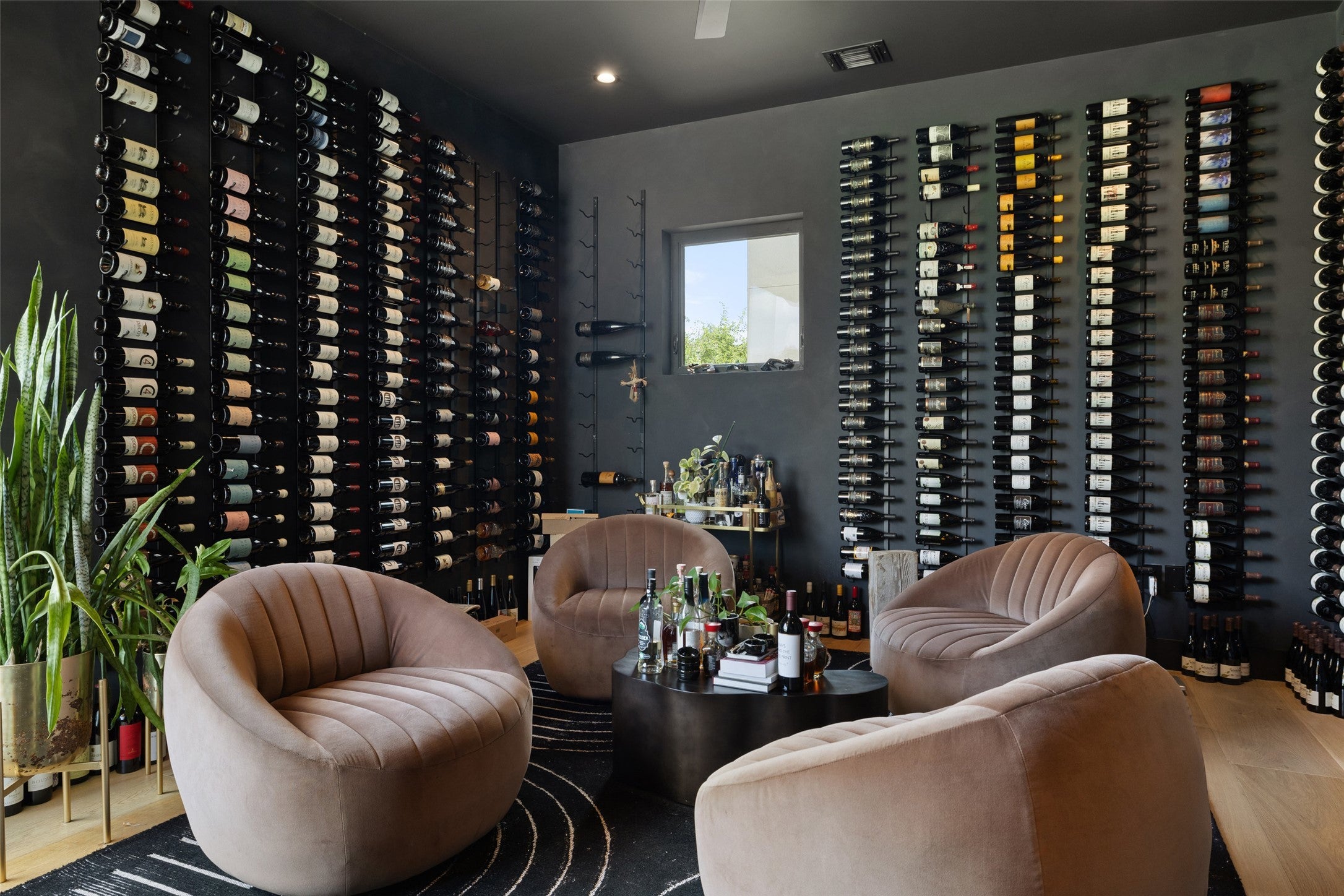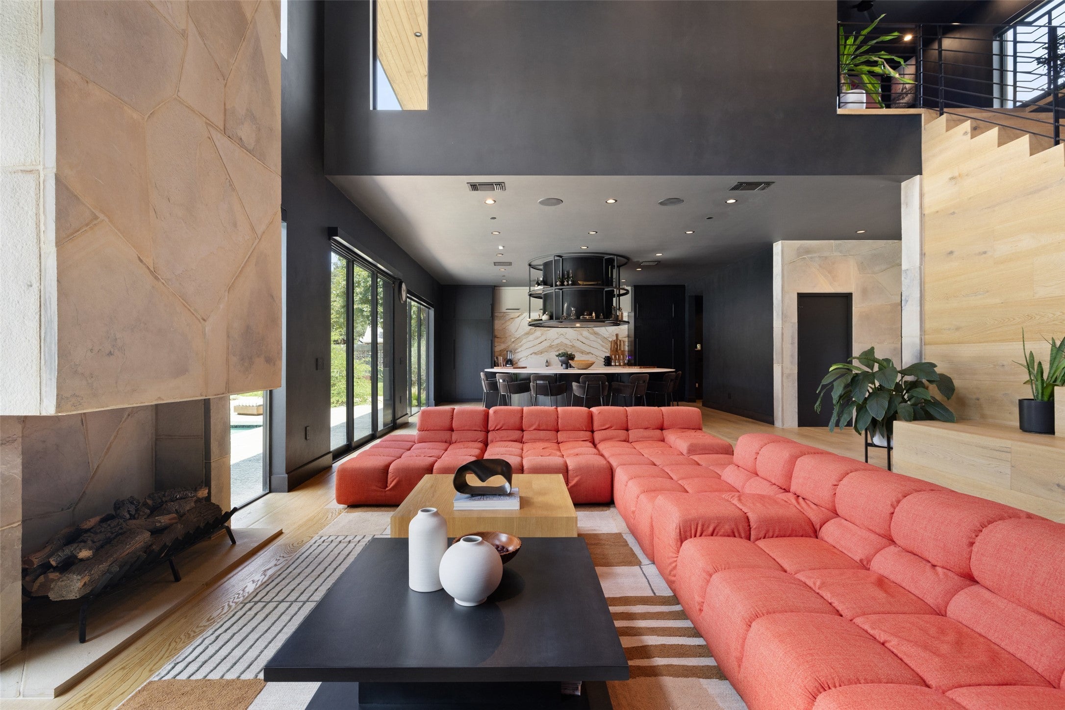 Welcome to 204 Westbrook, a bold and stylish retreat on a corner lot in coveted Westwood Terrace. Reimagined from top to bottom, this home embraces a modern aesthetic with dramatic black walls, striking details, and elevated finishes. In the living room, a soaring two-story stone feature is flanked by massive windows framing backyard views, creating a seamless indoor-outdoor connection. The kitchen stands out with its unique circular island, built-in cooktops, and porcelain counters that curve gracefully into the space. A bonus room off the main living area serves as a wine lounge or easily converts to an office or cozy den. The main-level primary suite offers a custom walk-in closet and spa-like bath with a soaking tub, oversized shower, and double vanity. Smart home features, including programmable lighting and app-controlled blinds, add everyday comfort. A sculptural wood staircase doubles as art, leading upstairs to three bedrooms, a second office or flex space, and a private balcony overlooking the lush yard. The home is backed by a Generac natural gas generator that self-tests weekly and provides automatic backup power. Outside, the covered patio features a fireplace, tile flooring, and full outdoor kitchen with generous counter space, built-in grill, and pizza oven perfect for entertaining. The saltwater pool and spa include a chiller for hot days, while a barrel sauna with Wi-Fi HUUM heater and a Morozko cold plunge add a spa-like touch. A grassy yard offers room for pets, kids, or lawn games, surrounded by new landscaping and fruit trees. The heated and cooled three-car garage with epoxy floors and custom cabinetry completes the home. Most furniture is negotiable, making this a turnkey opportunity. Located within Eanes ISD and minutes from shopping, dining, trails, and downtown Austin, 204 Westbrook delivers modern style, premium upgrades, and lifestyle-focused design in one of Westlake’s most convenient pockets.