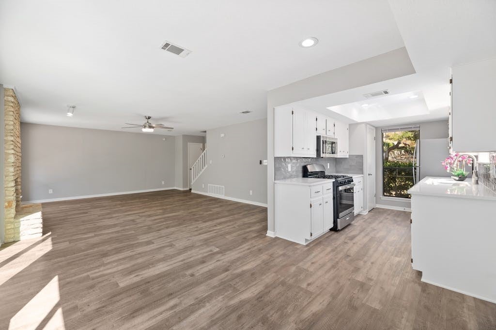 Nestled in the highly desirable district of EANES ISD, this home is spacious and open with 3 beds up, 2.5 baths, balcony off of master and a private backyard. Sept 2021, Remodeled with new interior paint, no popcorn ceiling, new carpet and luxury vinyl flooring, quartz counters and more. Conveniently located close to Loop 360, Mopac, major employers and Barton Creek Mall. Pictures taken previously.
