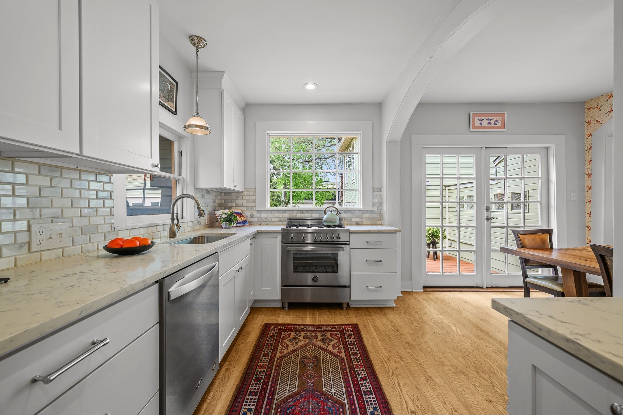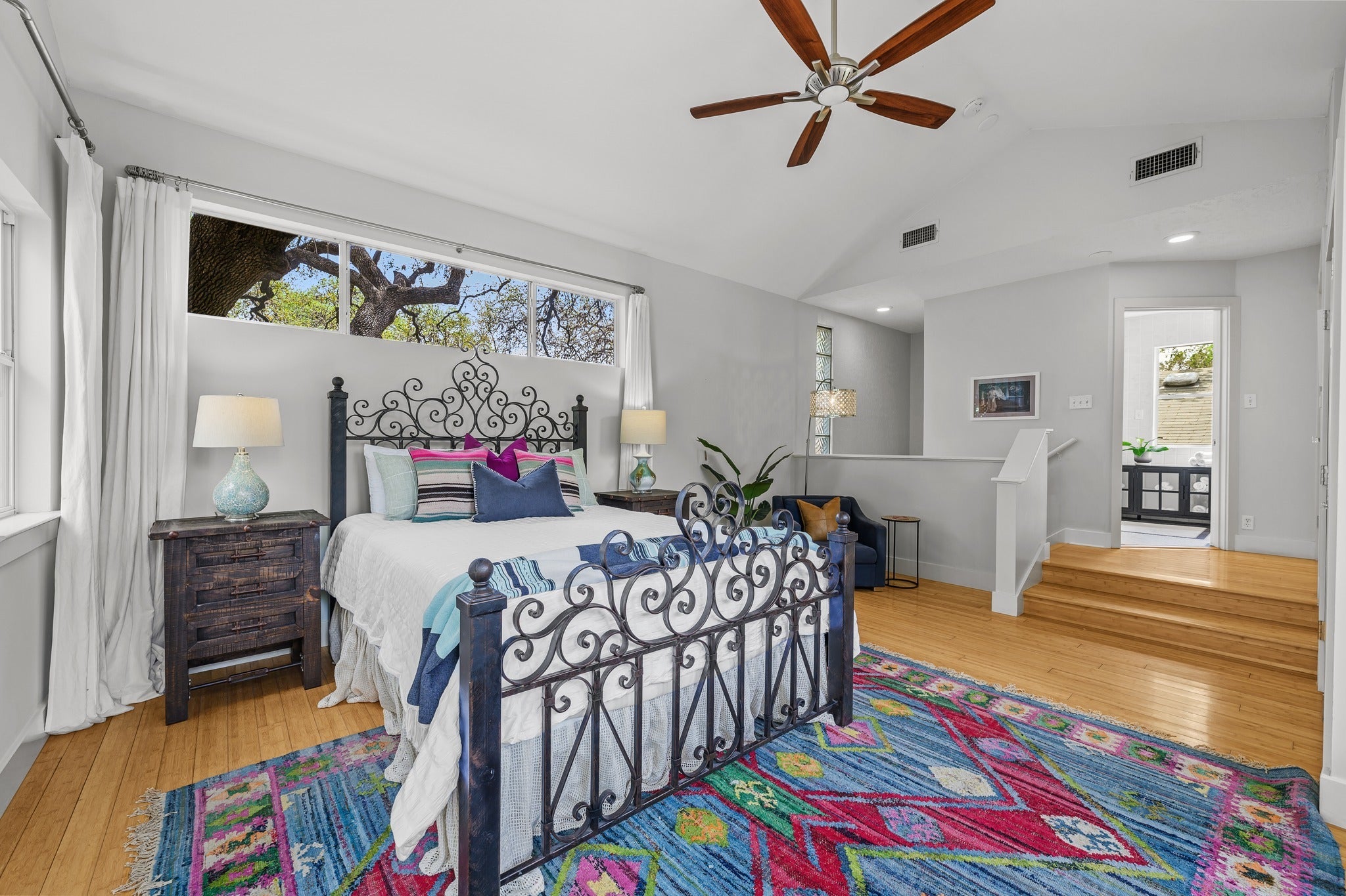 Located in the heart of Bouldin Creek, this enchanting 1930s bungalow effortlessly blends timeless character with refined modern living. Thoughtfully restored, the home showcases beautiful hardwood flooring, classic archways, and custom cabinetry that honor its historic charm while elevating everyday function. Each finish has been meticulously selected, creating a warm, sophisticated aesthetic throughout. The inviting living spaces flow seamlessly and are complemented by high-end appliances, polished chrome fixtures, and stunning designer light fixtures that add elegance to every room. The primary suite lives like a treehouse, offering a private balcony, perfect for enjoying morning coffee and evening sunsets. Step outside to generous outdoor living areas ideal for entertaining or relaxing, and a fully screened in porch - the perfect reading spot on a rainy day. Located just moments from vibrant dining and shopping along South 1st Street, this rare Bouldin bungalow offers the perfect balance of historic charm, modern luxury, and unbeatable walkability.